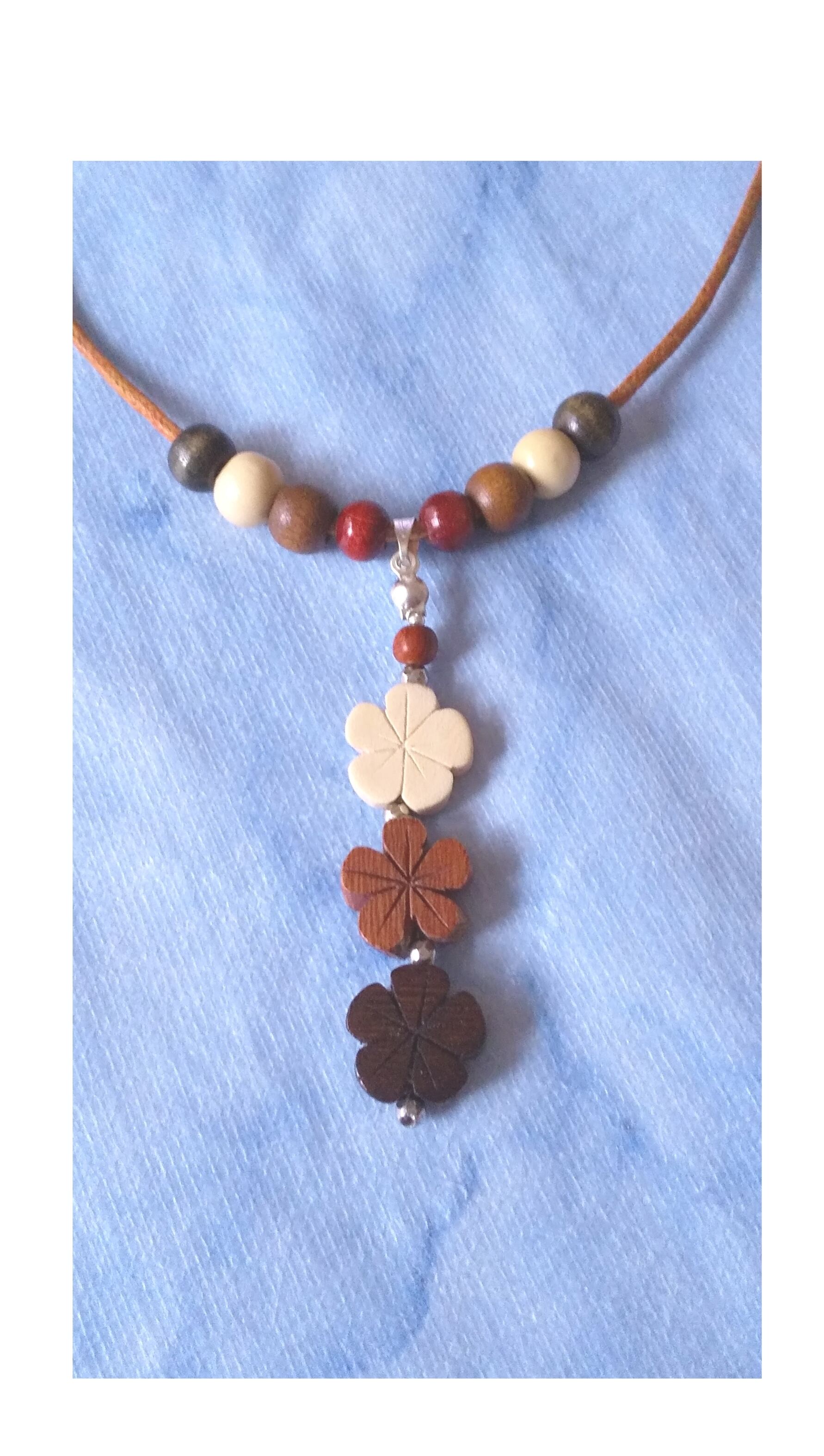 ハワイアンネックレス 天然ウッド ブラウン 3連プルメリア P-670
