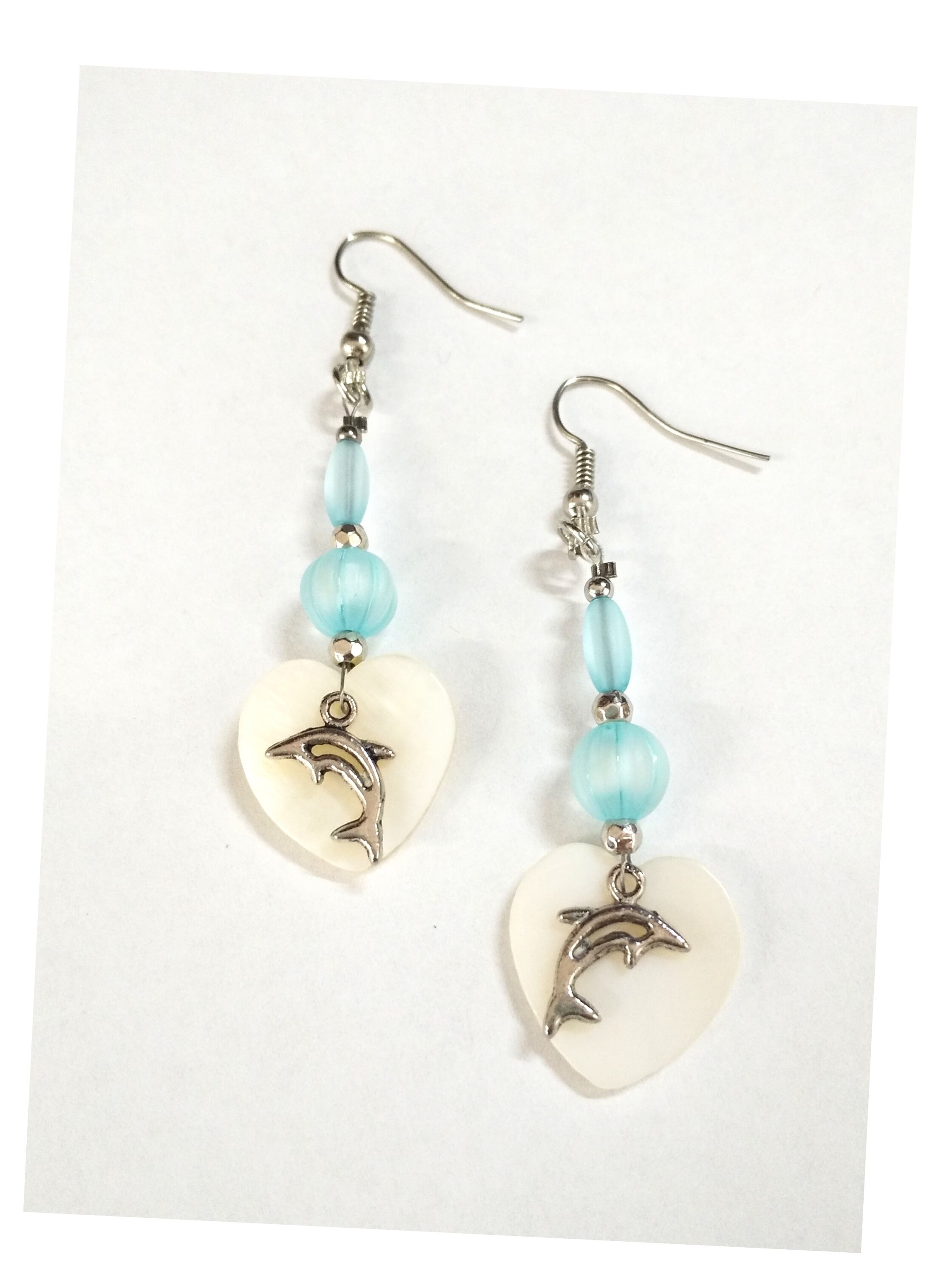 ホワイトハートとシルバーカラードルフィンのデザインピアス