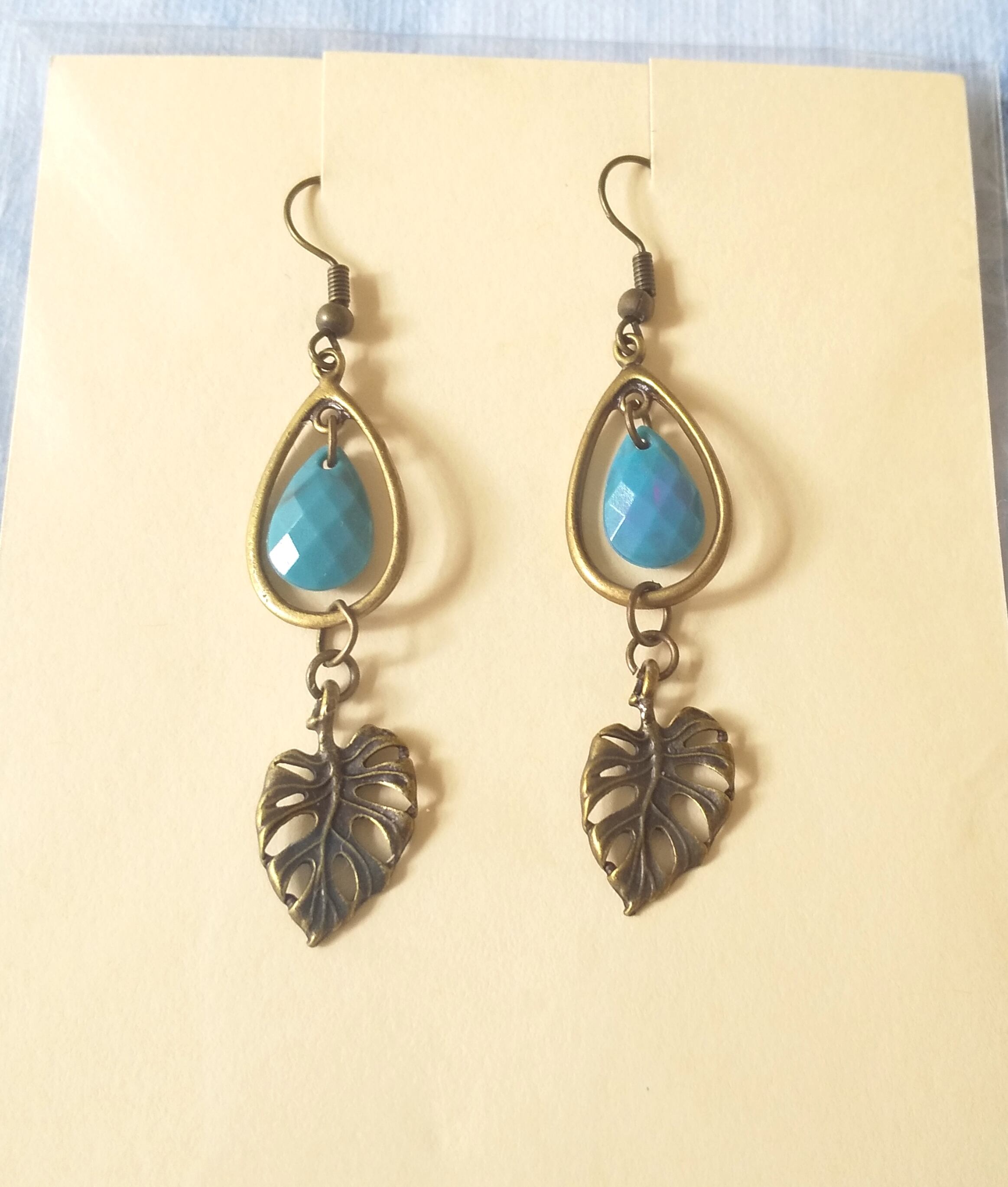 ハワイアンピアス 金古美カラー モンステラ& ブルードロップ A-129