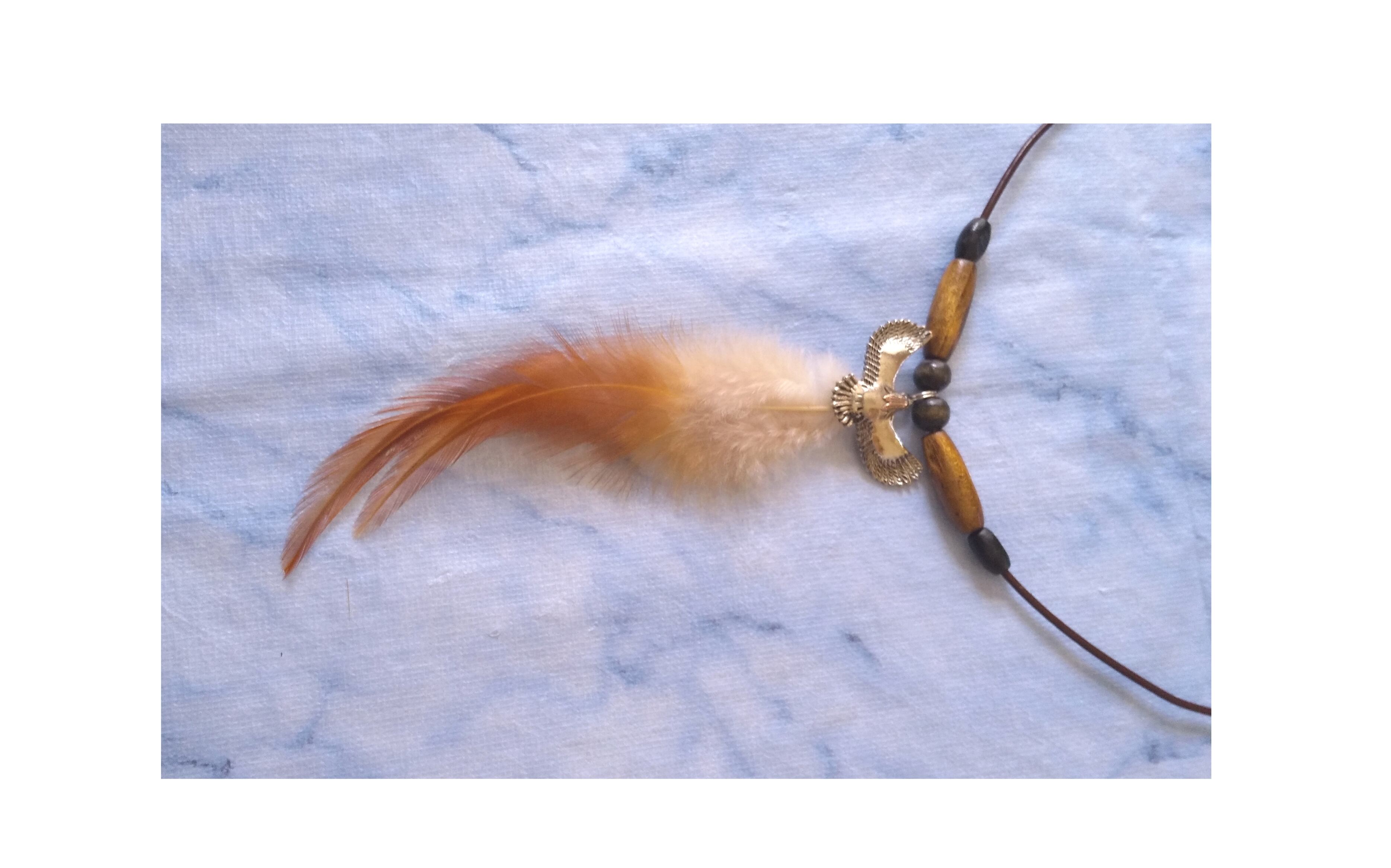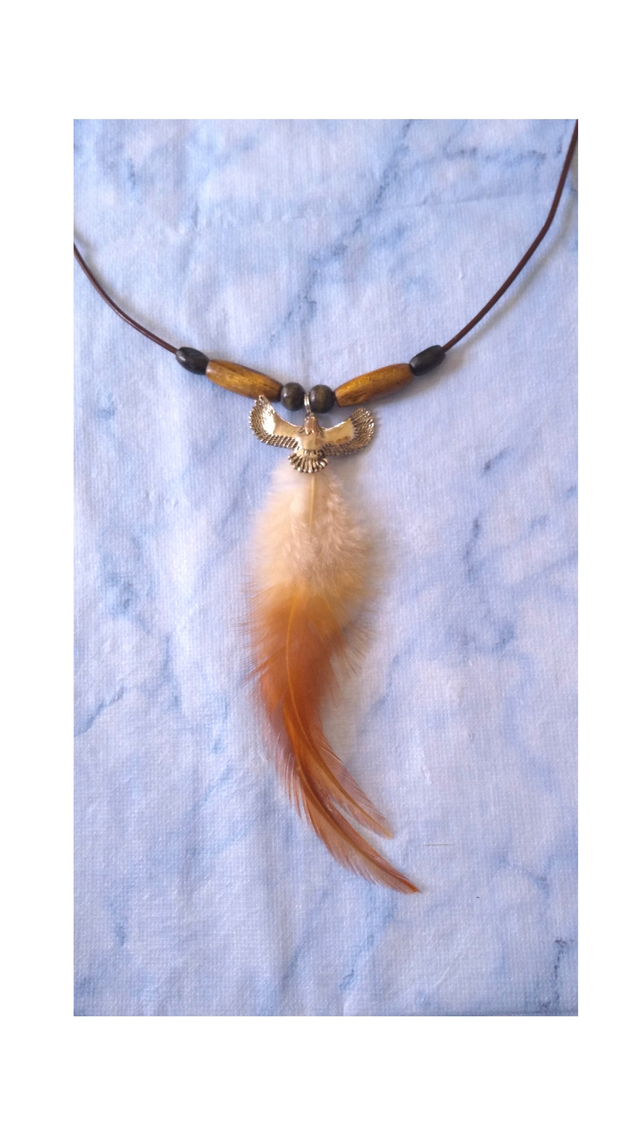 メンズネックレス シルバーイーグル& 天然ロングフェザー 本革紐 Y-527