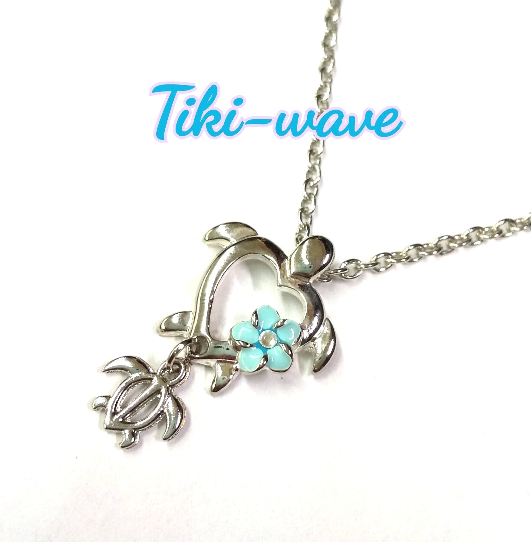 ハワイアンネックレス シルバー&椰子ウッド ホヌ ブラウン紐 H-132