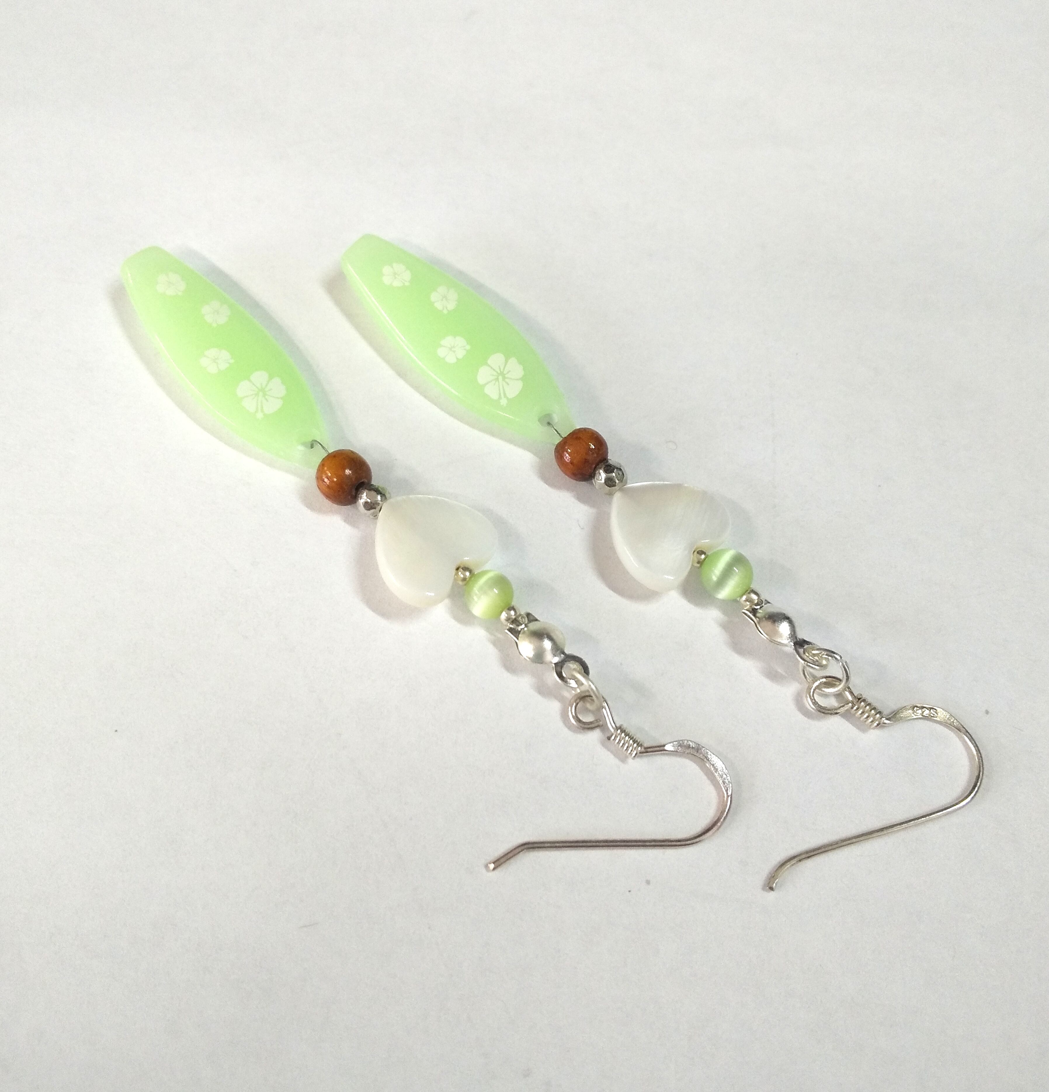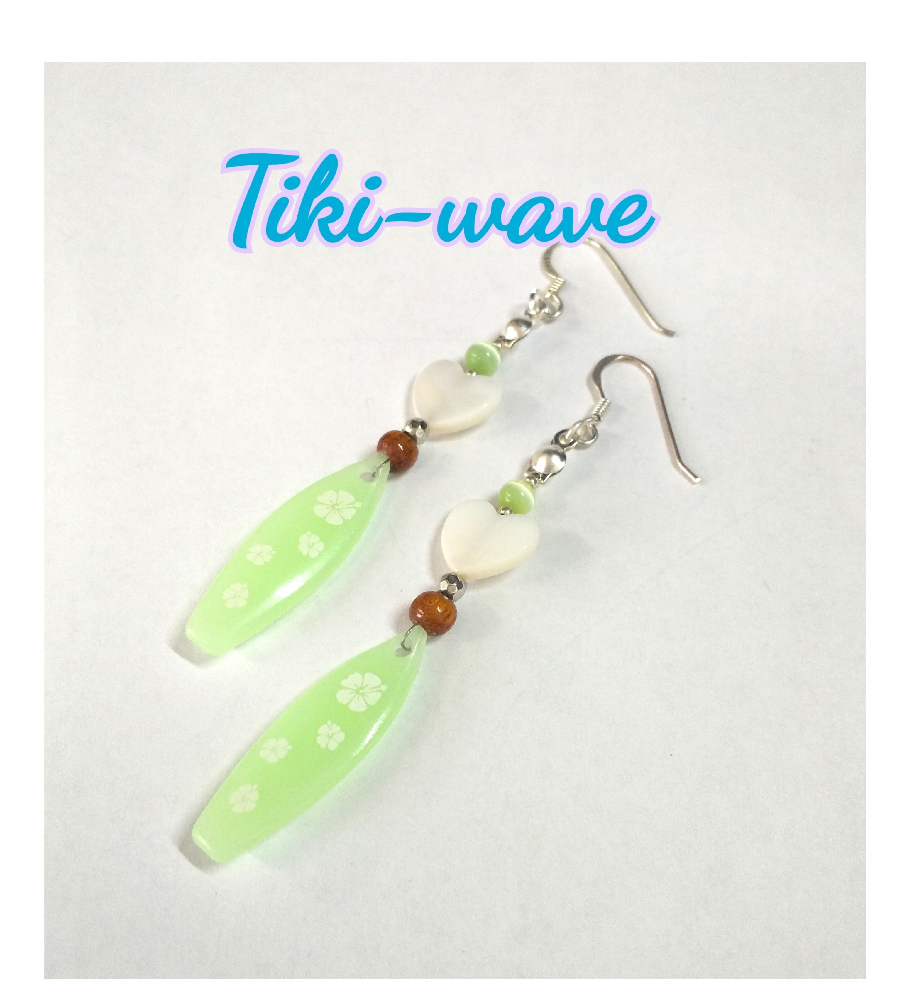 ハワイアンピアス グリーンサーフボード& ホワイトハートシェル A-133