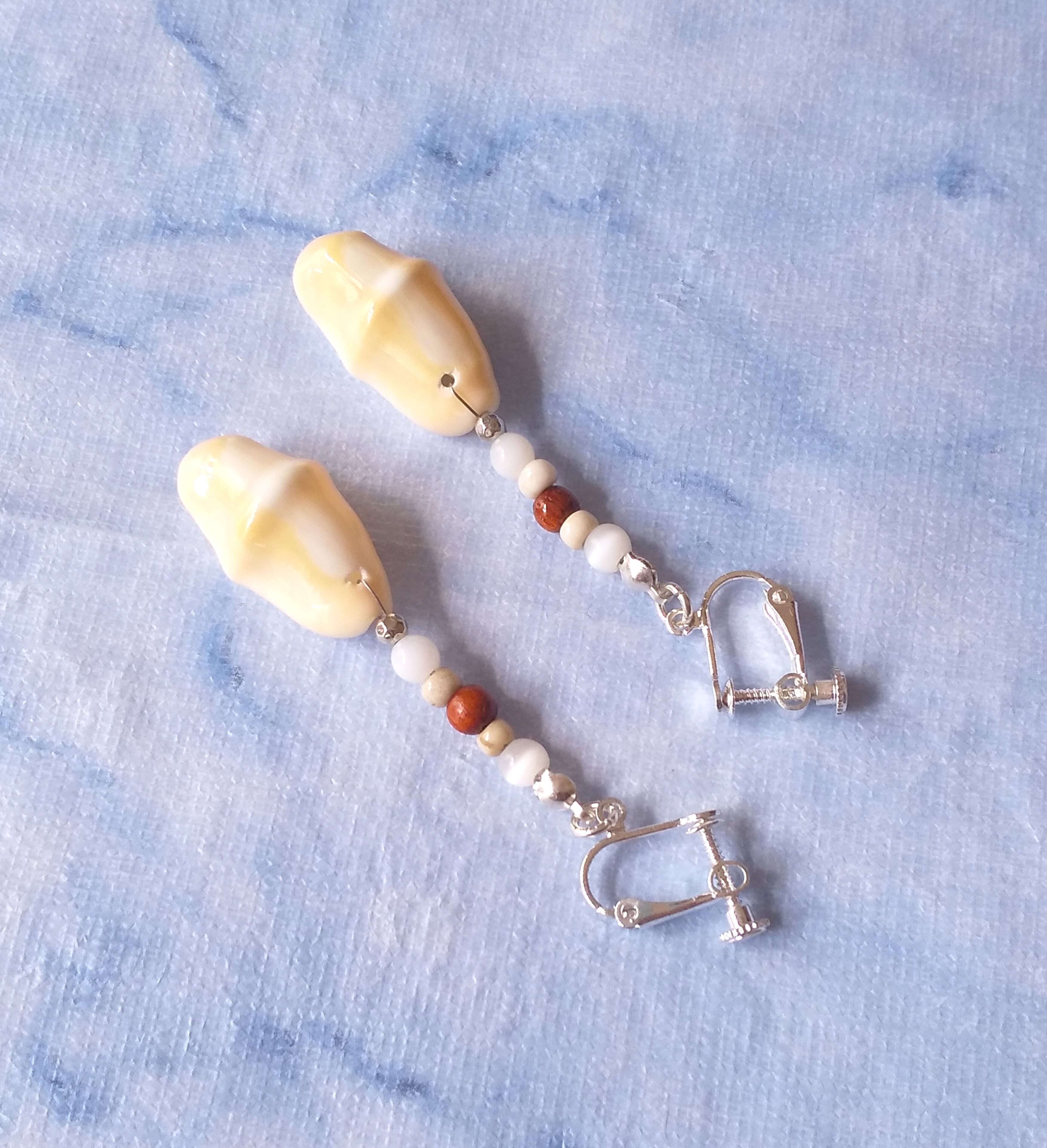 ハワイアンイヤリング 天然シェル 巻き貝& ホワイトボールシェル A-134
