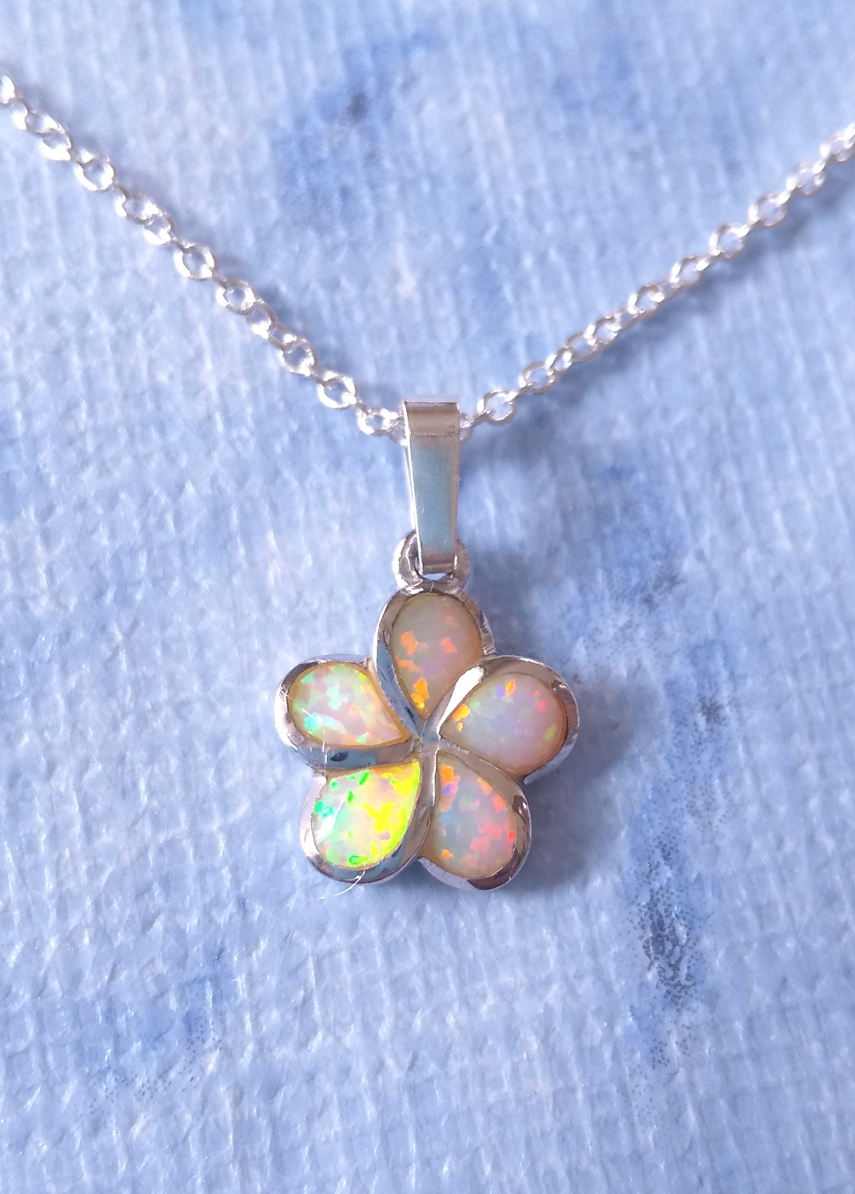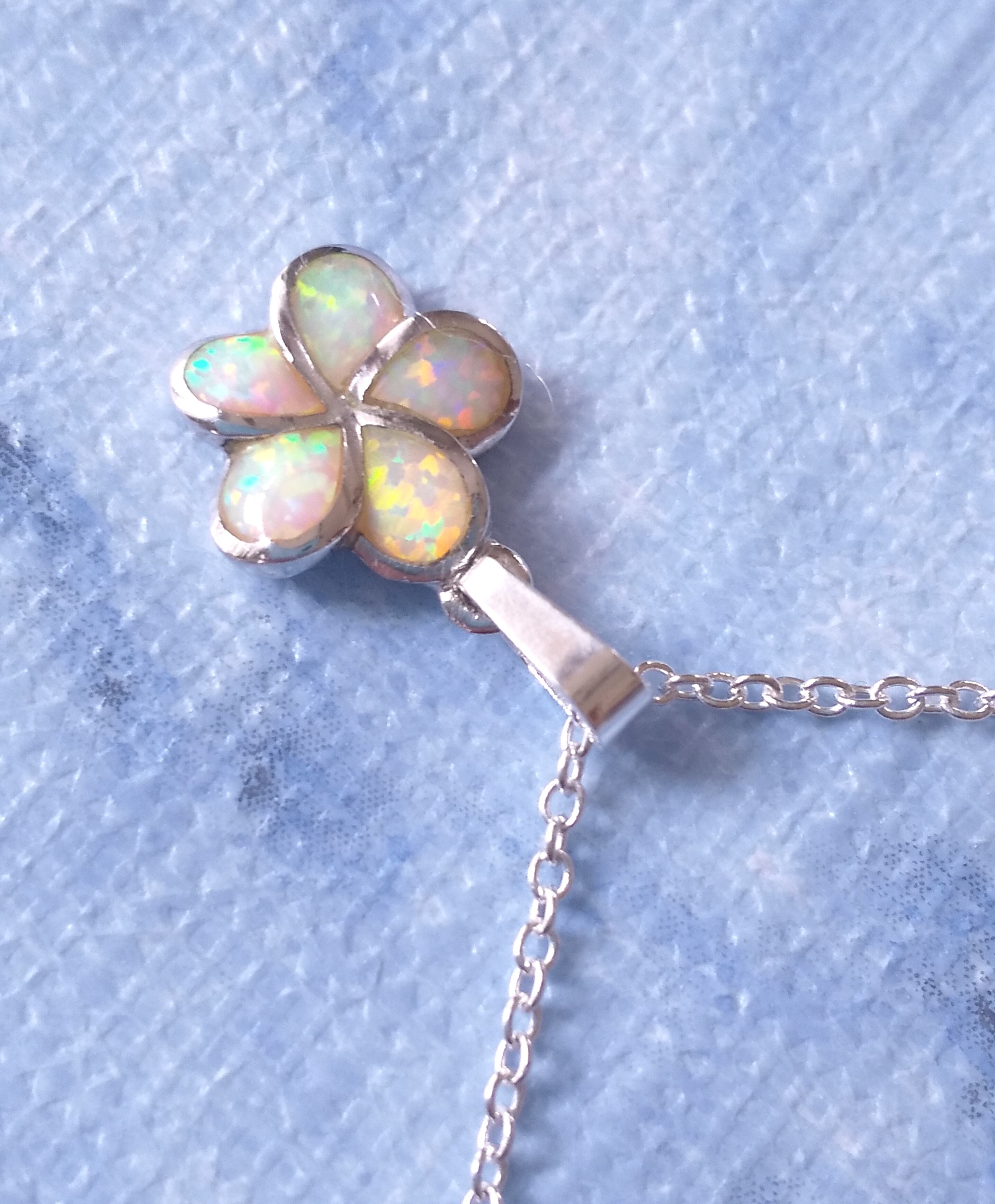 ハワイアンネックレス シルバー925&ホワイトオパール プルメリア P-671