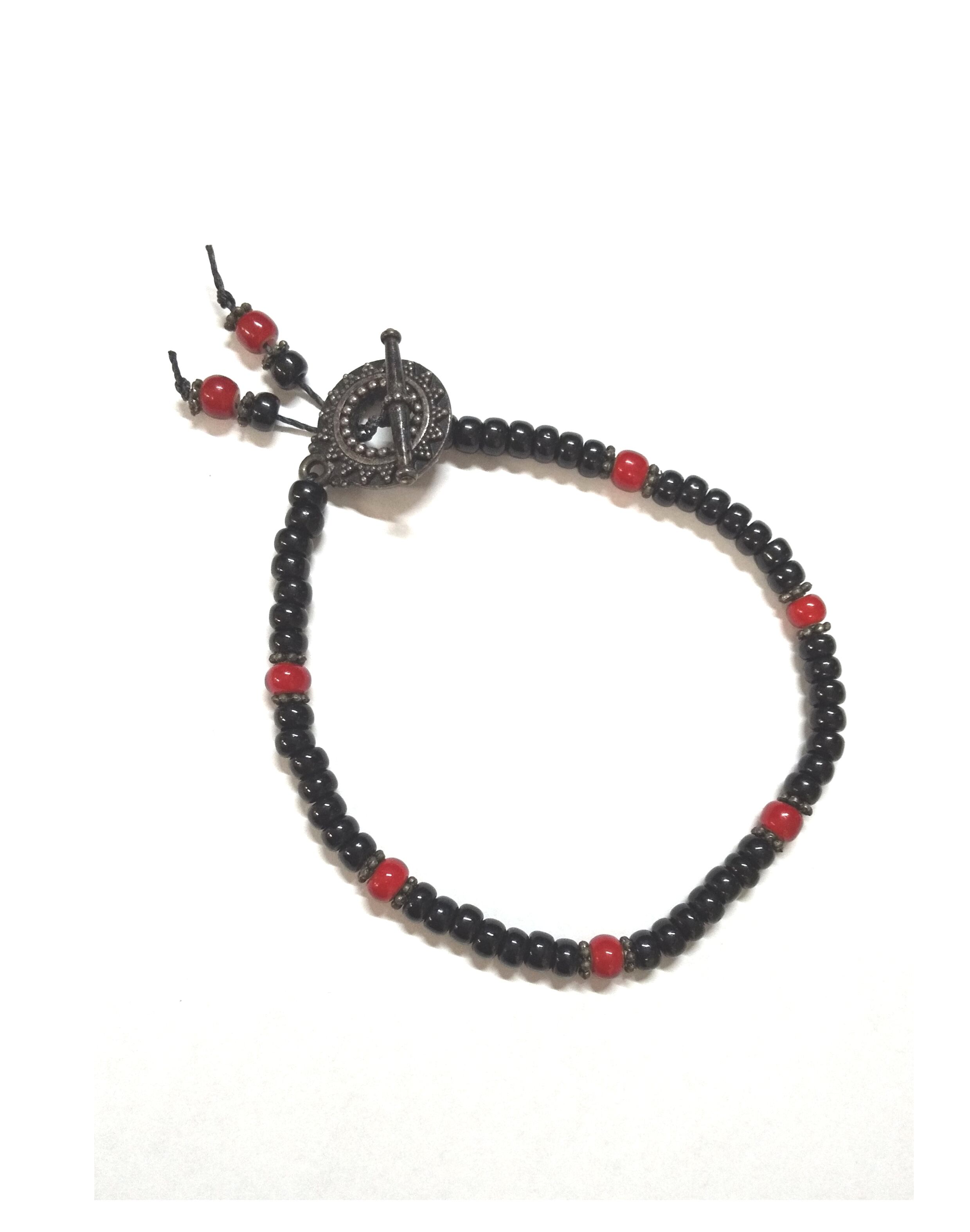 メンズデザインブレス ブラック&レッドカラービーズ 金古美マンテル M-101