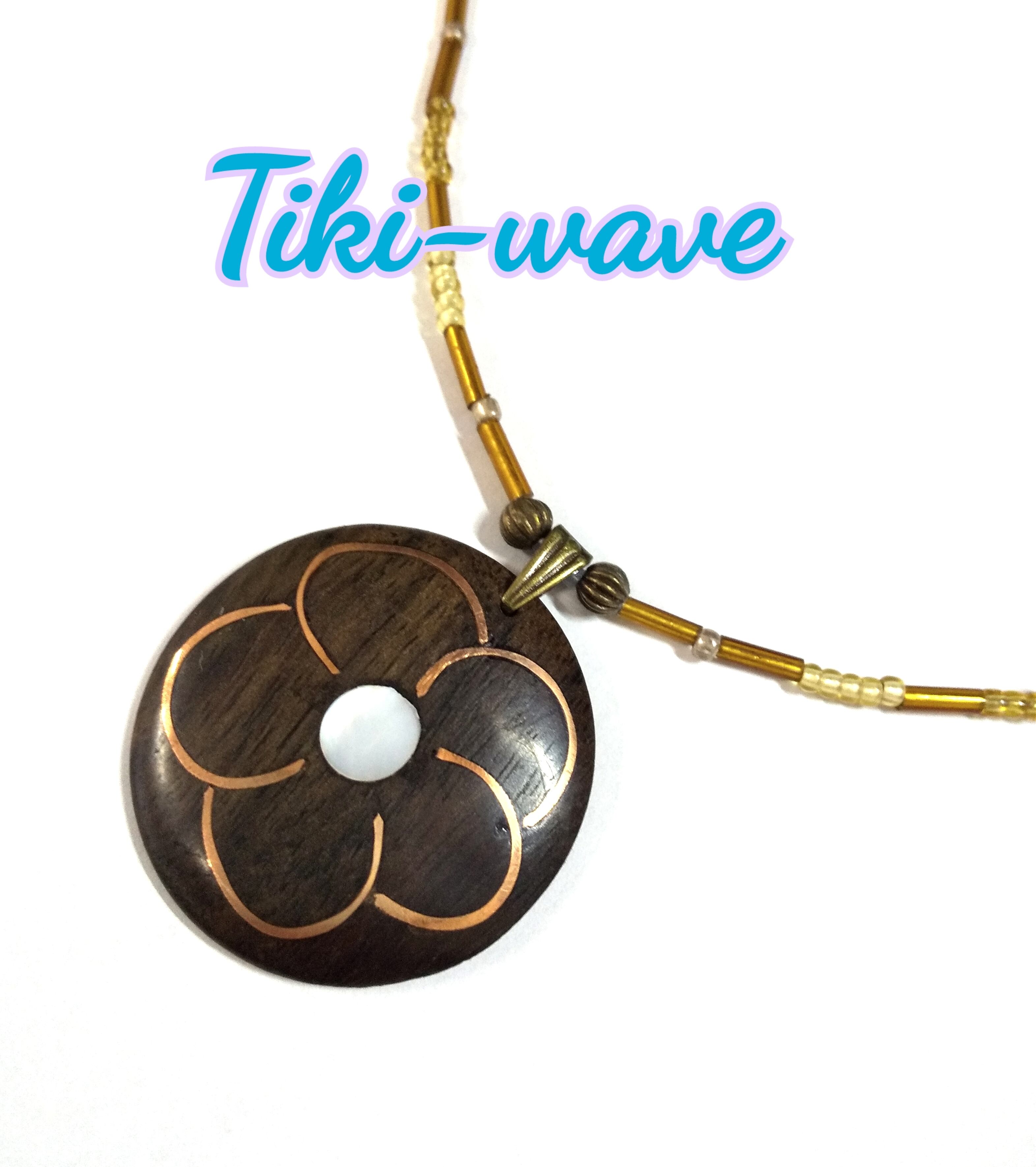 ハワイアンネックレス 天然ラウンドウッド&ホワイトシェル L-609