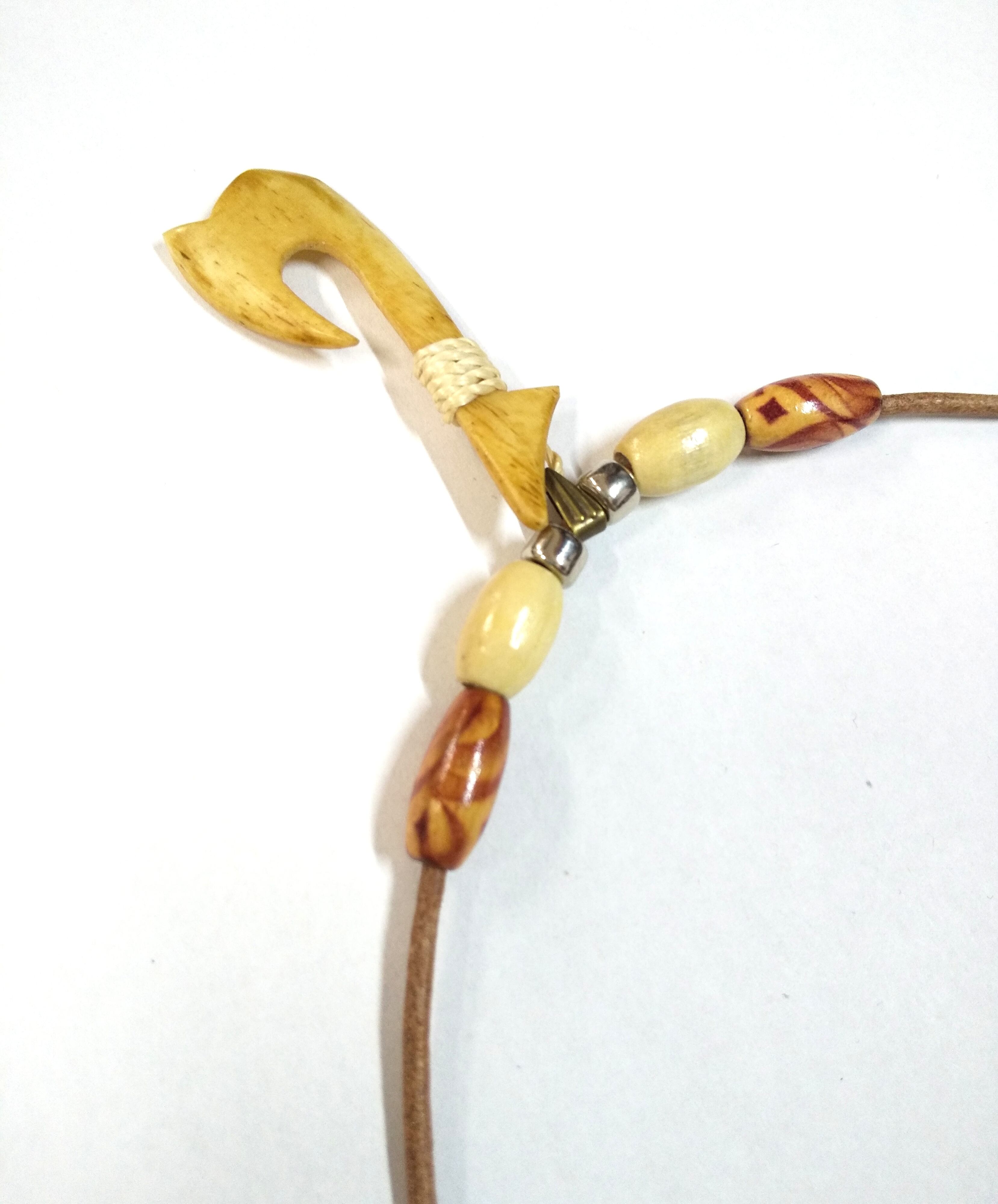 ハワイアンネックレス ライトブラウンカラーボーン フィッシュフック F-107
