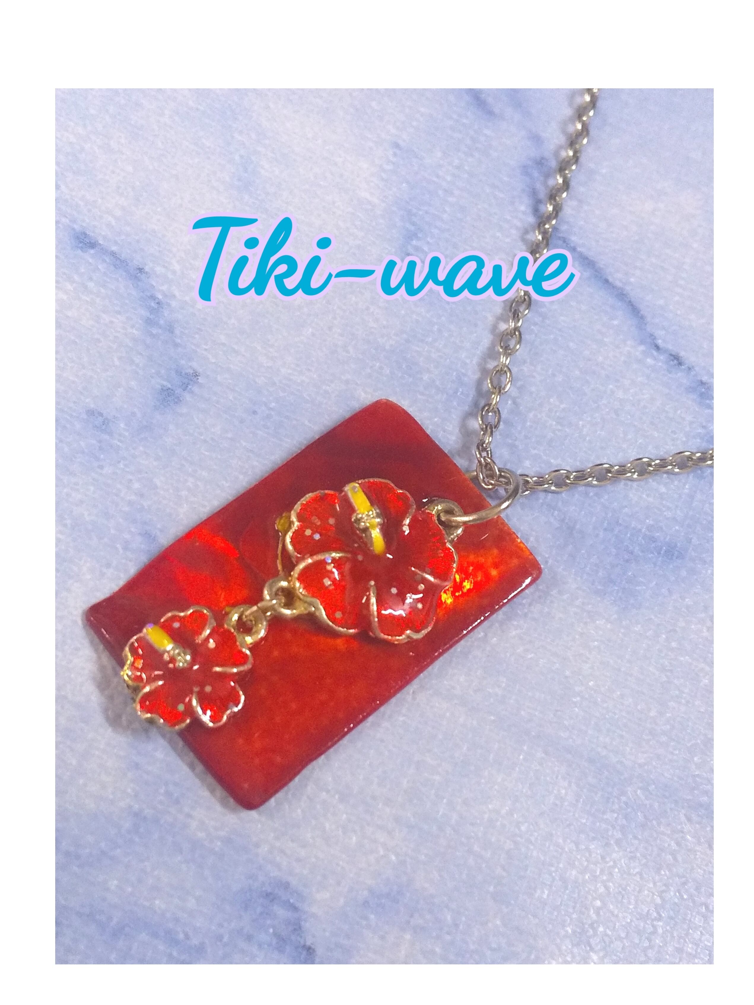 ハワイアンネックレス ワインレッドカラー 天然シェル&ハイビスカス B-701