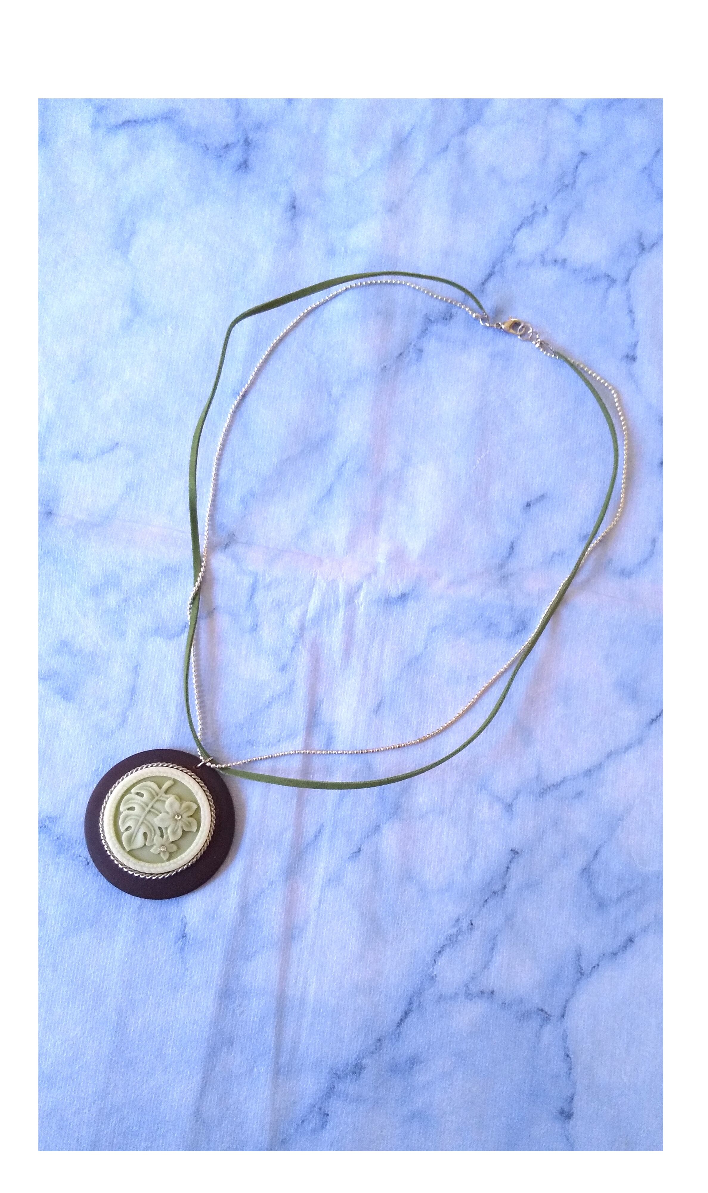 ハワイアンネックレス ラウンドウッド& グリーンモンステラ M-510