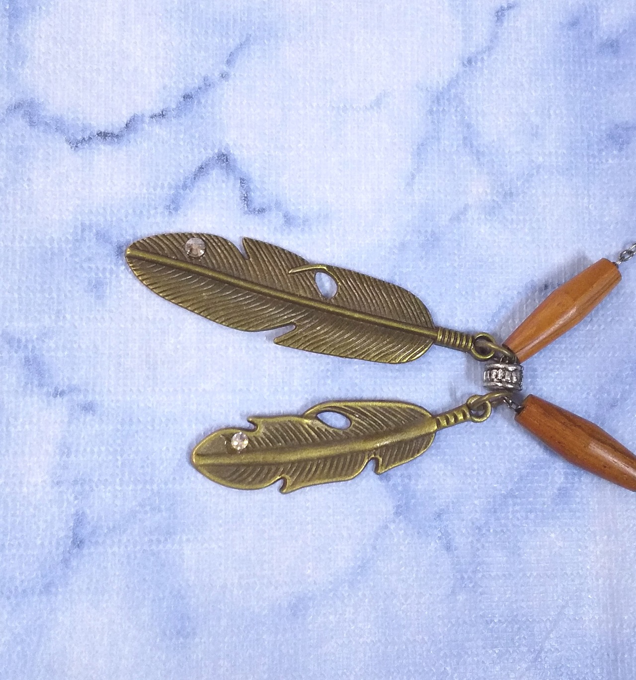 メンズネックレス クラシックゴールドカラー 2連フェザー&スワロ粒 Y-528