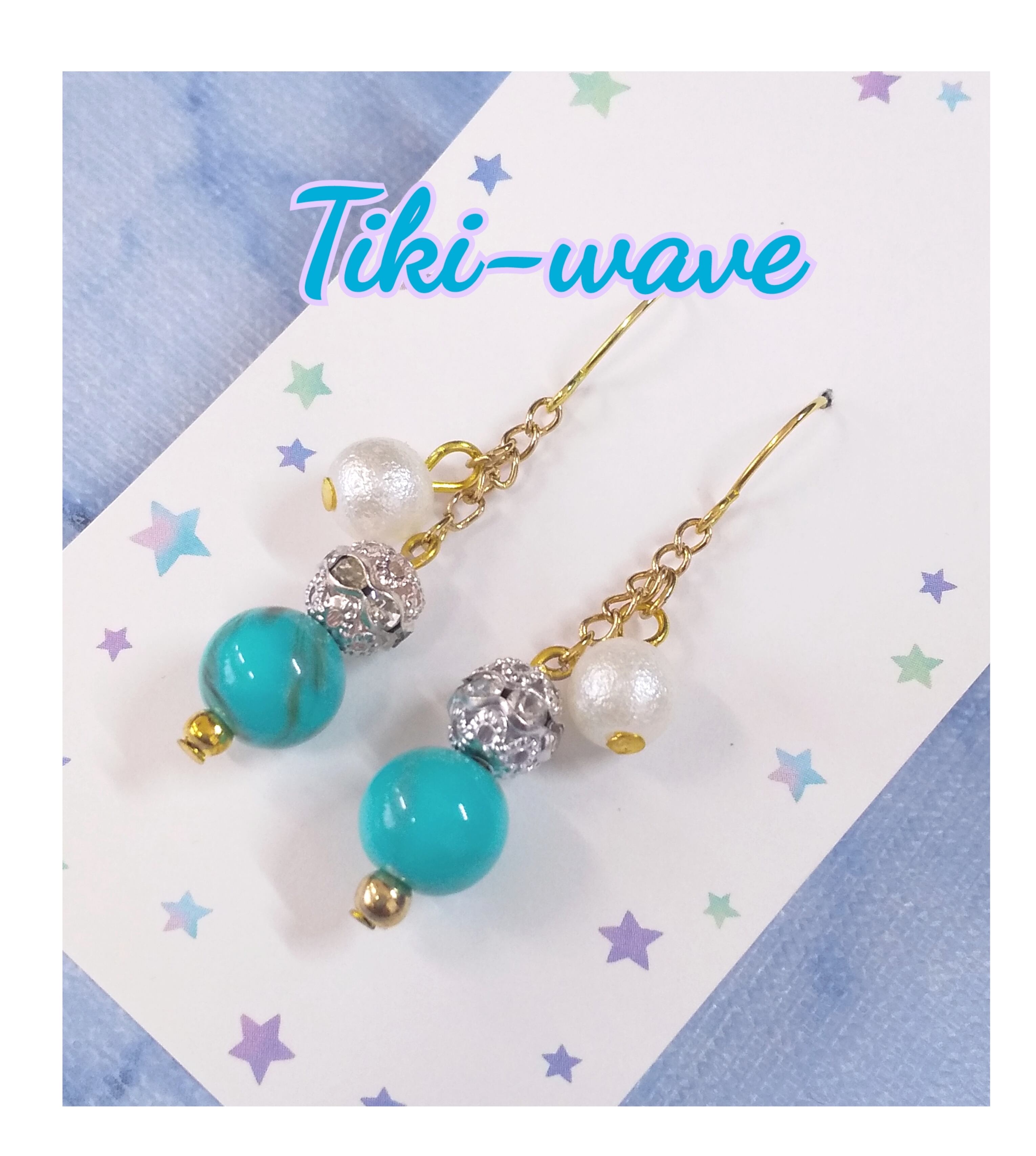 クリスマスピアス X'masホワイトスノーパール シルバー&ブルー A-138