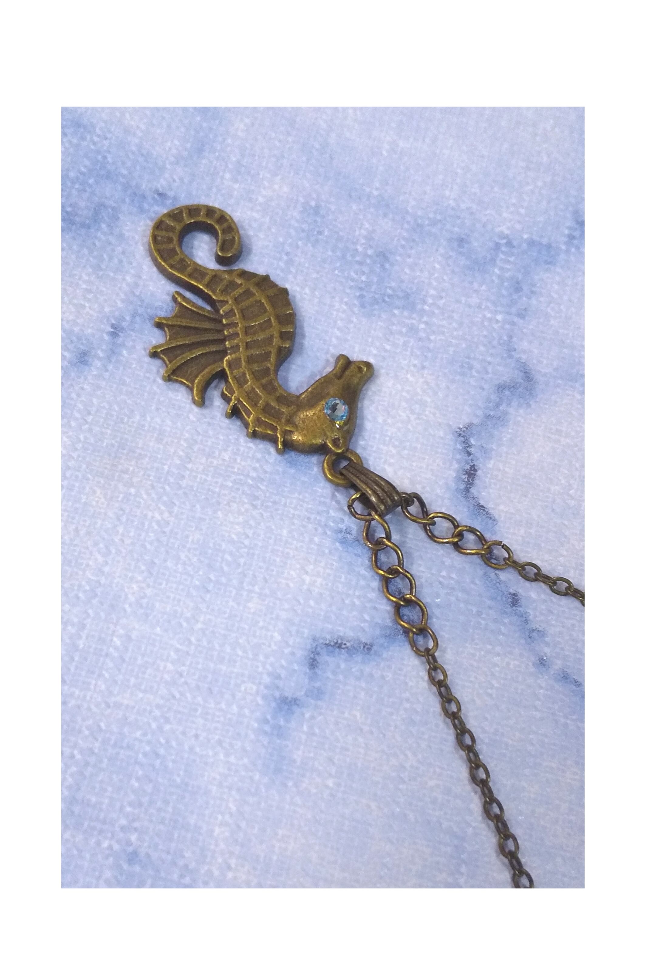 ハワイアンネックレス 金古美カラー シーホース &ブルーCZ L-614