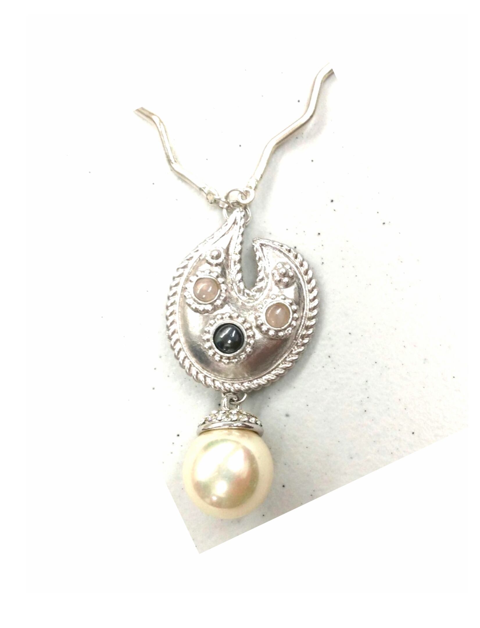 レディースネックレス 大粒ホワイトパール& ローズクォーツ U-613