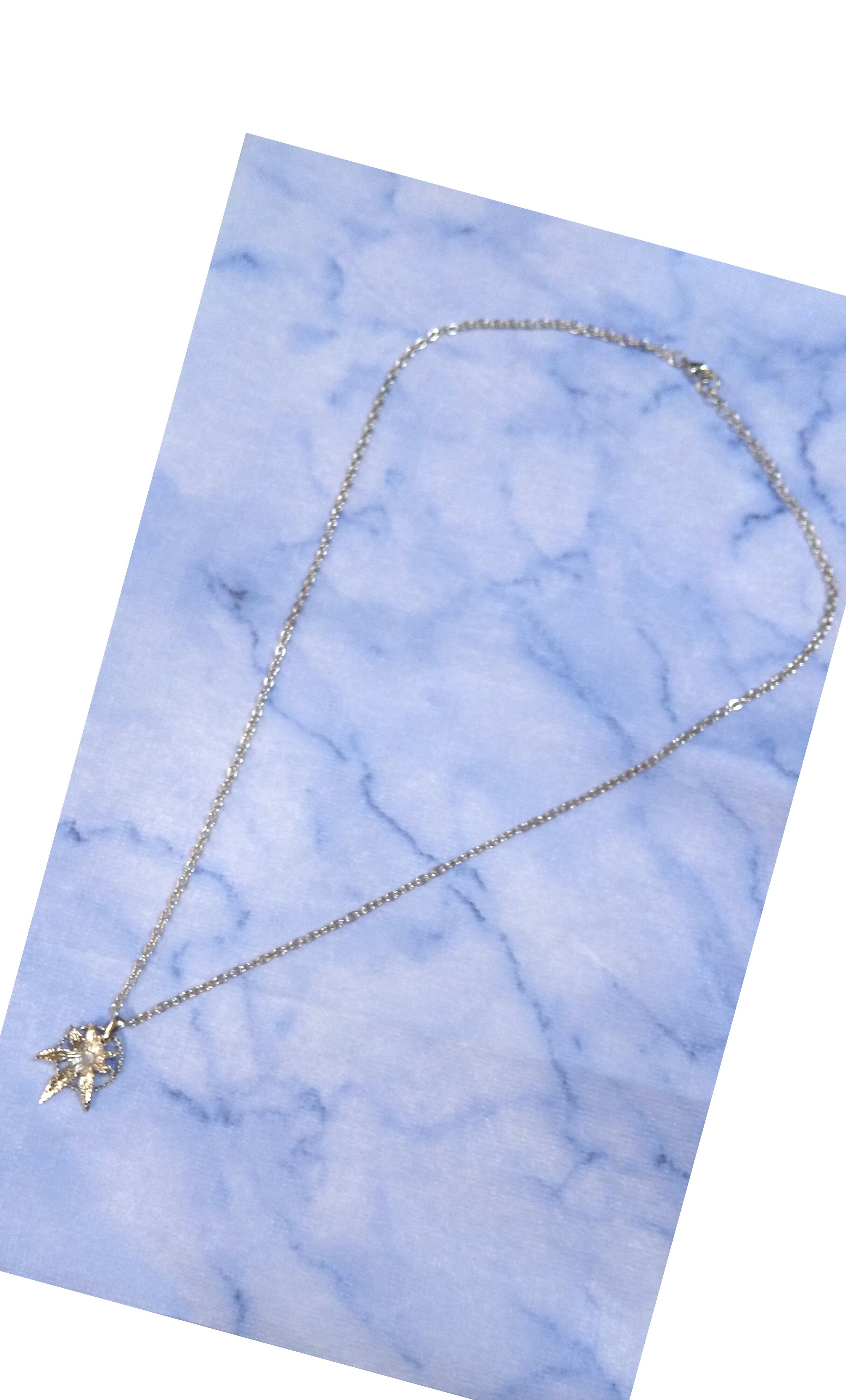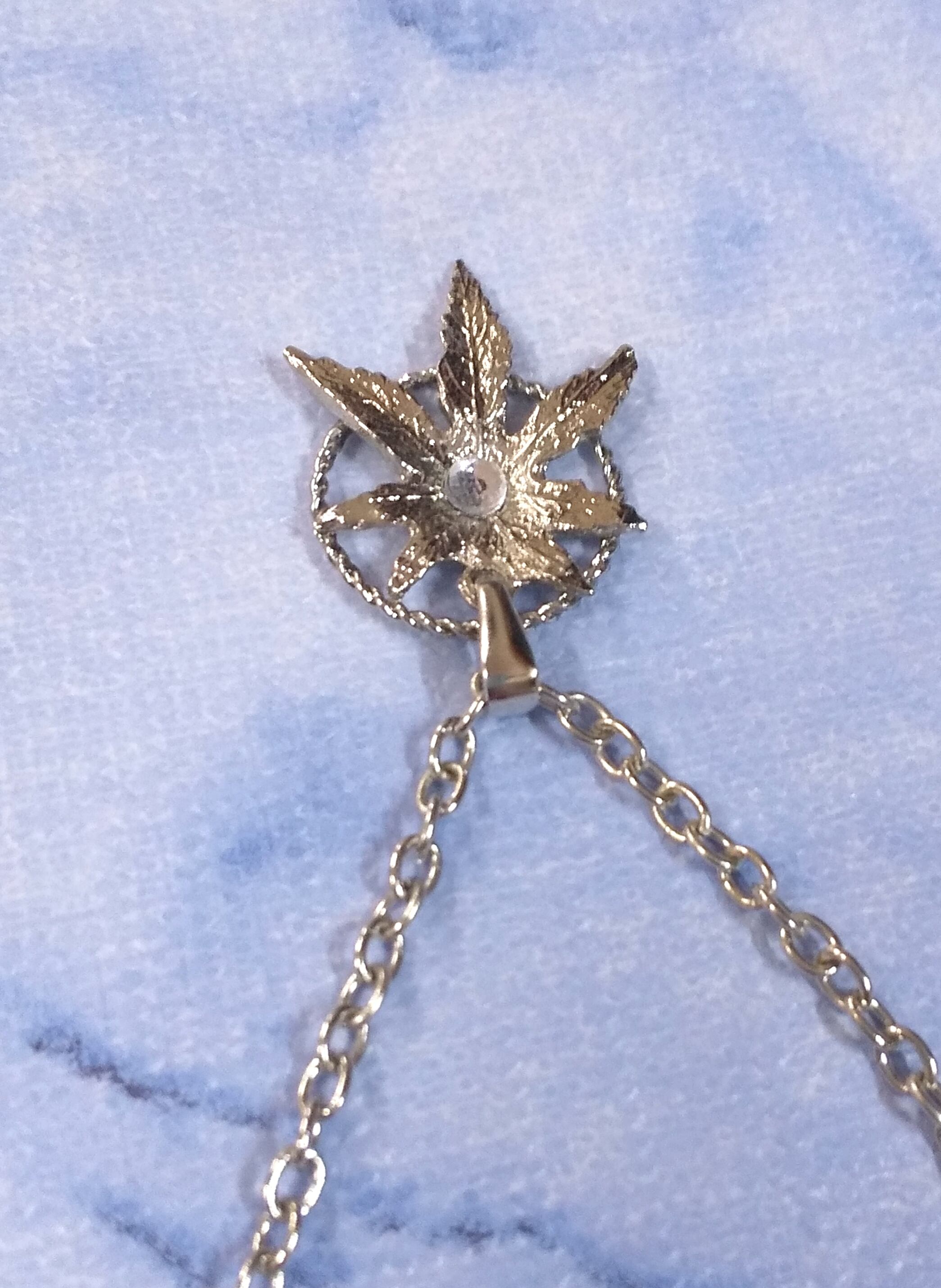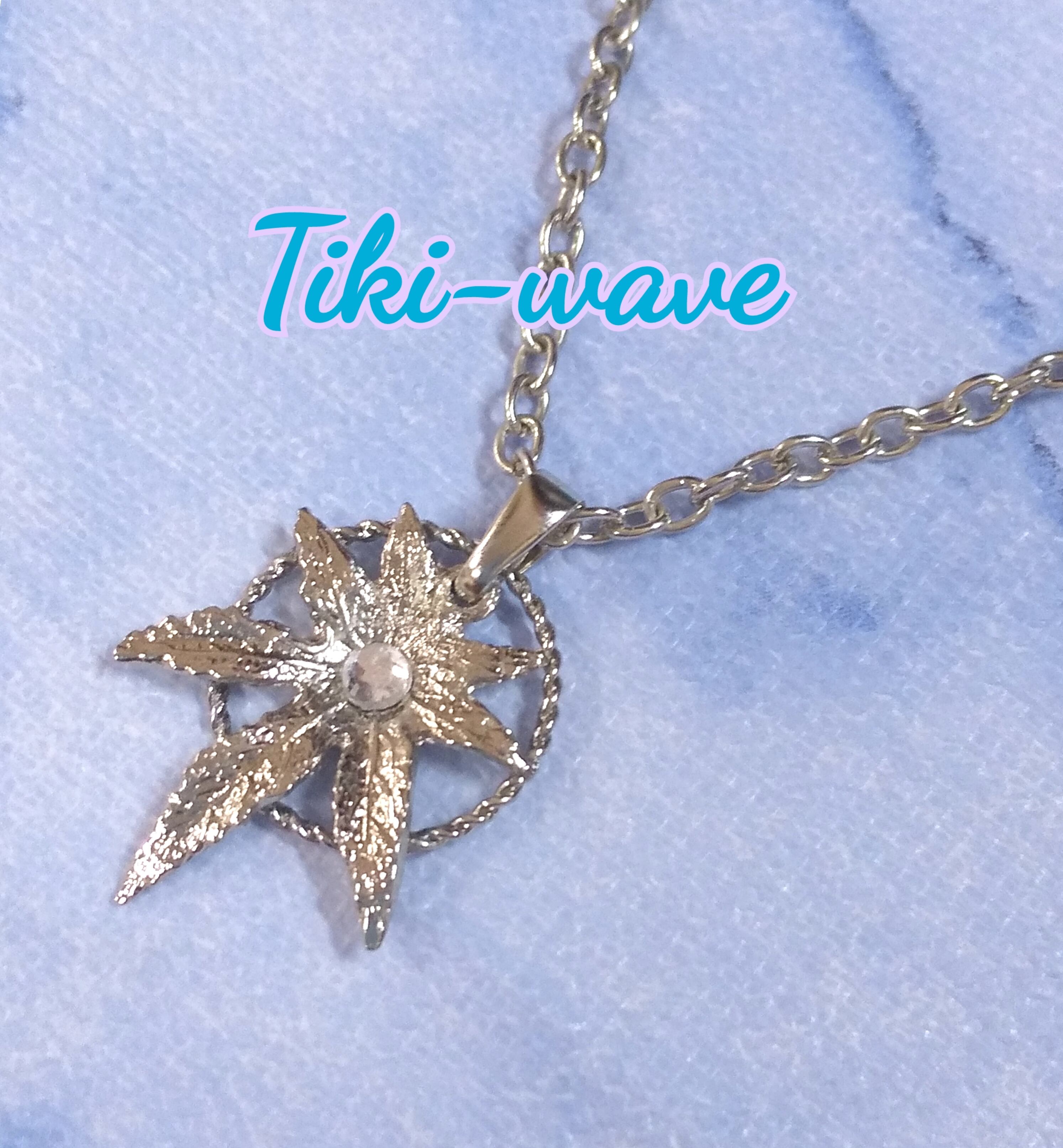 メンズネックレス シルバーカラー ガンジャリーフ &クリアCZ Y-708