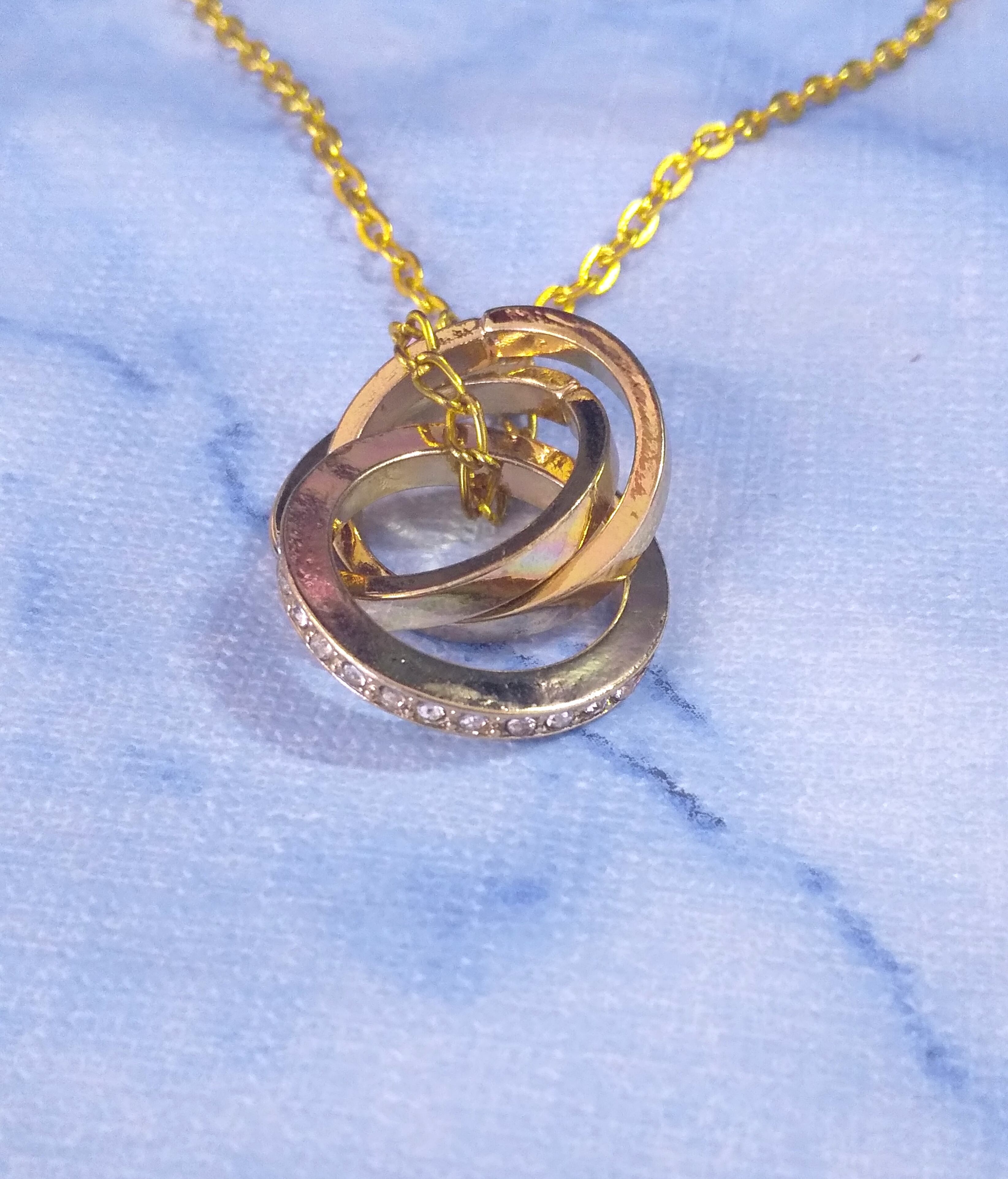 メンズネックレス ゴールドカラー トリプルリング &クリアCZ Y-709