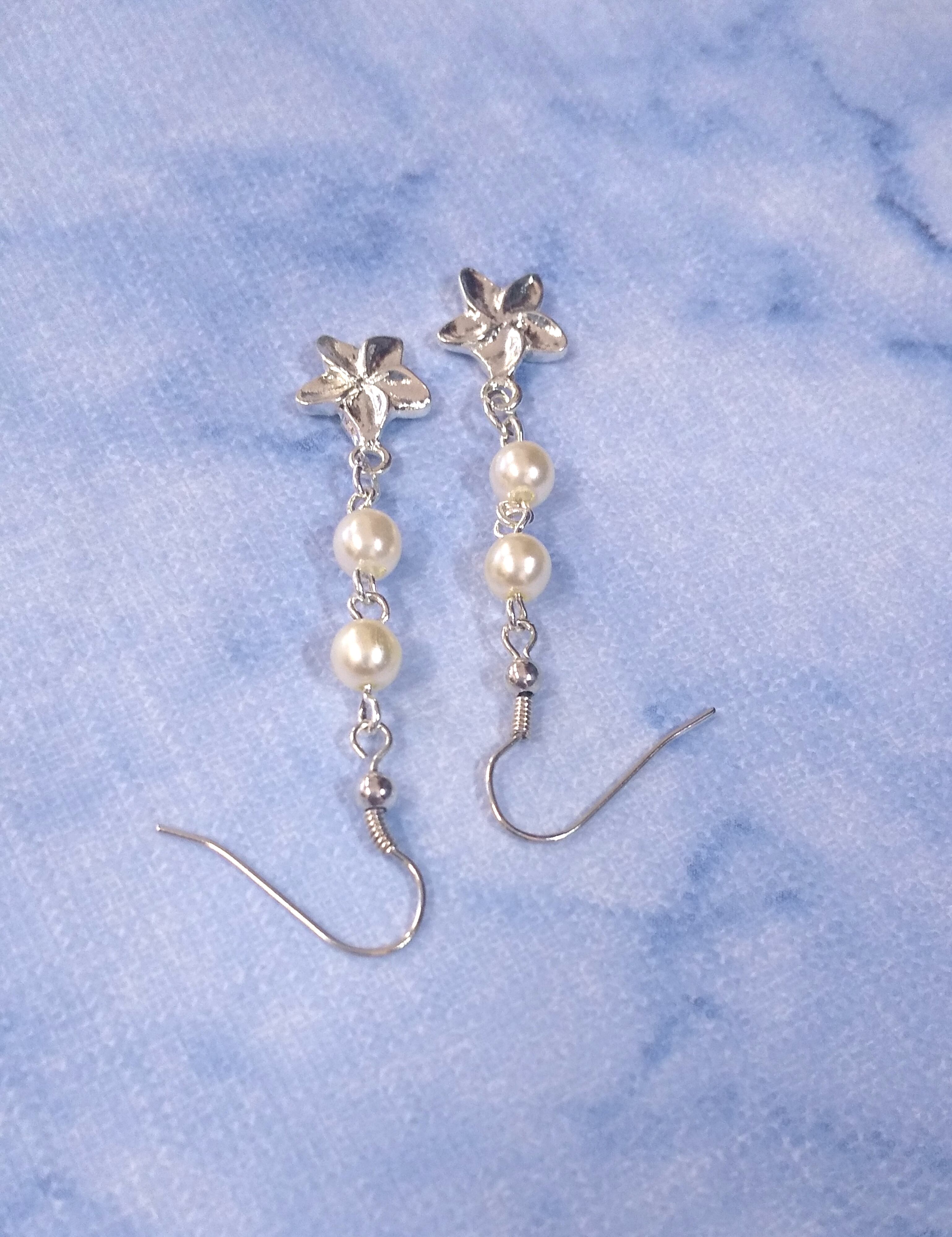 ハワイアンピアス シルバープルメリア& 2連ホワイトパール A-139