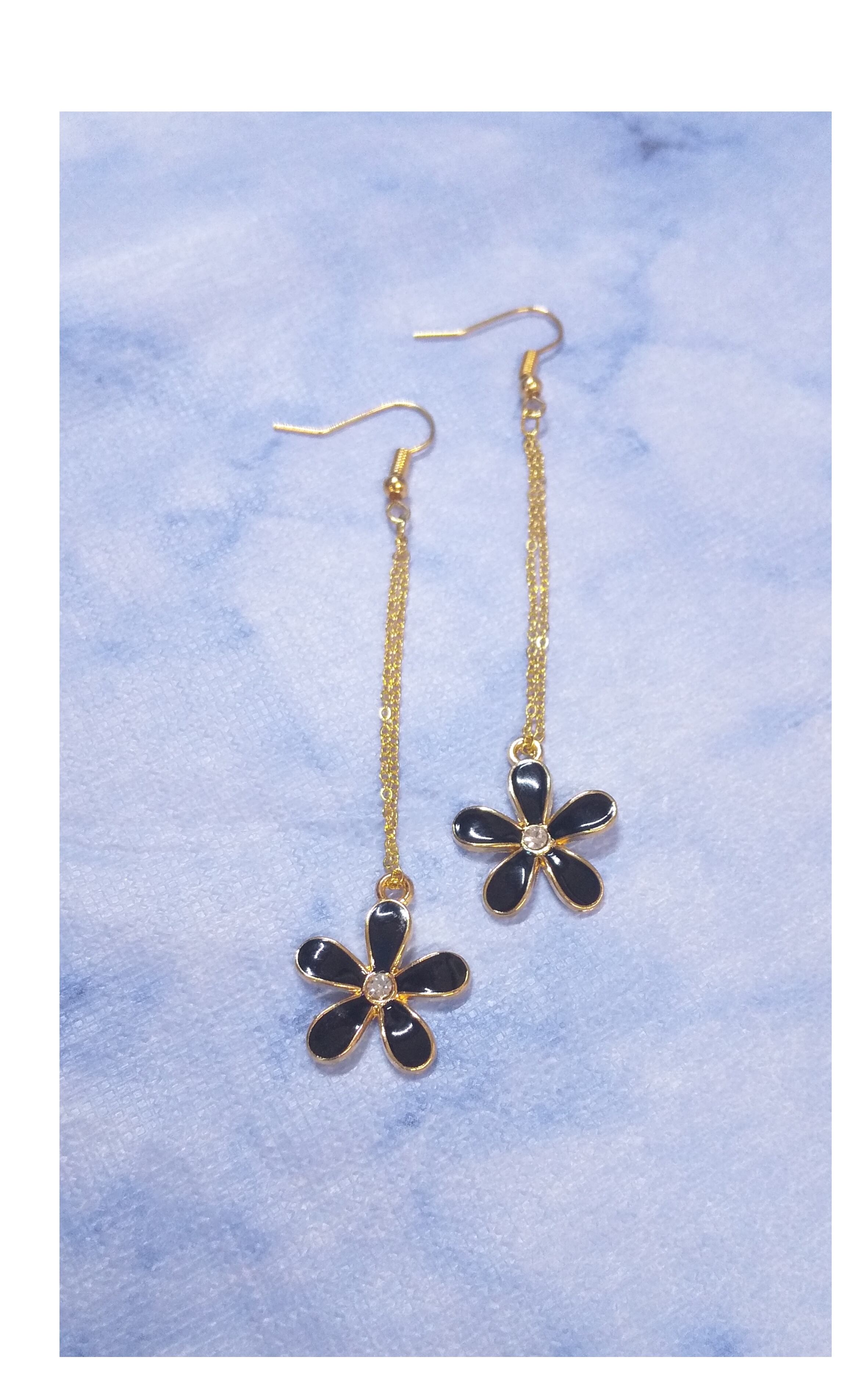 ハワイアンピアス ブラック&ゴールドフラワー ロングチェーン A-144