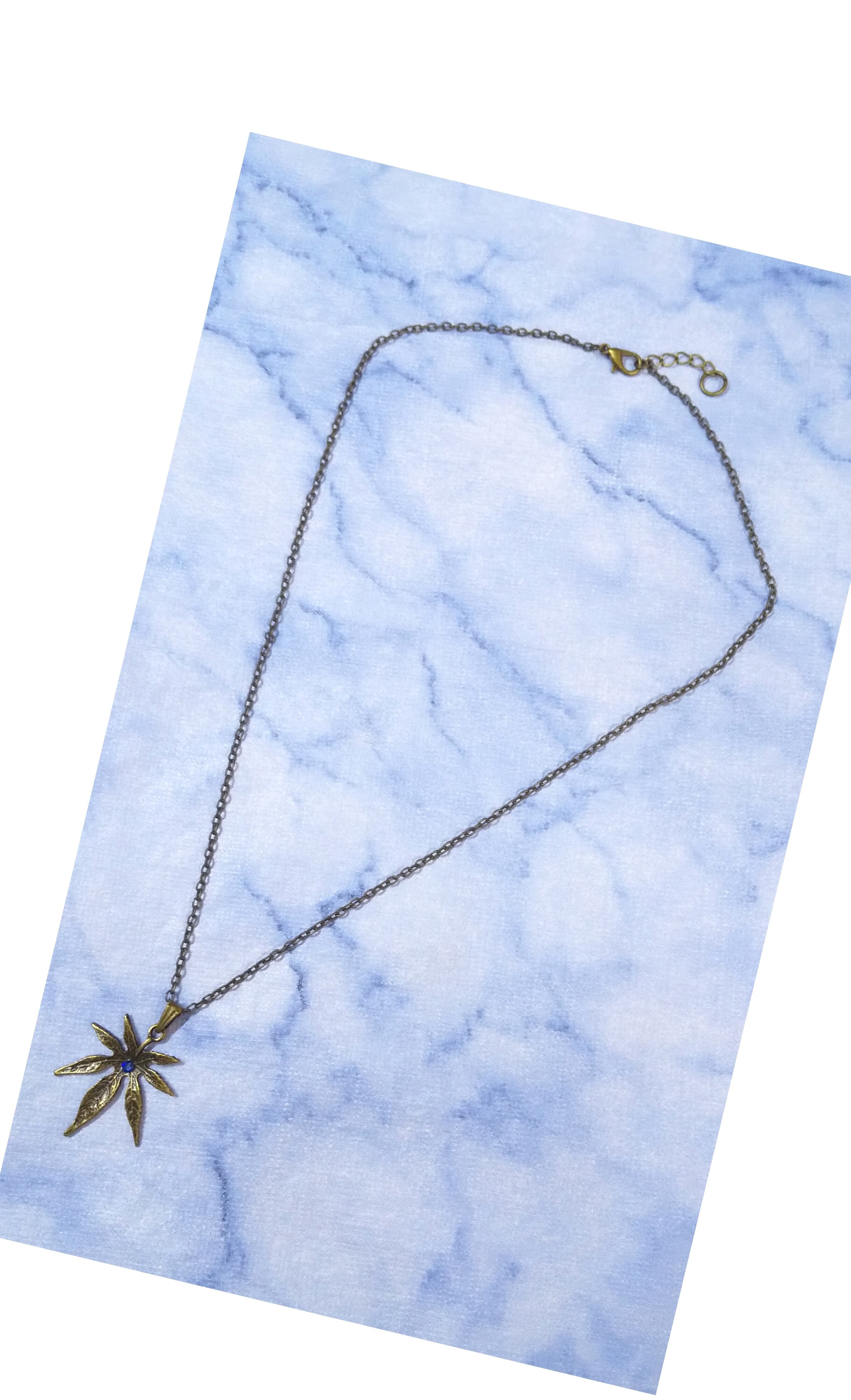 メンズネックレス クラシックゴールド ガンジャリーフ&ブルーCZ Y-711