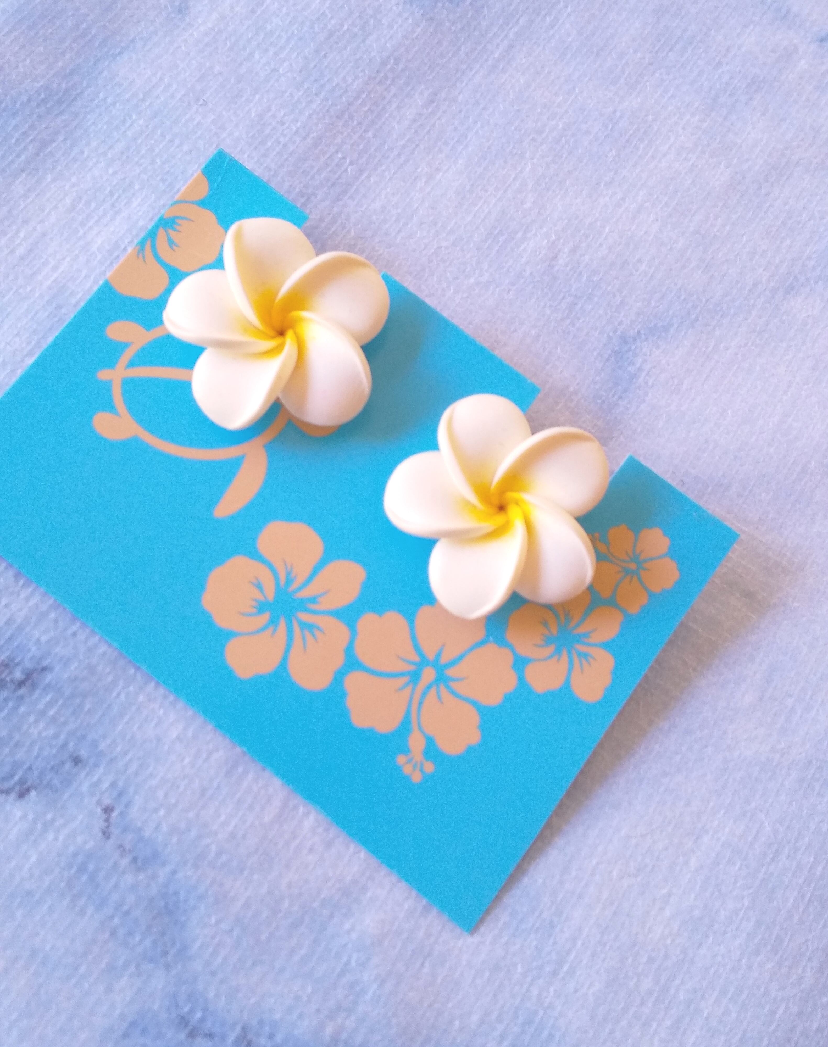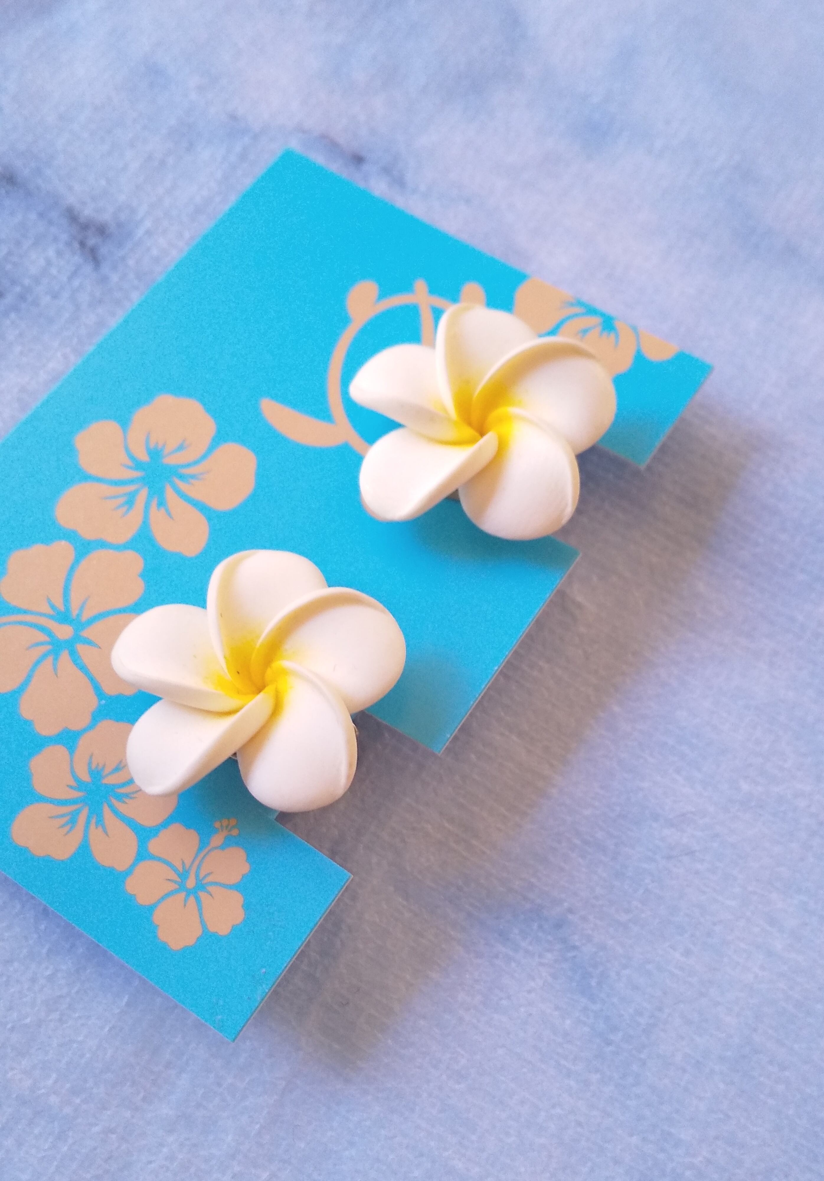 ハワイアンデザイン イヤリング ホワイト&イエローカラー プルメリア A-148