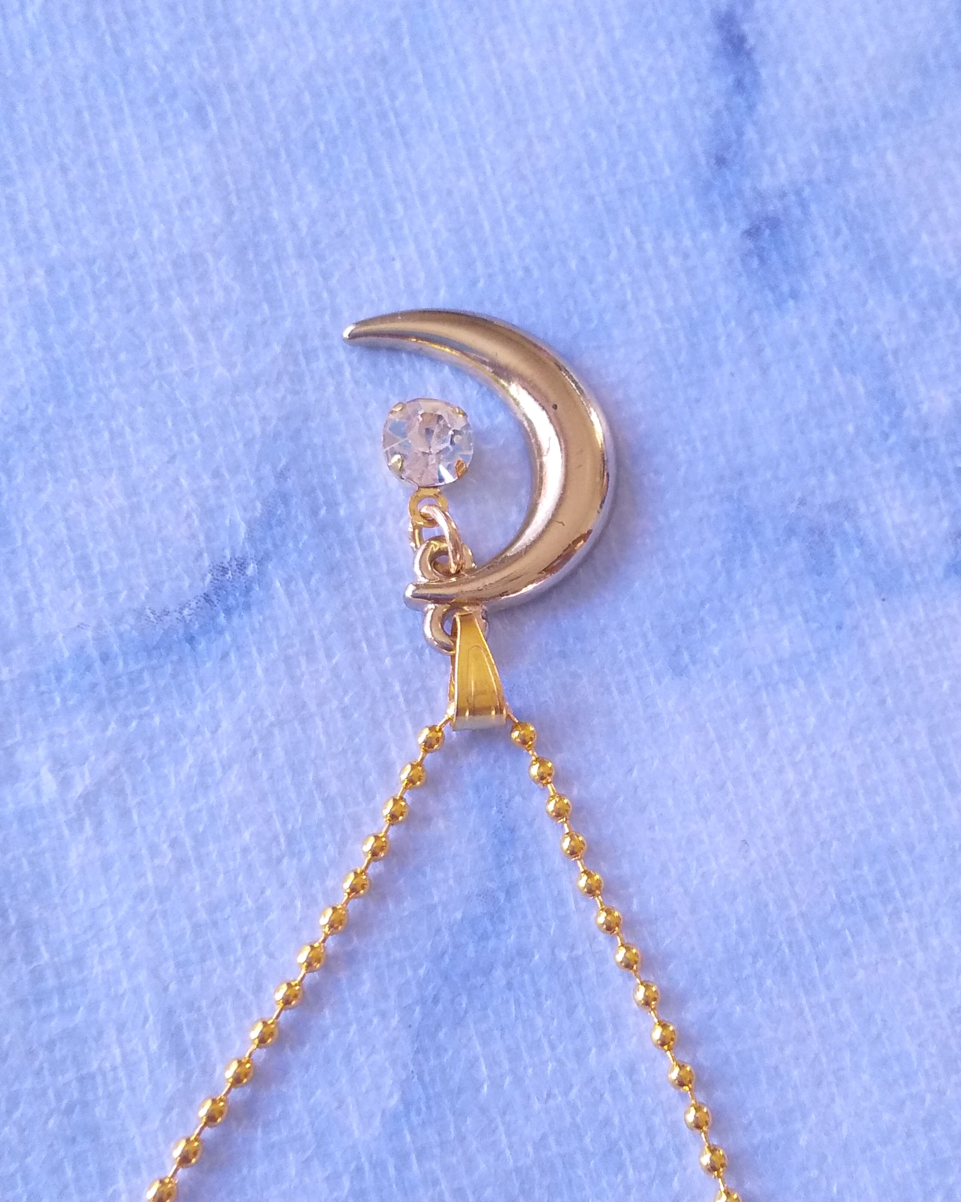 クリスマスネックレス ゴールドカラー ムーン& クリアカラーCZ F-906