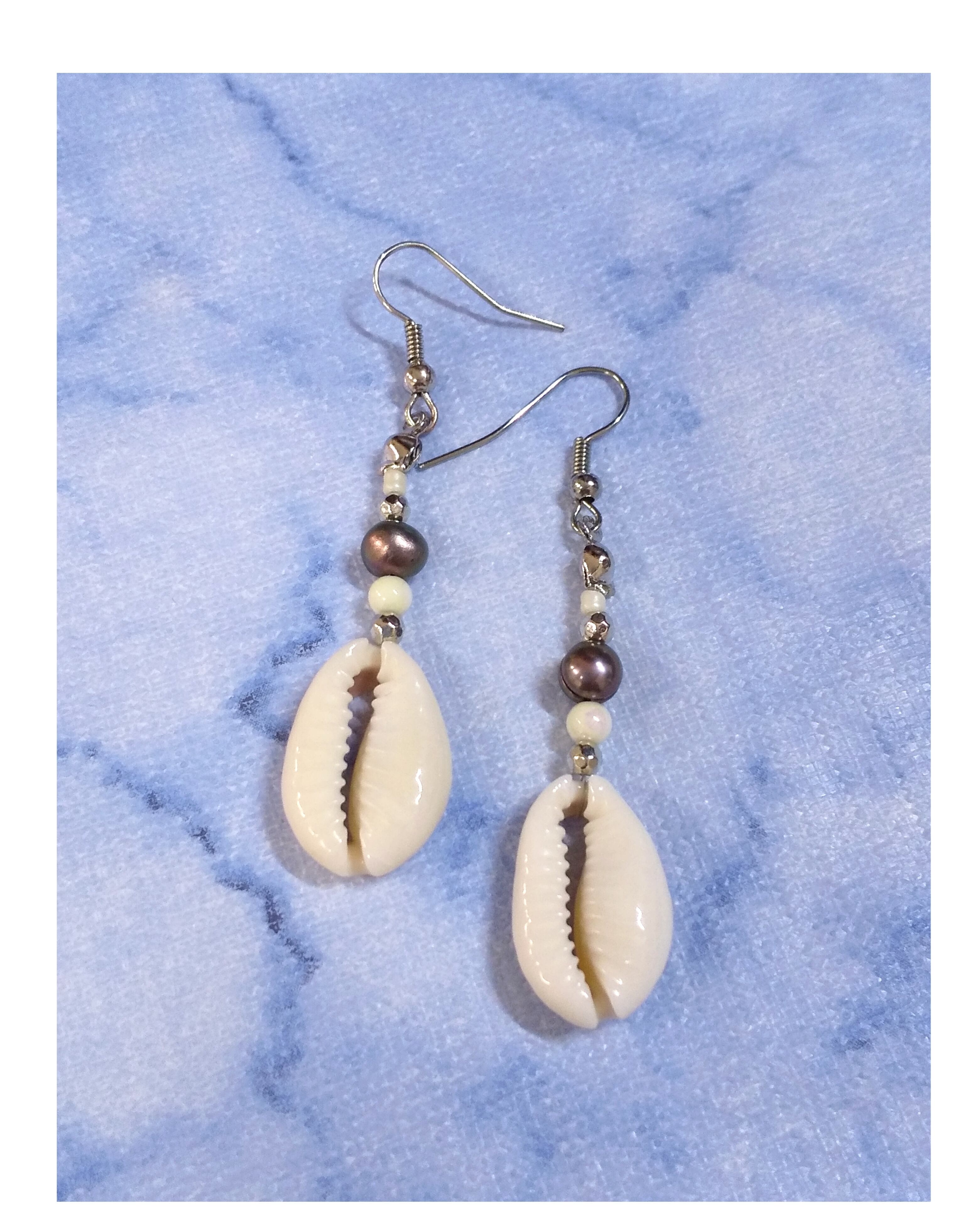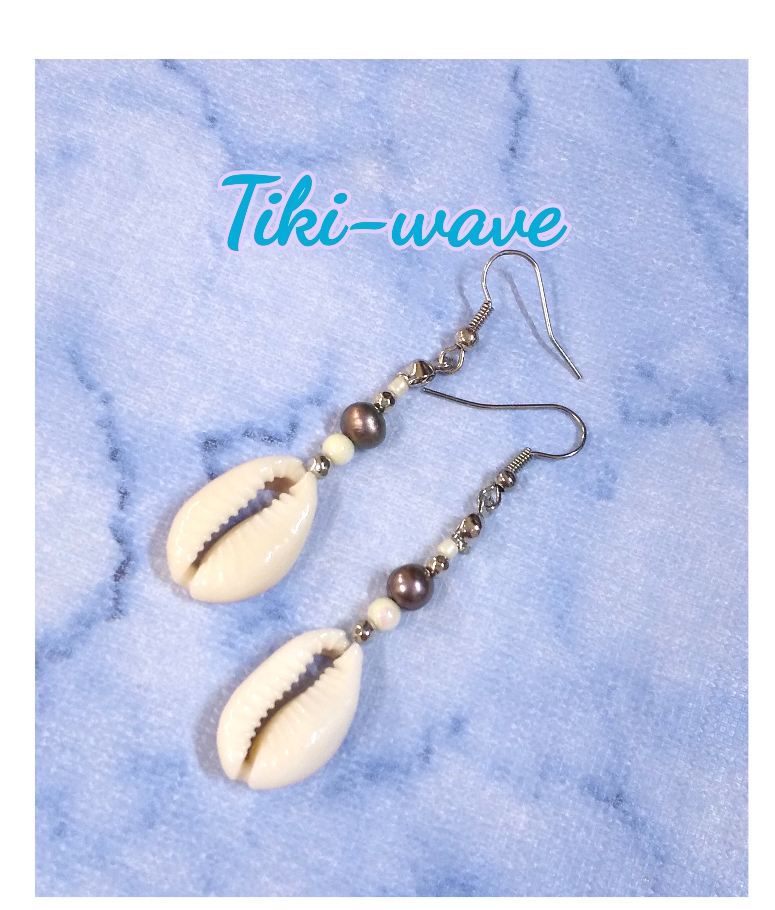 ハワイアクセサリー 天然シェル タカラ貝& 淡水パールピアス A-151