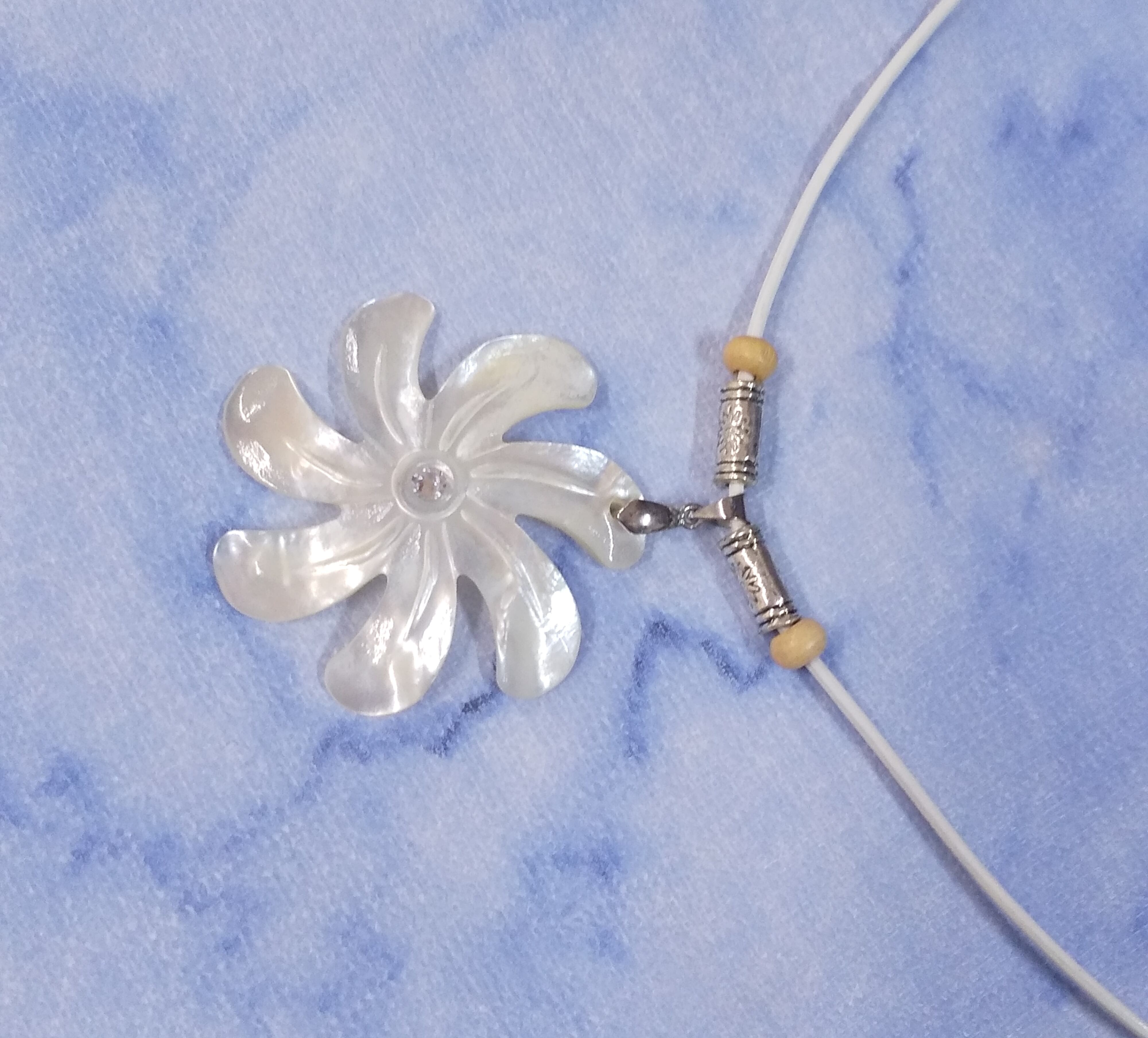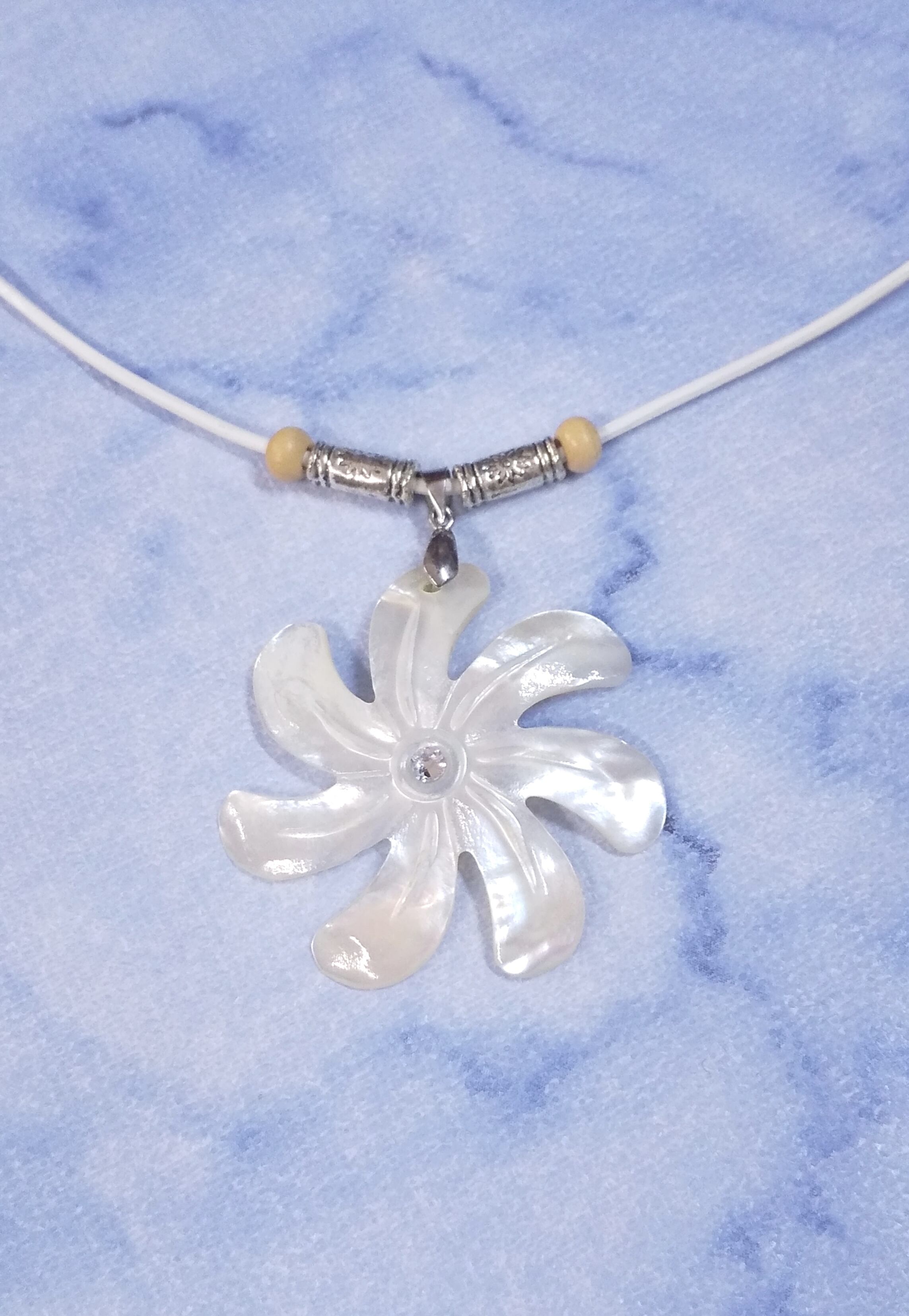 ハワイアンネックレス 天然シェルホワイトティアレ& ホワイト本革紐 T-208