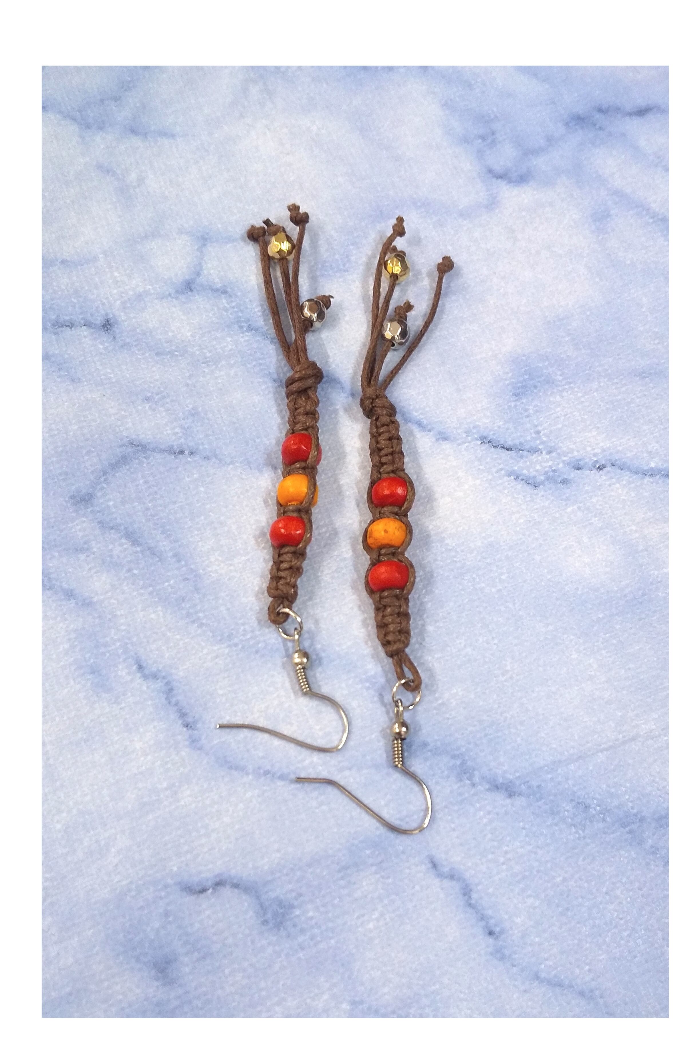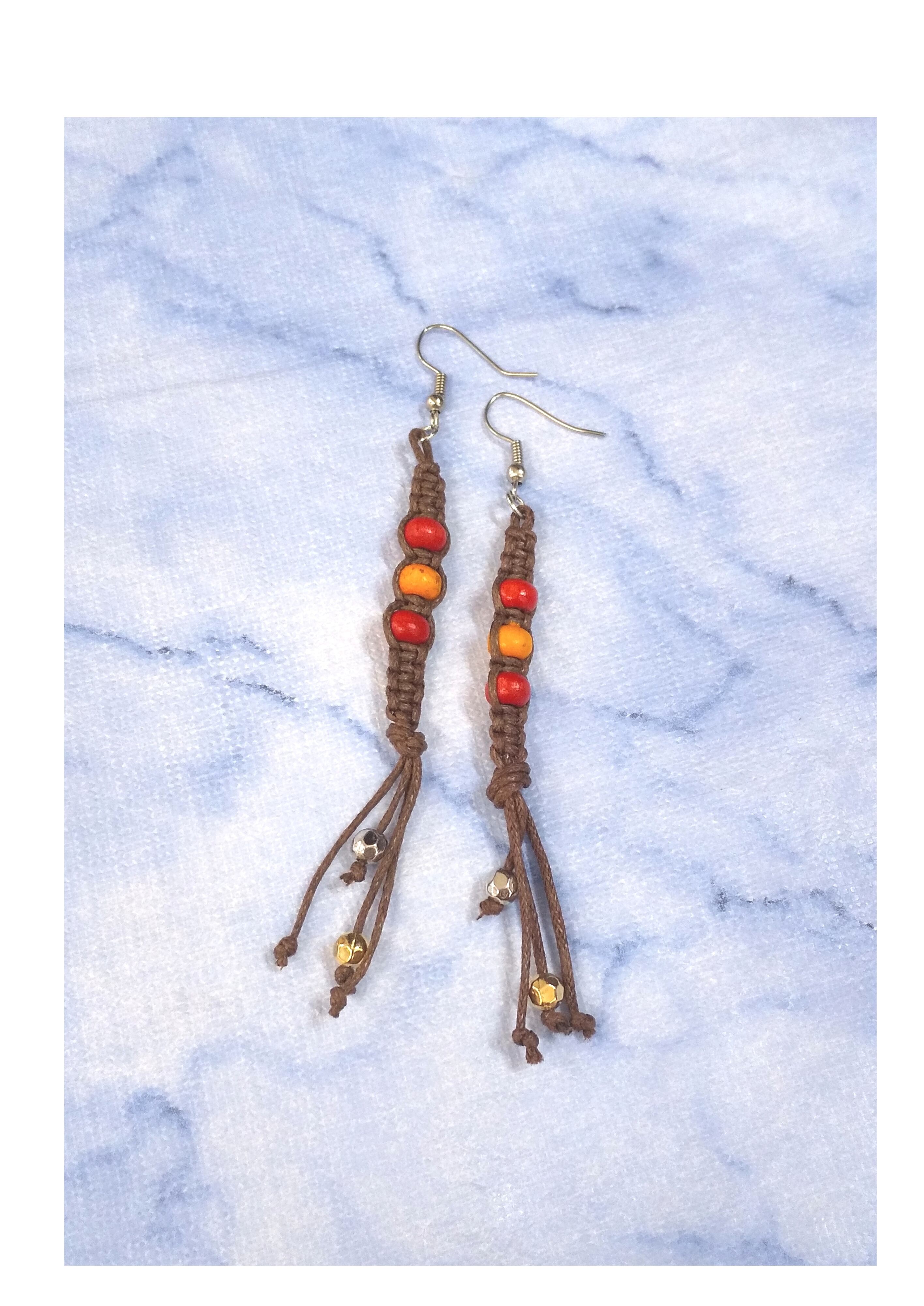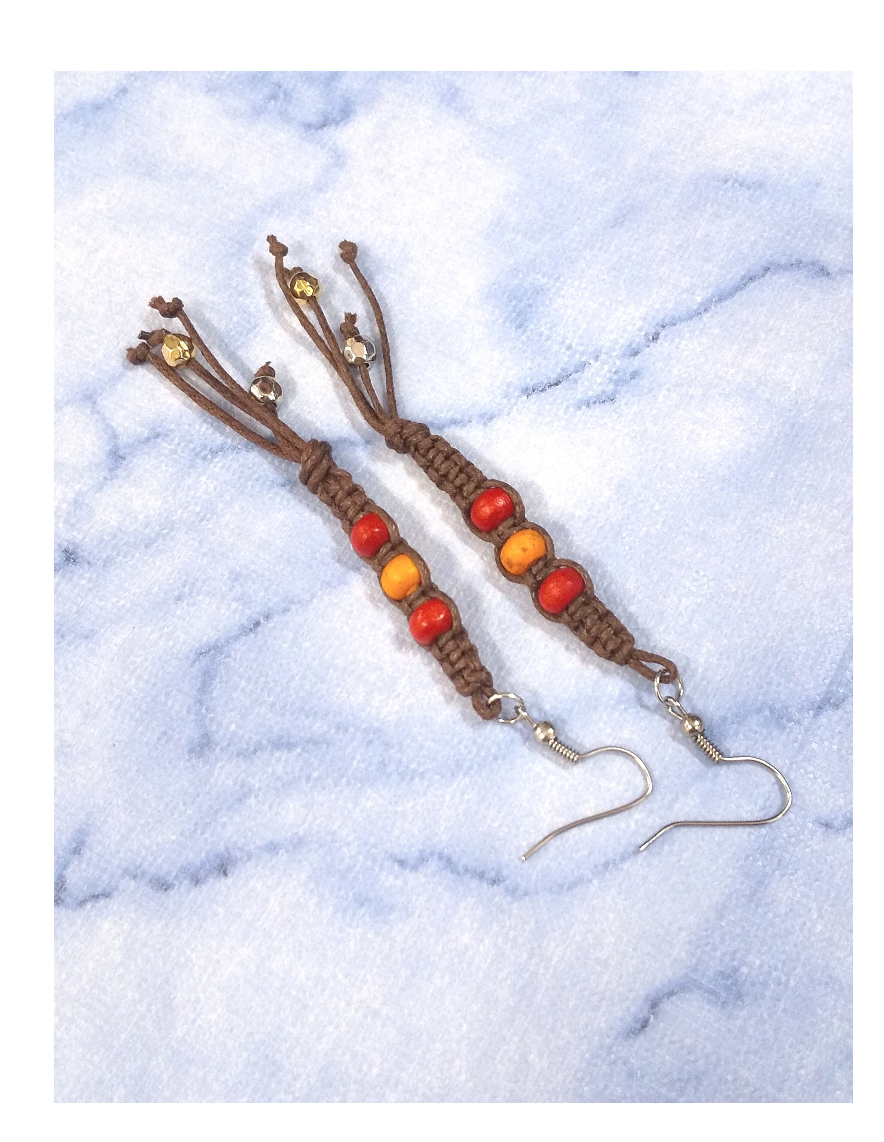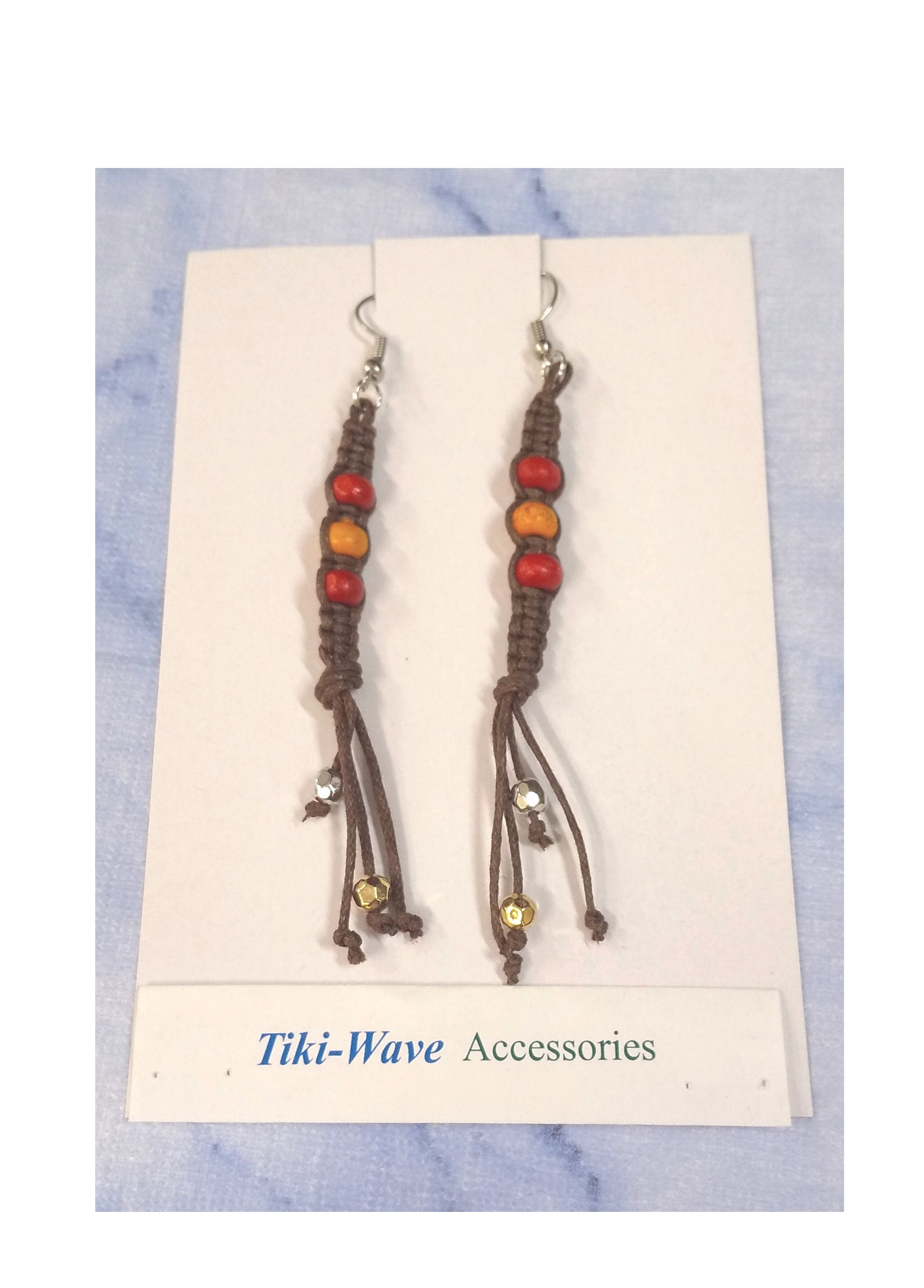 ハワイアクセサリー ブラウンコットン紐&ウッド ロングピアス A-154