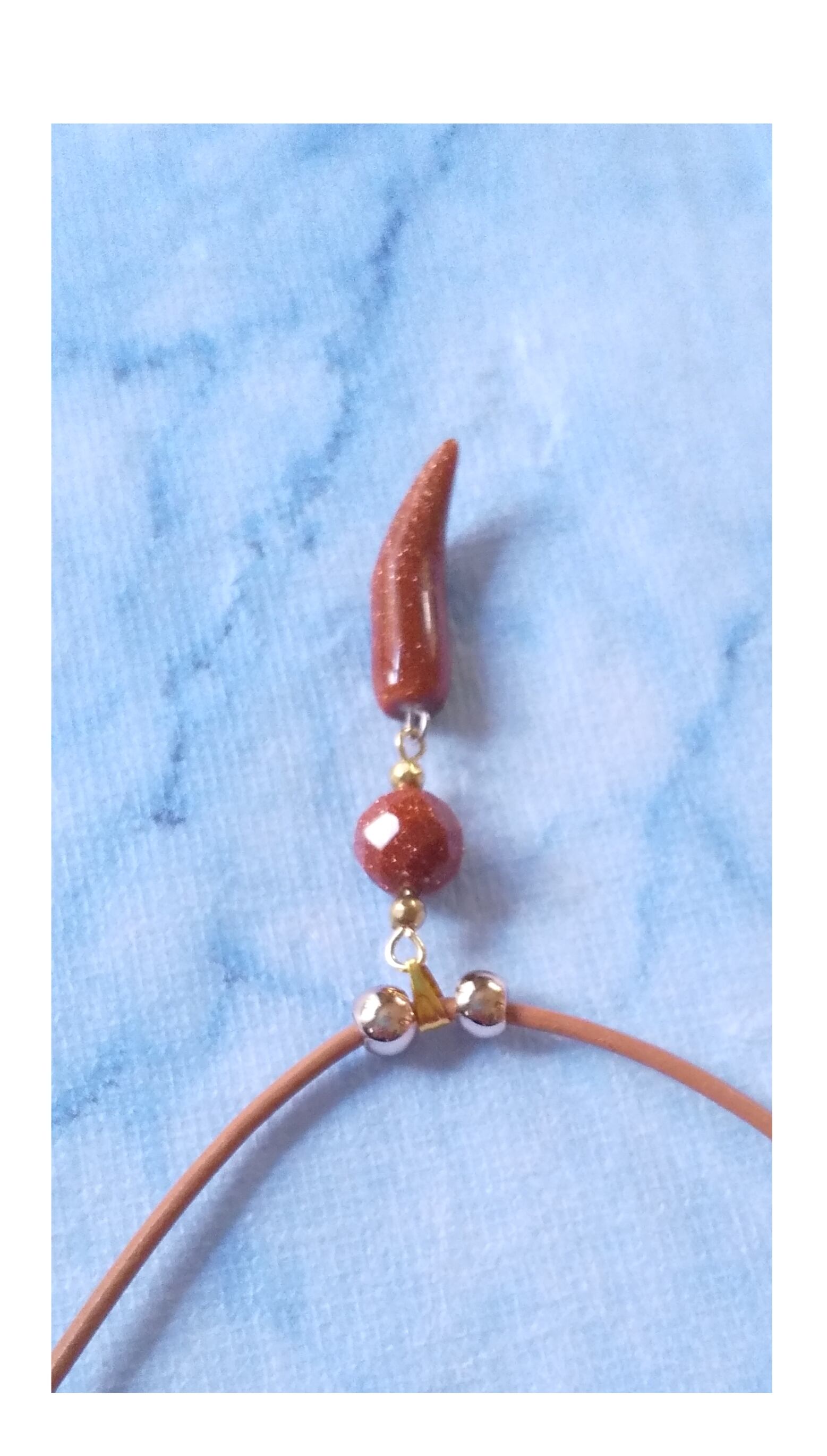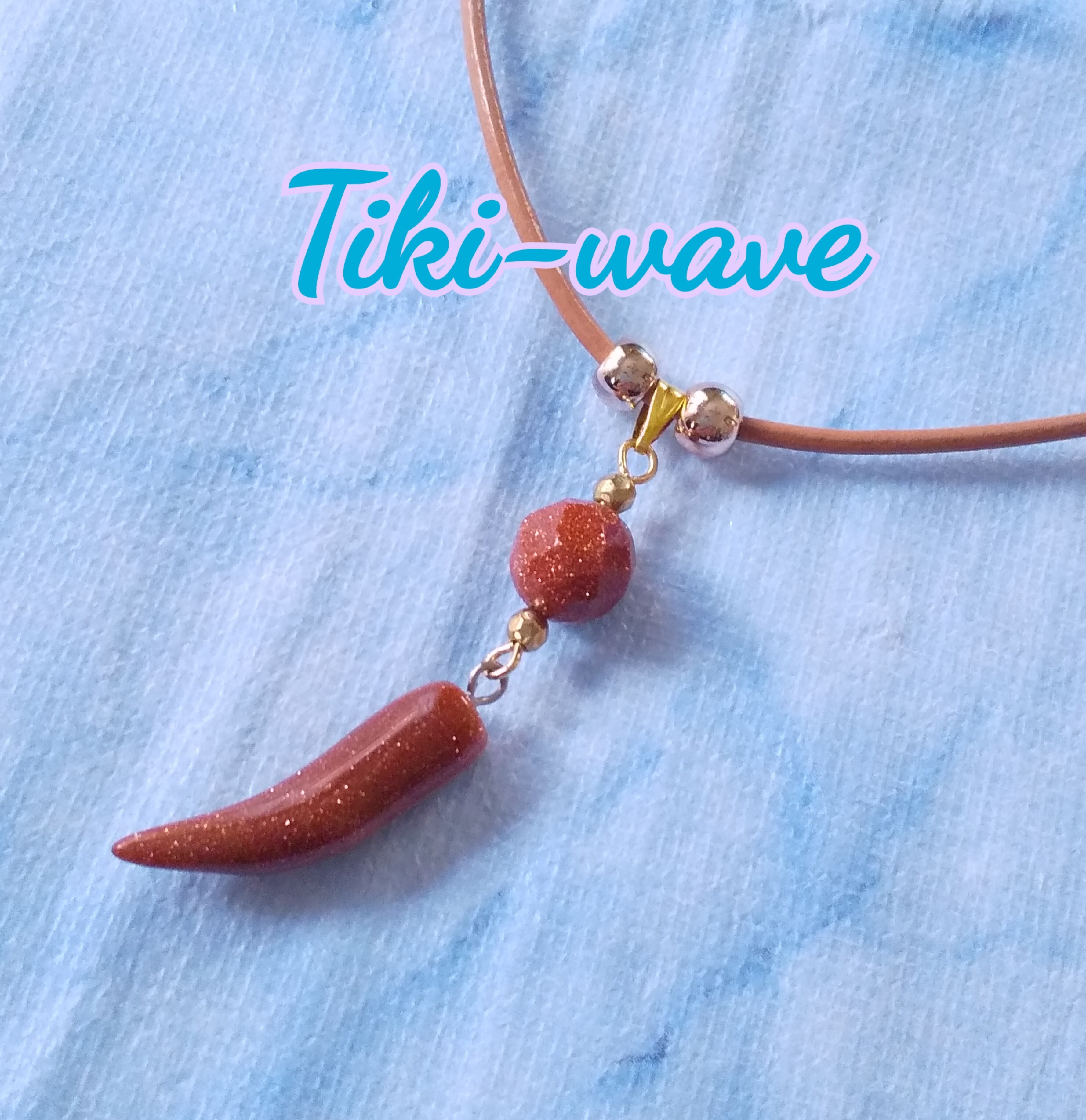 レディースネックレス ゴールドサンドストーン 牙&ボール 本革紐 T-718