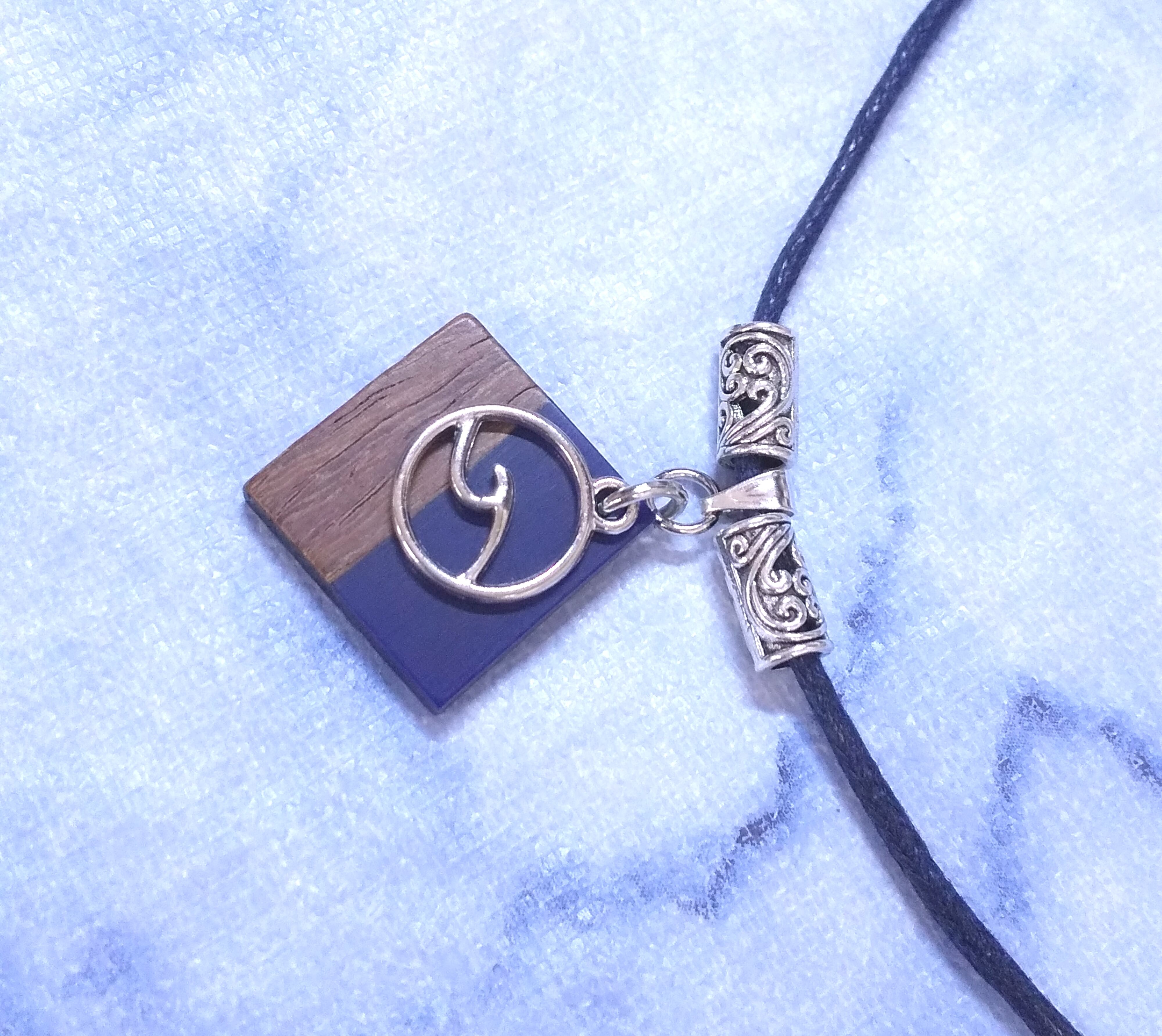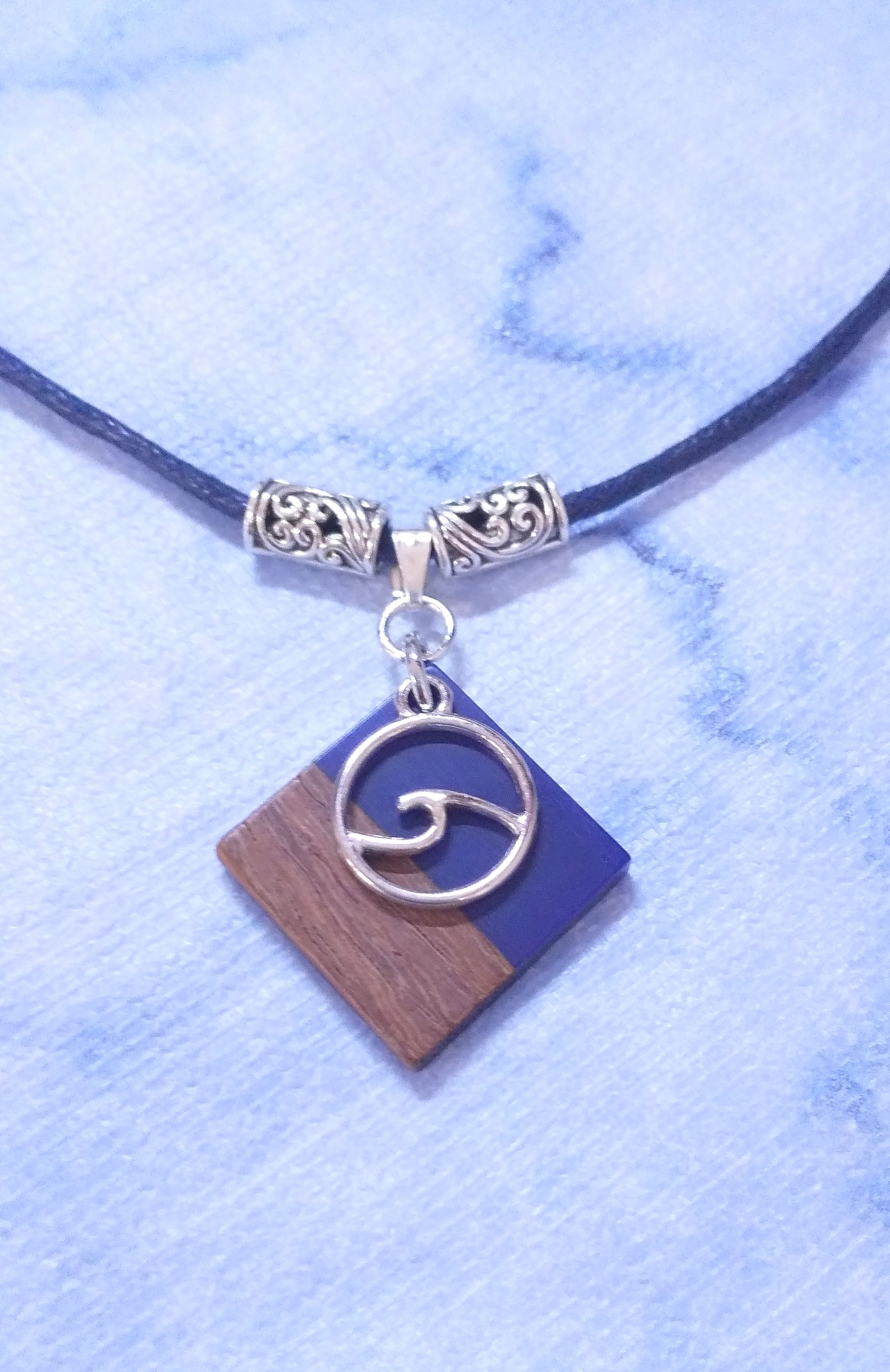 ハワイアンネックレス メンズ 天然ウッド& シルバーウエーブ ネイビー Y-802