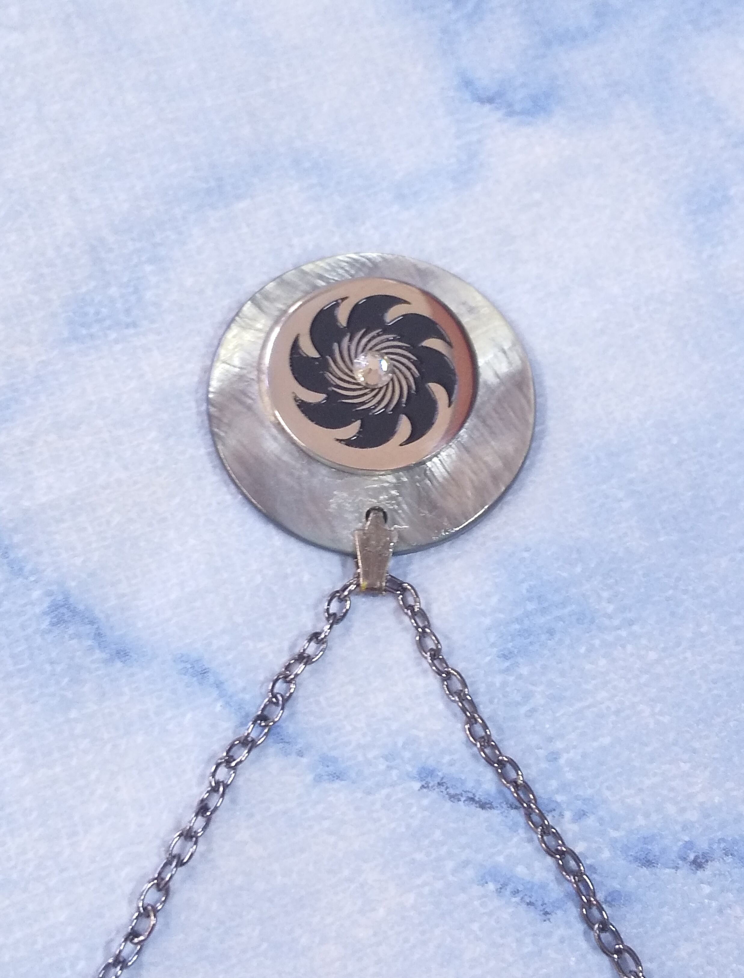 メンズネックレス 天然ラウンドシェル& 風神シルバーサークル Y-712