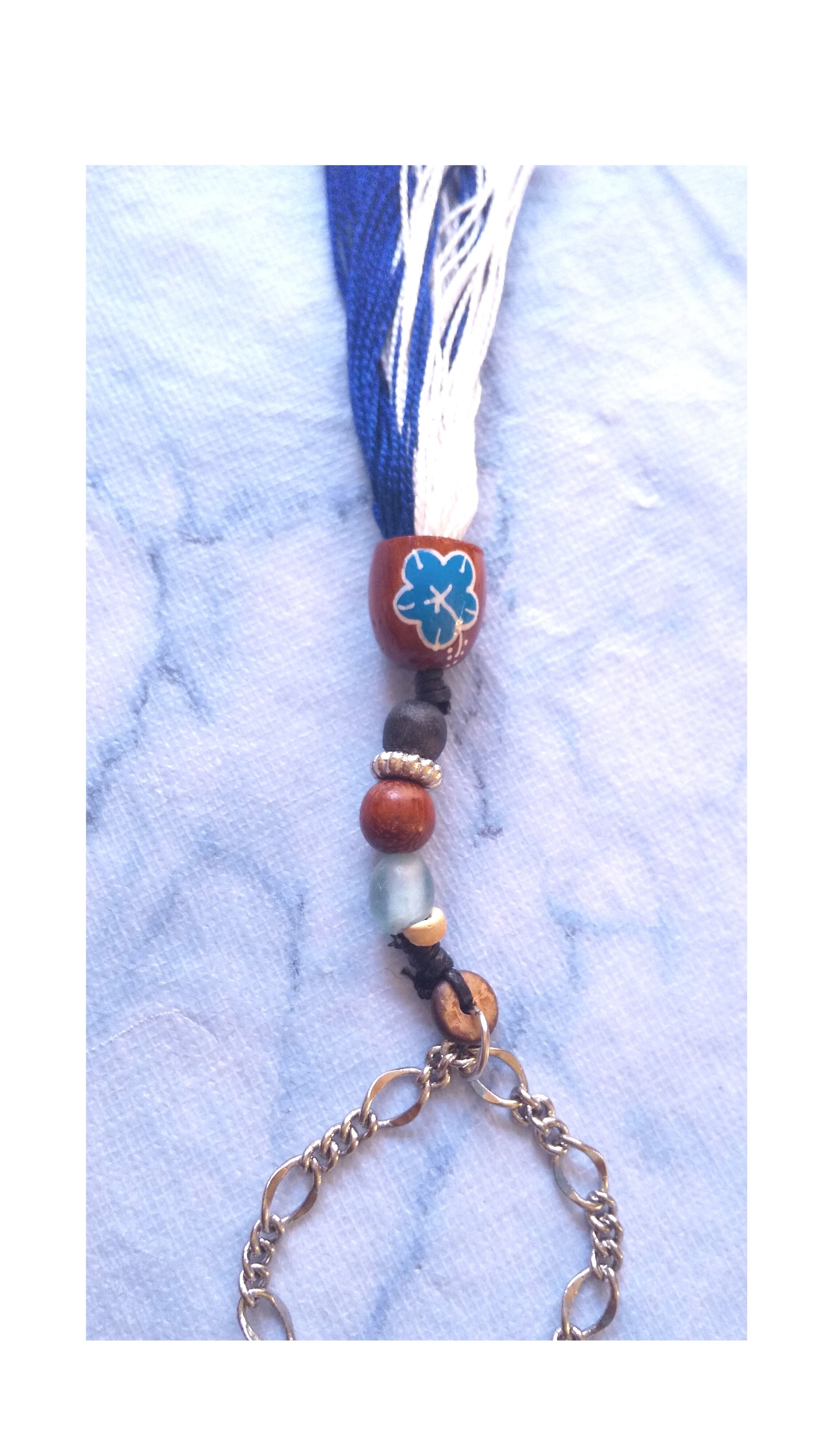 天然ウッド ハイビスカス& フリンジ マリンカラー バッグアクセサリー S-219