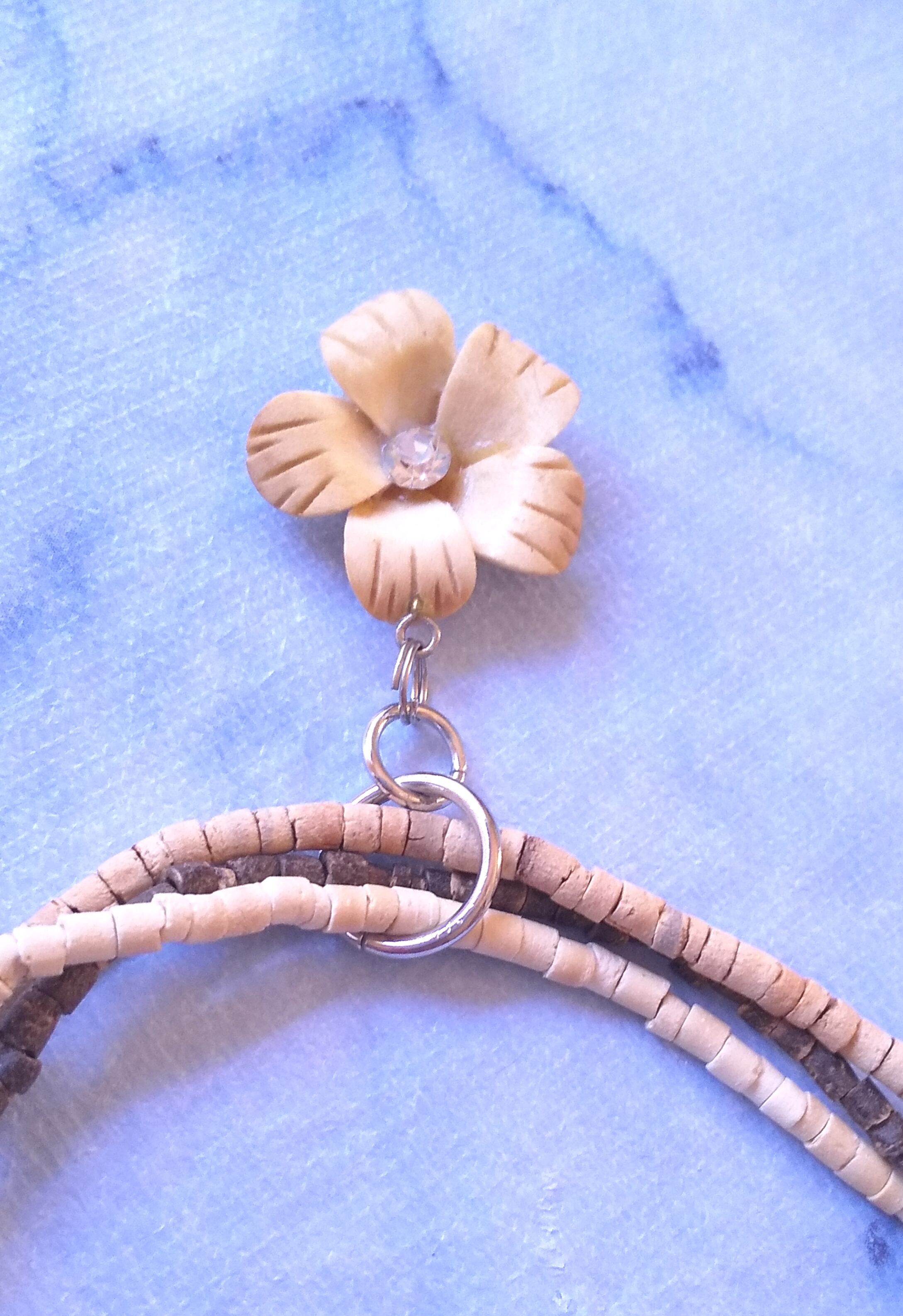 ハワイアンネックレス 天然ウッド プルメリアデザイン &ウッドビーズ P-684