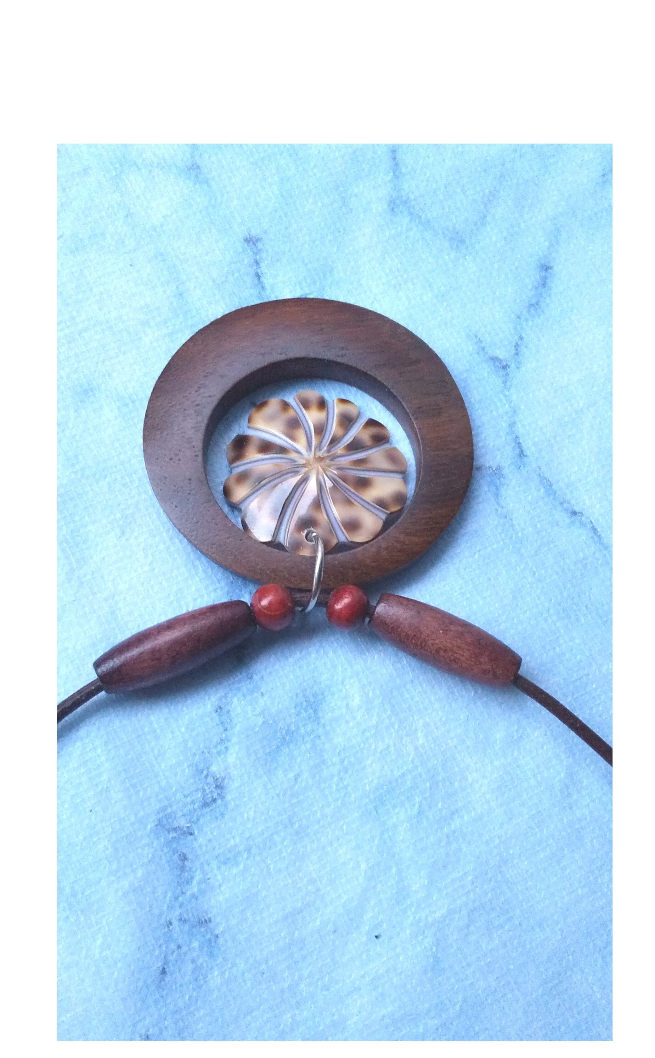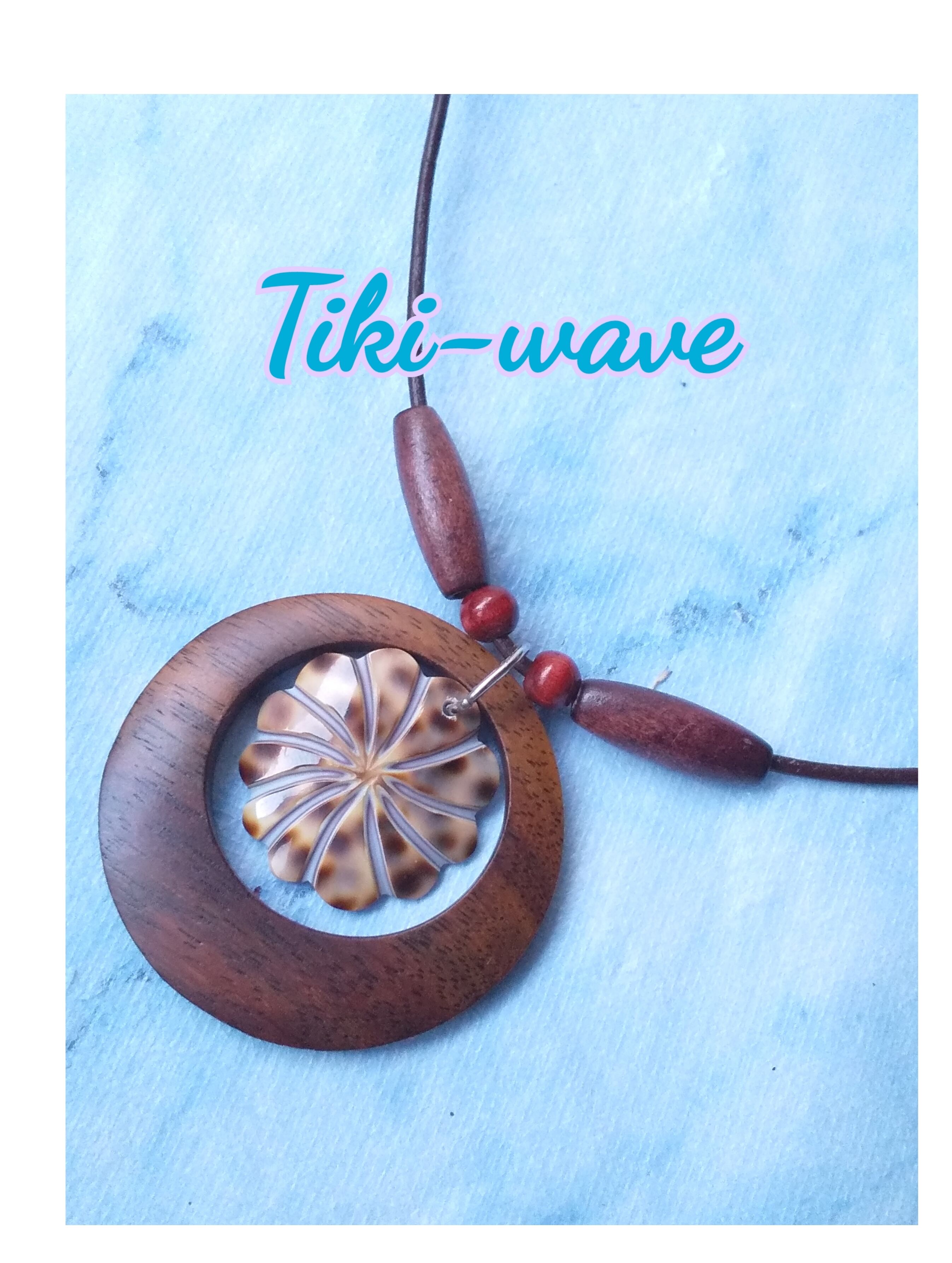 ハワイアンネックレス 天然シェル&ラウンドウッド ティア 本革紐 S-358