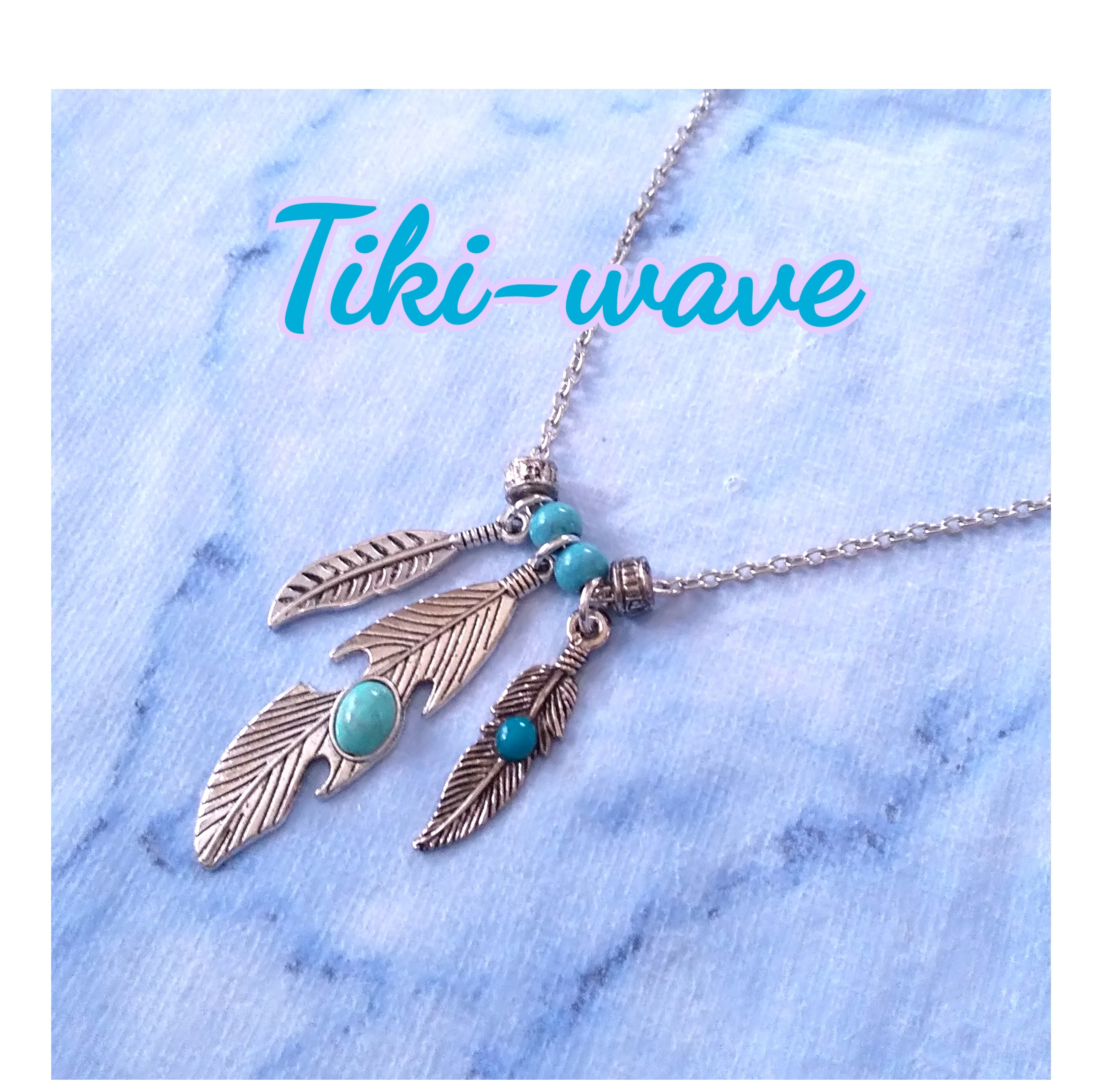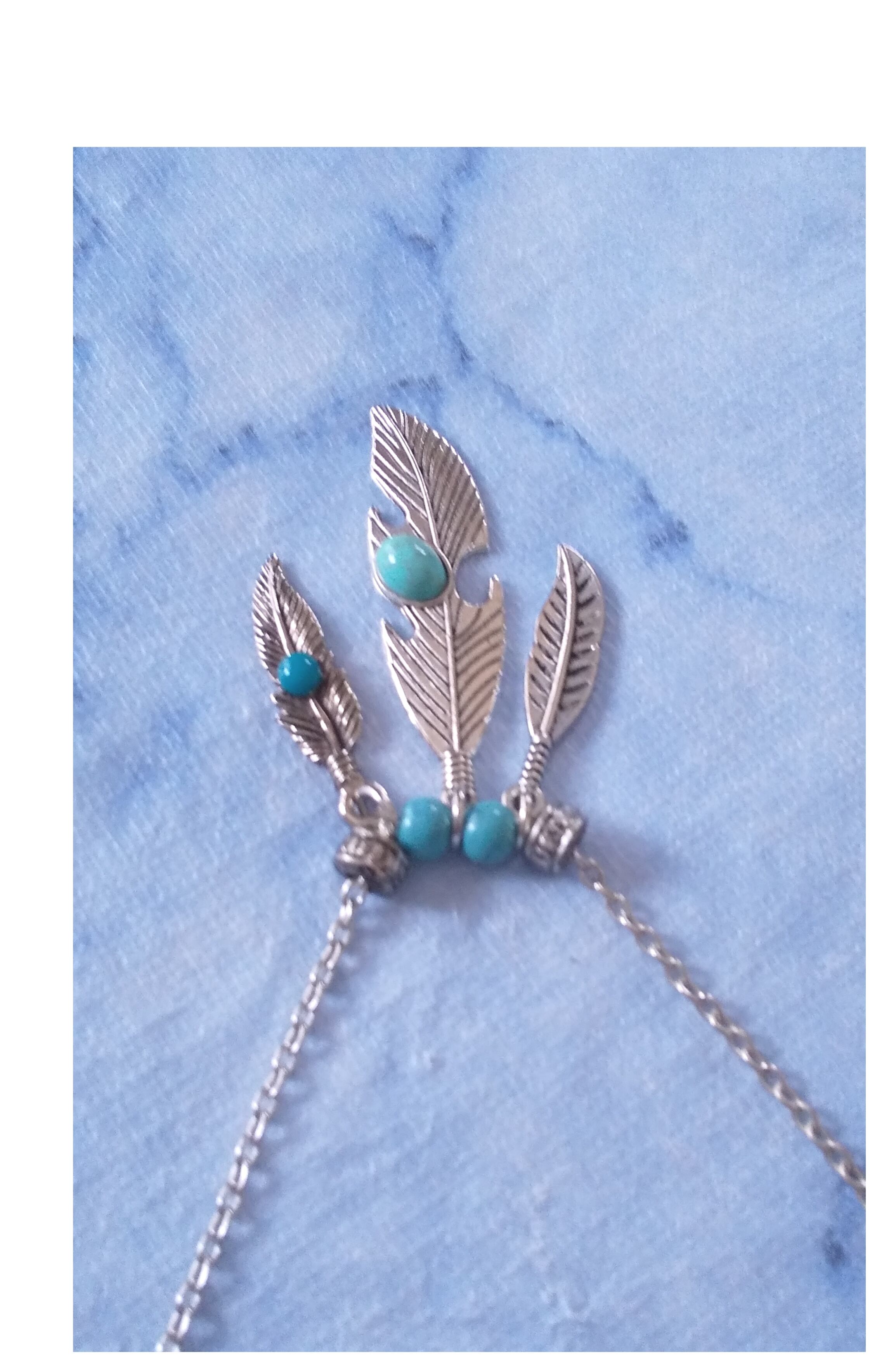 メンズネックレス シルバーカラー3連フェザー&ブルーターコイズ Y-530