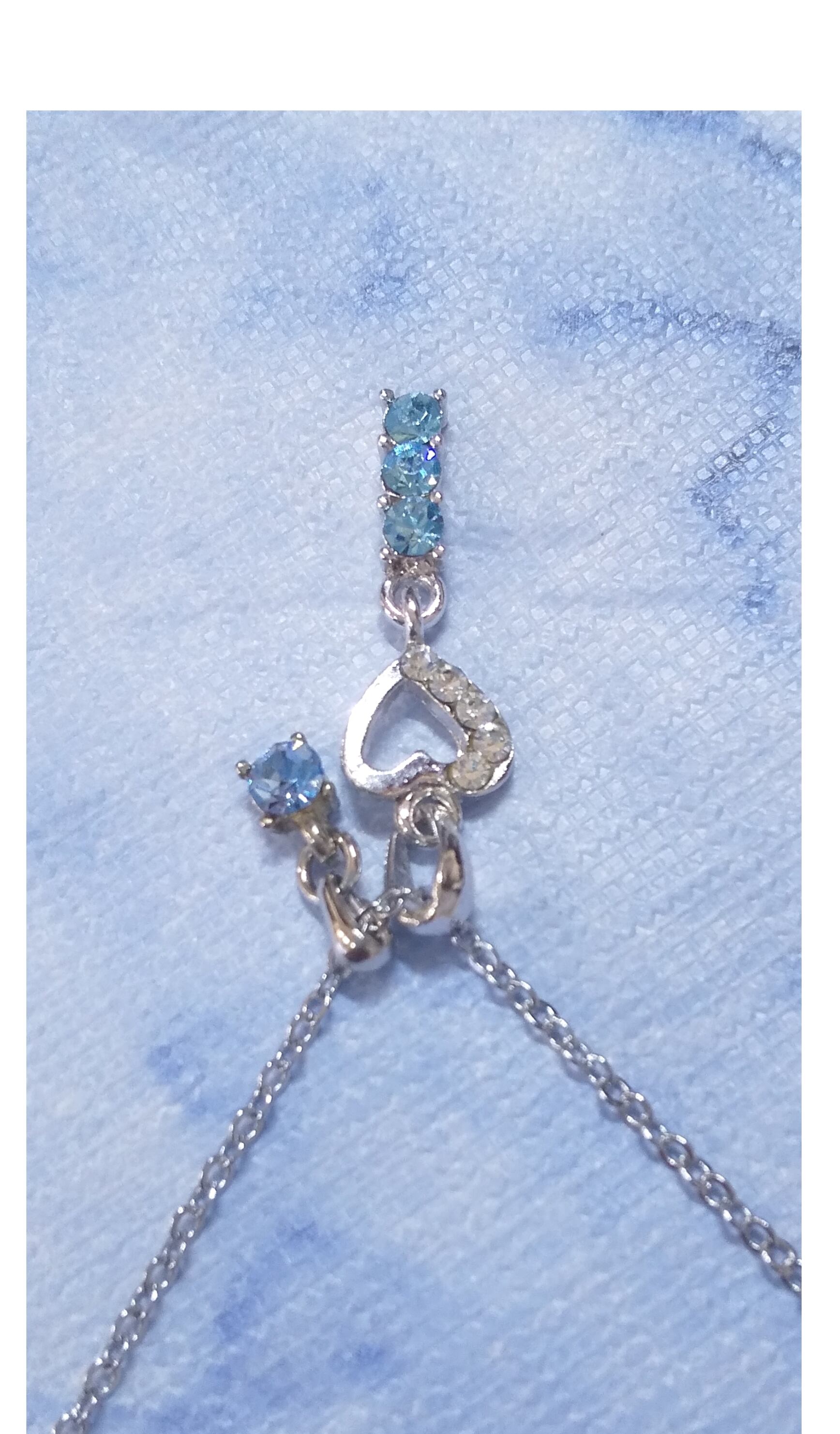 レディースネックレス シルバーハート&ライトブルー CZ 3連チャーム L-842