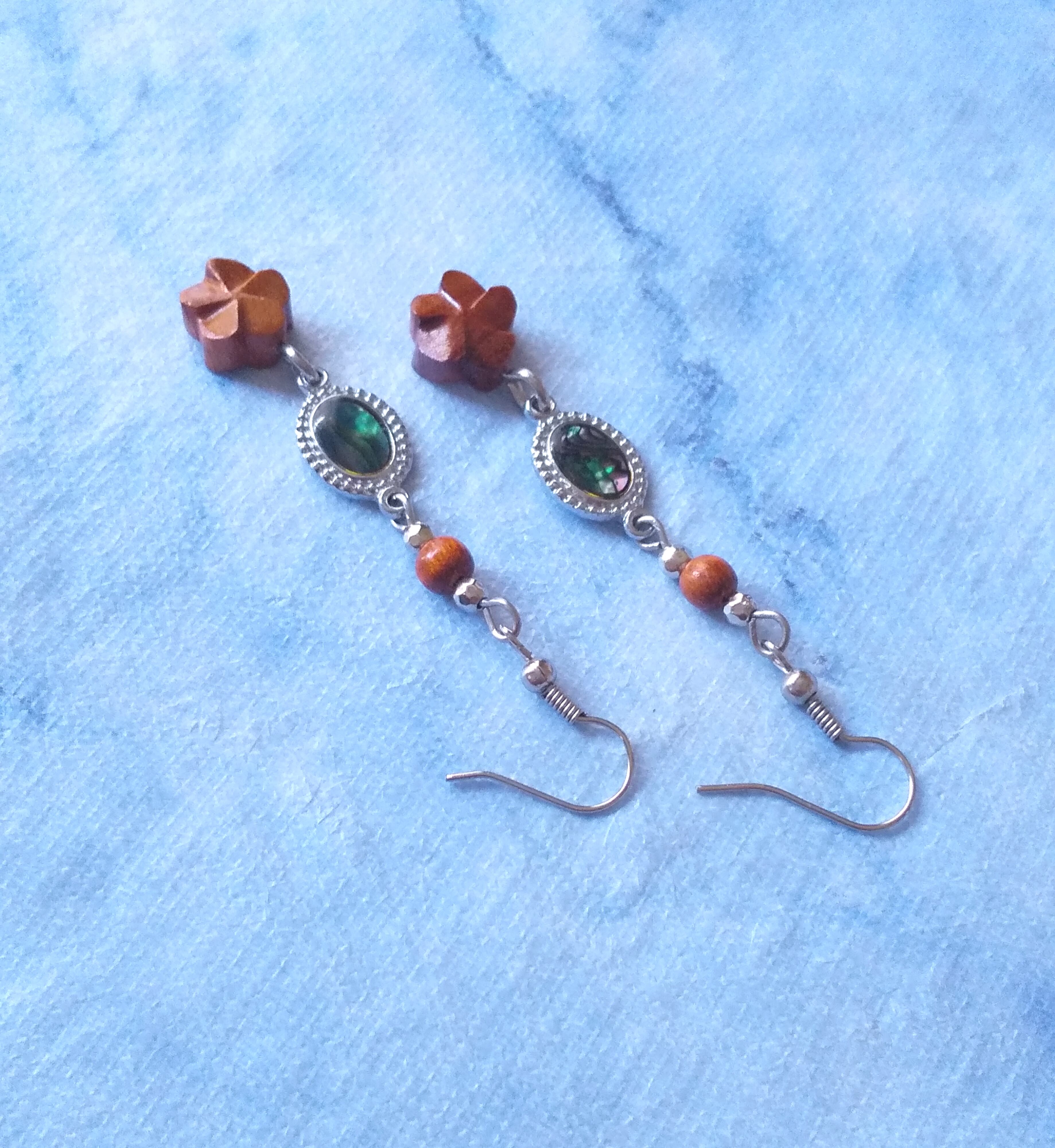 ハワイアンピアス ハワイウッドプルメリア& バウアグリーンシェル A-162