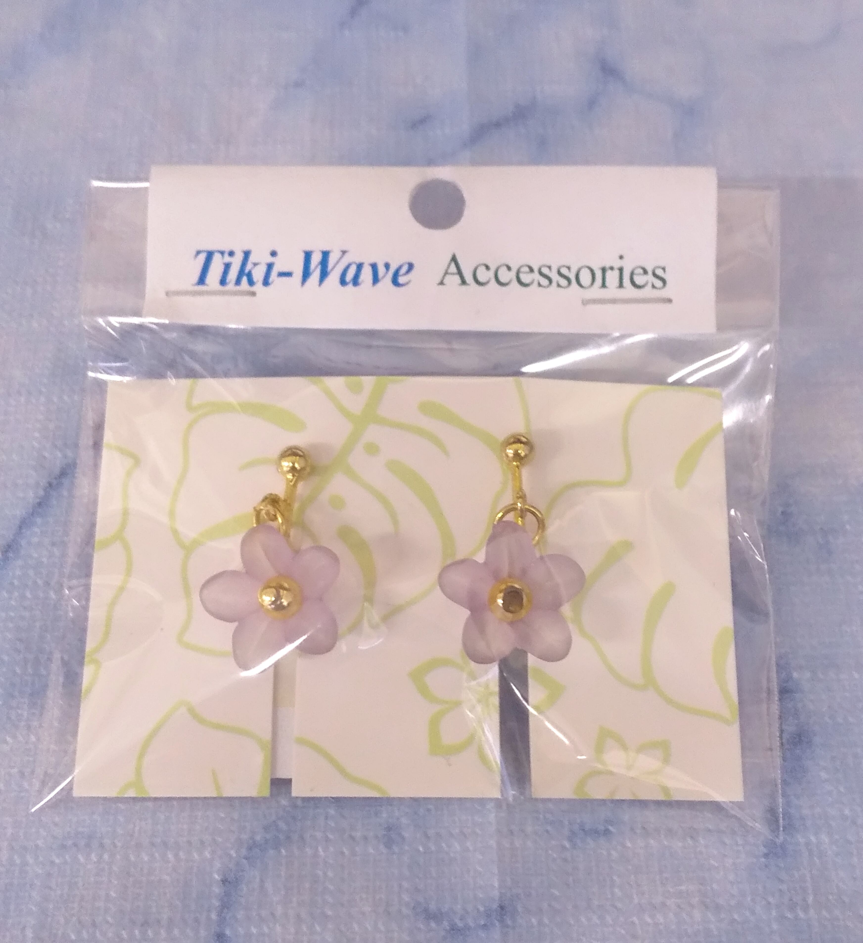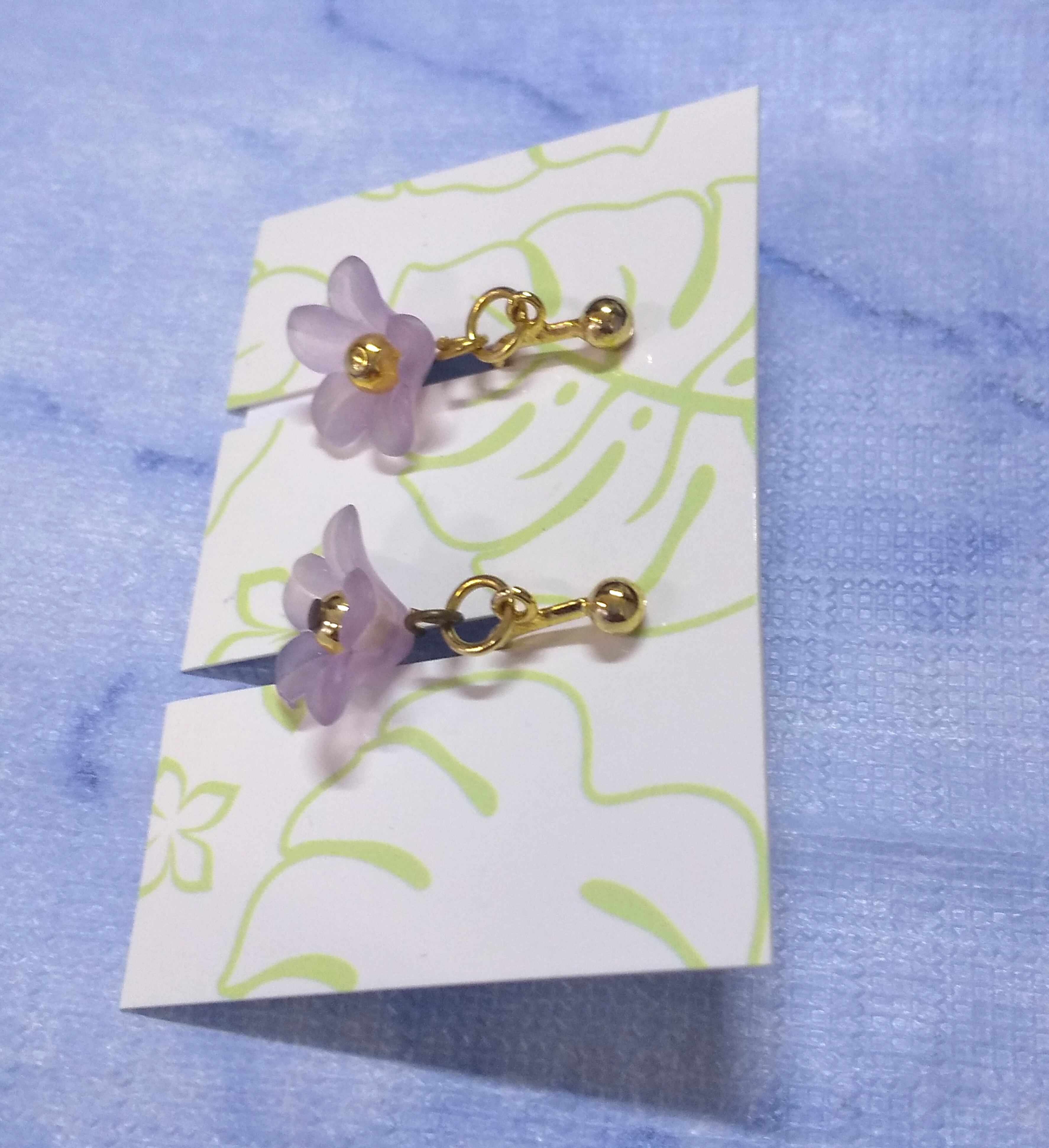 ハワイアンイヤリング クリアライトパープルカラー フラワー&ゴールド A-165