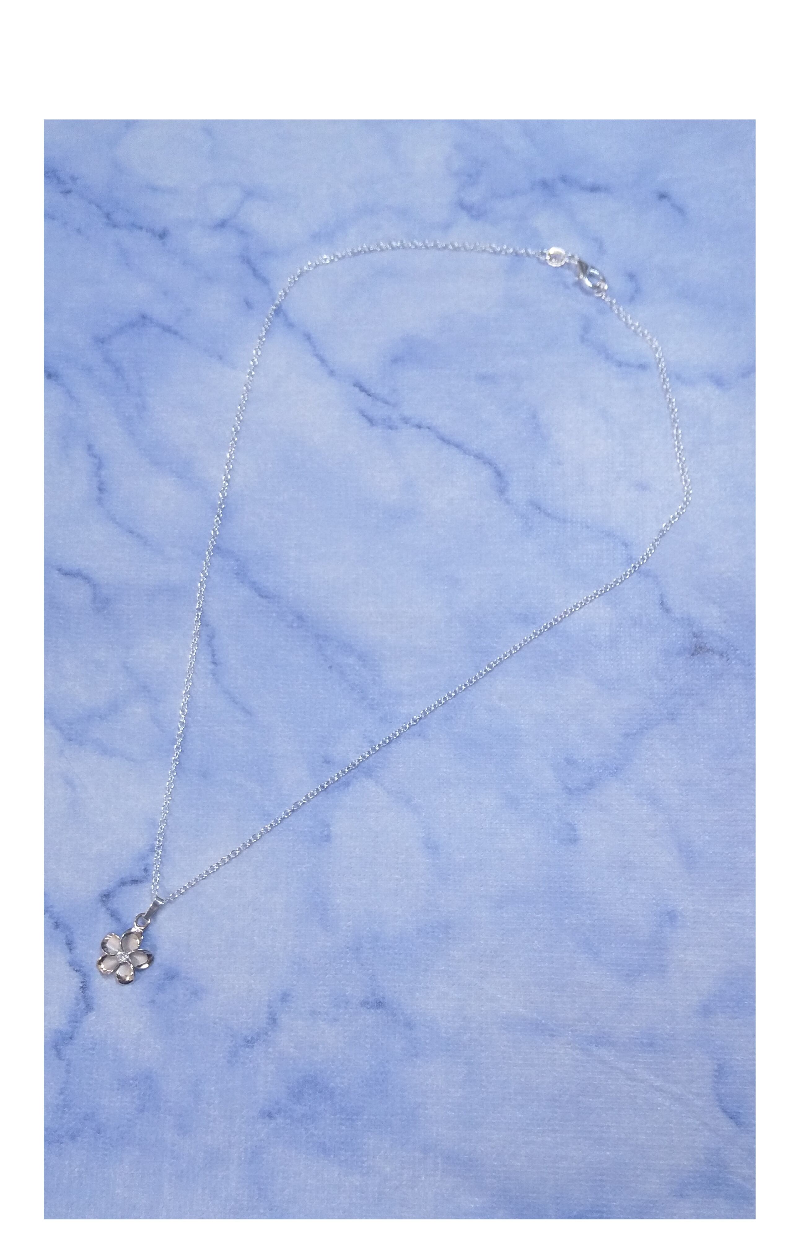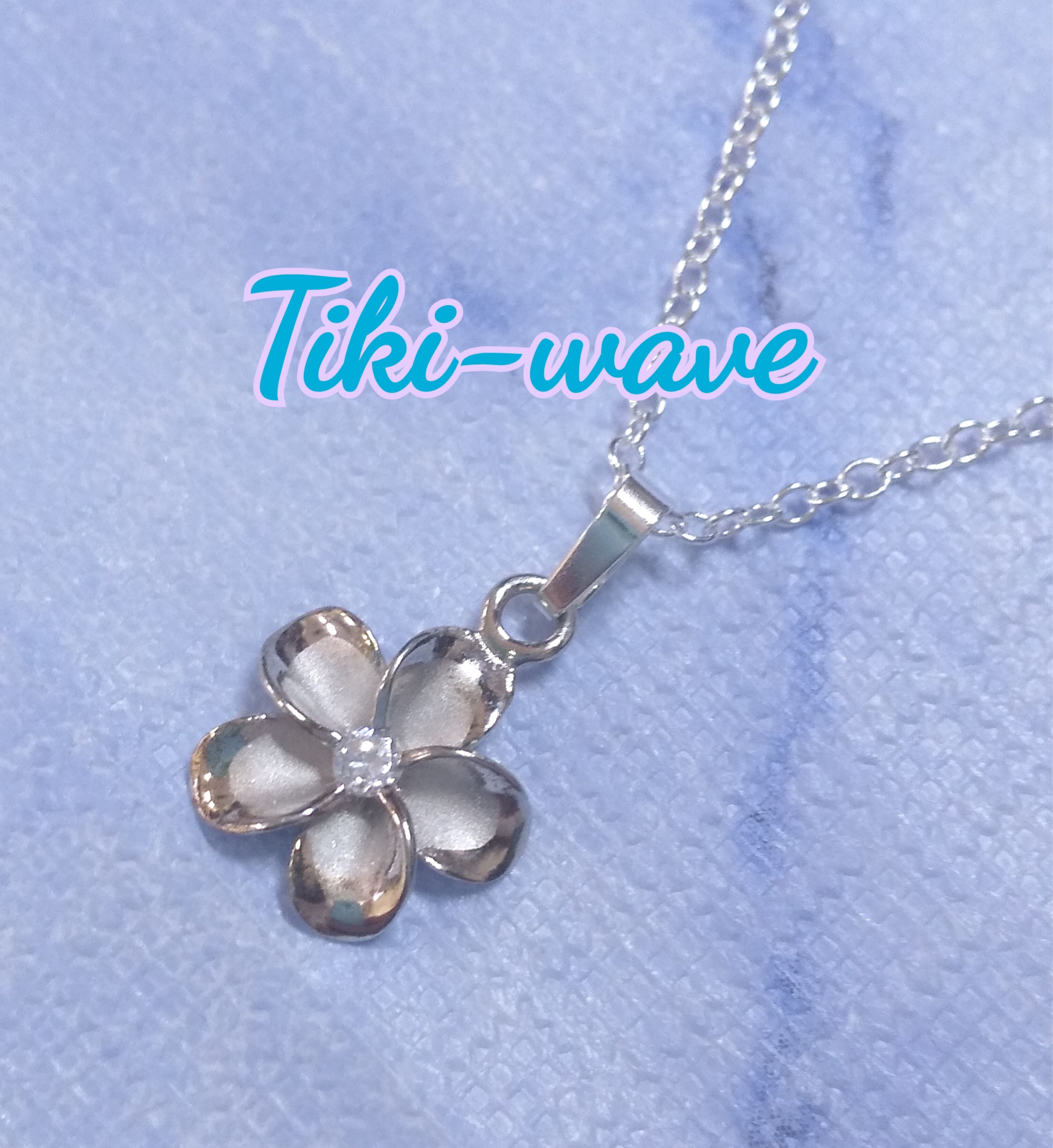 ハワイアンネックレス シルバー925プルメリア&クリアCZ粒付き P-685