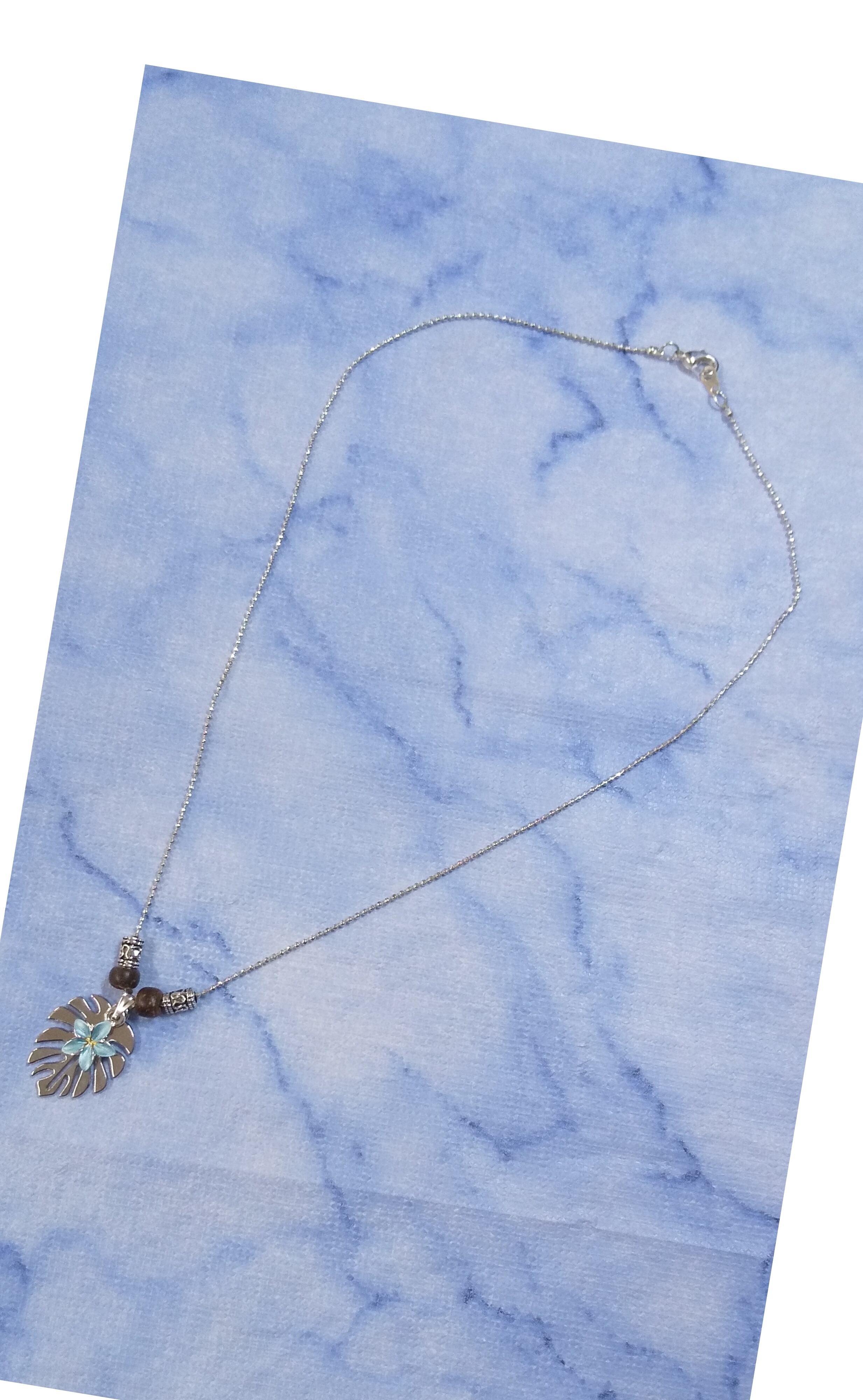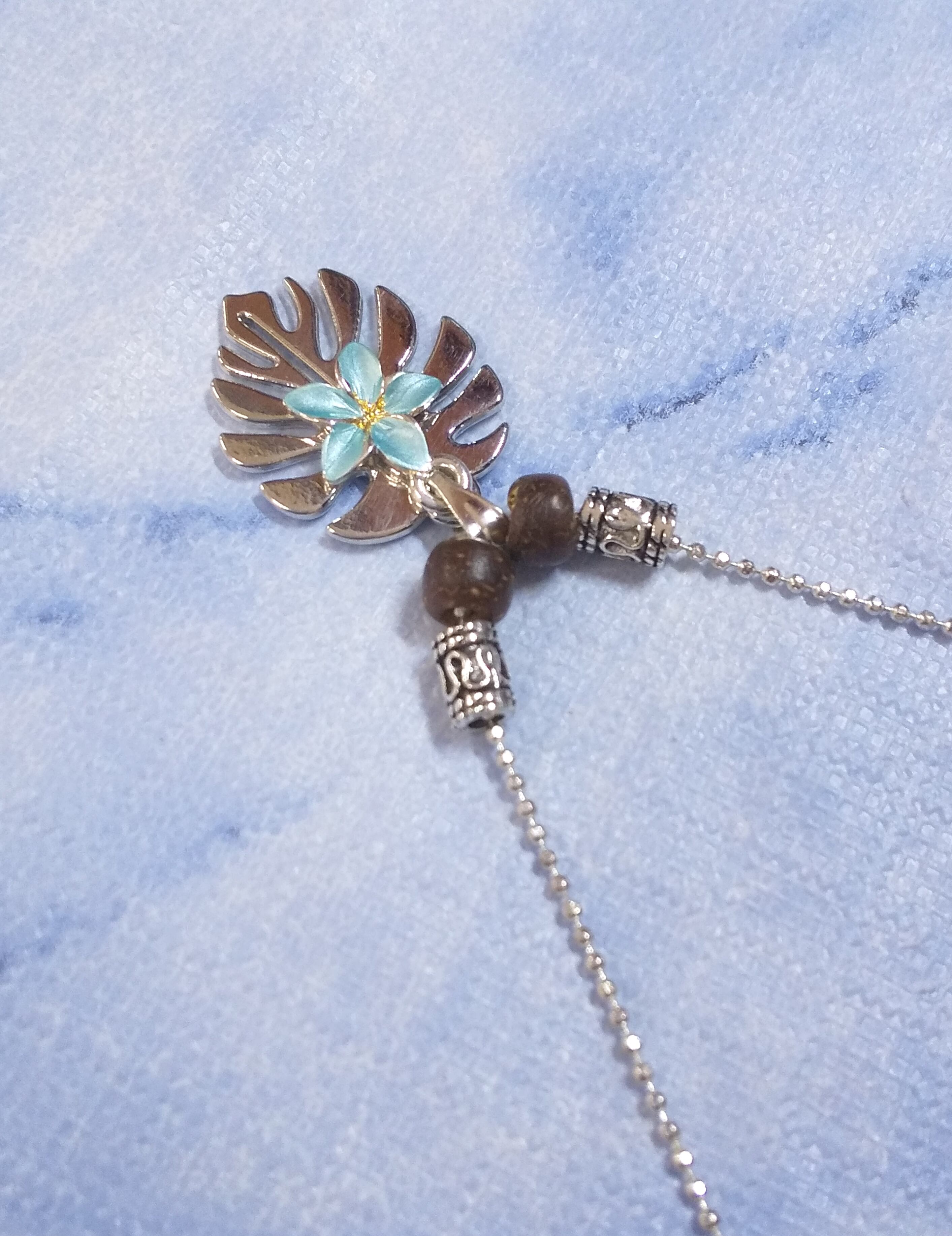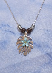 ハワイアンネックレス シルバーモンステラ& ミントブループルメリア M-514