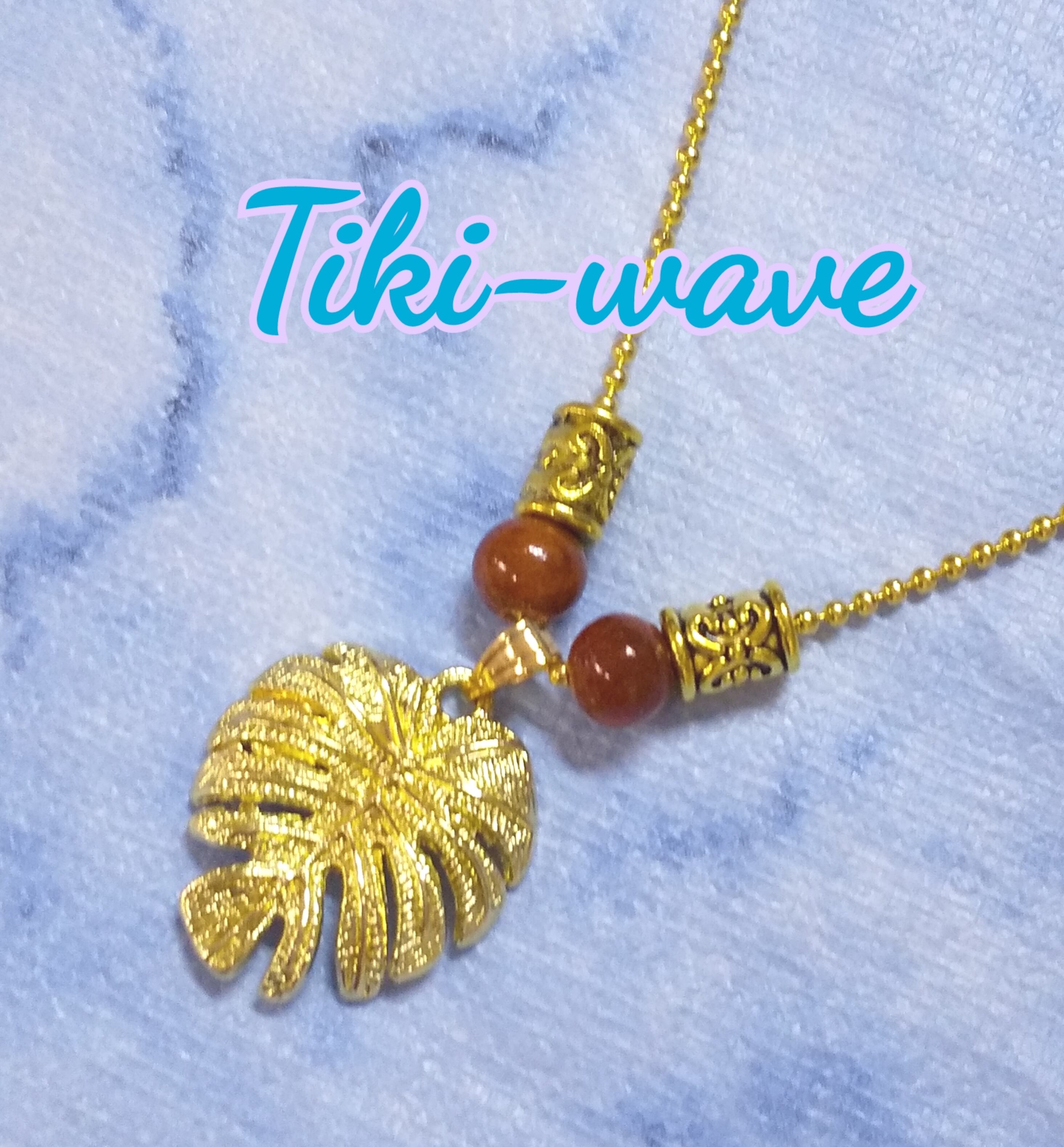 ハワイアンネックレス ゴールドカラーモンステラ& コアウッドボール M-515