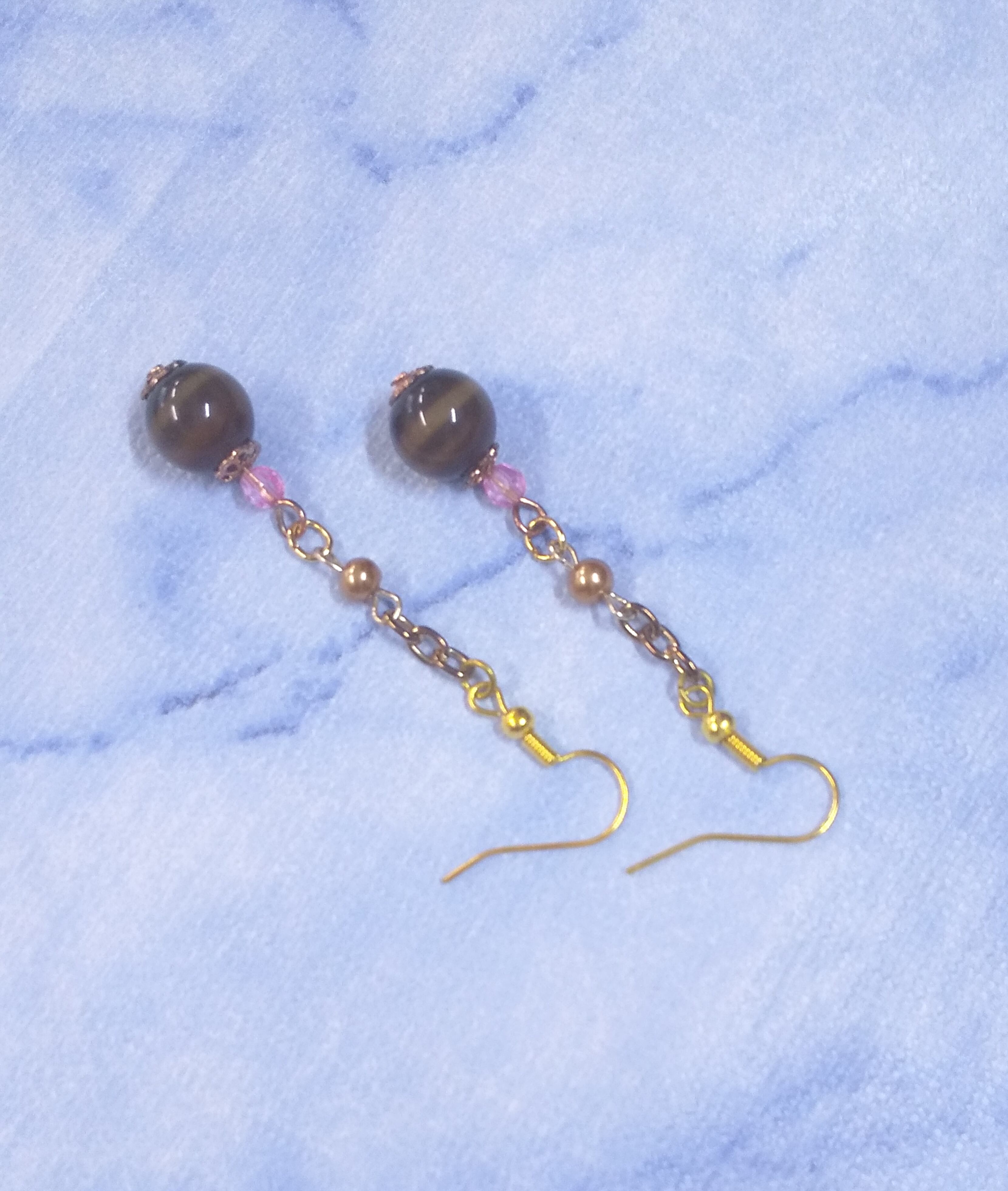 ピアス アクセサリー タイガーアイ&ゴールドカラー ピンククオーツ A-169