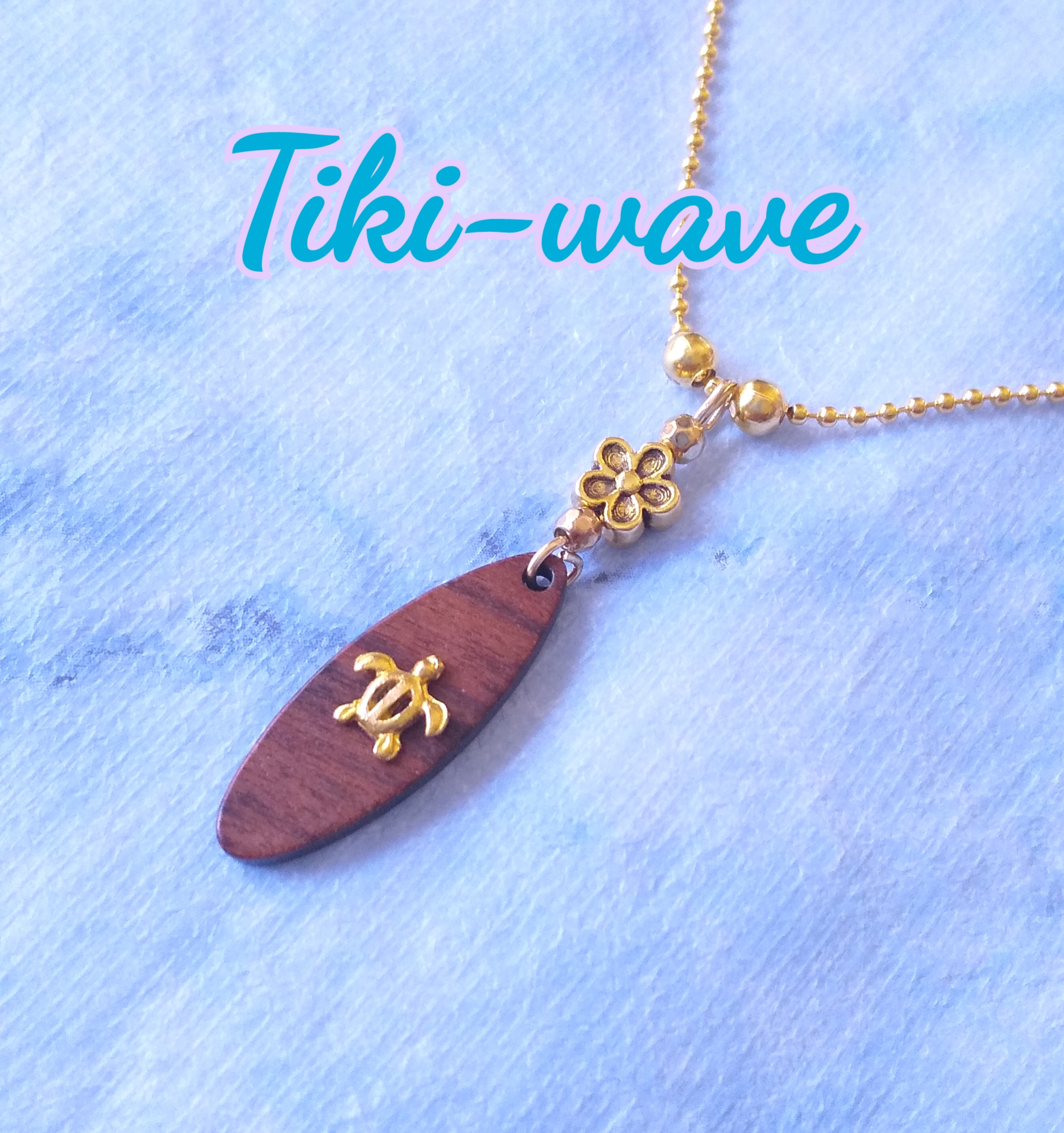 ハワイアンネックレス ゴールドホヌ&天然ウッド オーバルボード H-157