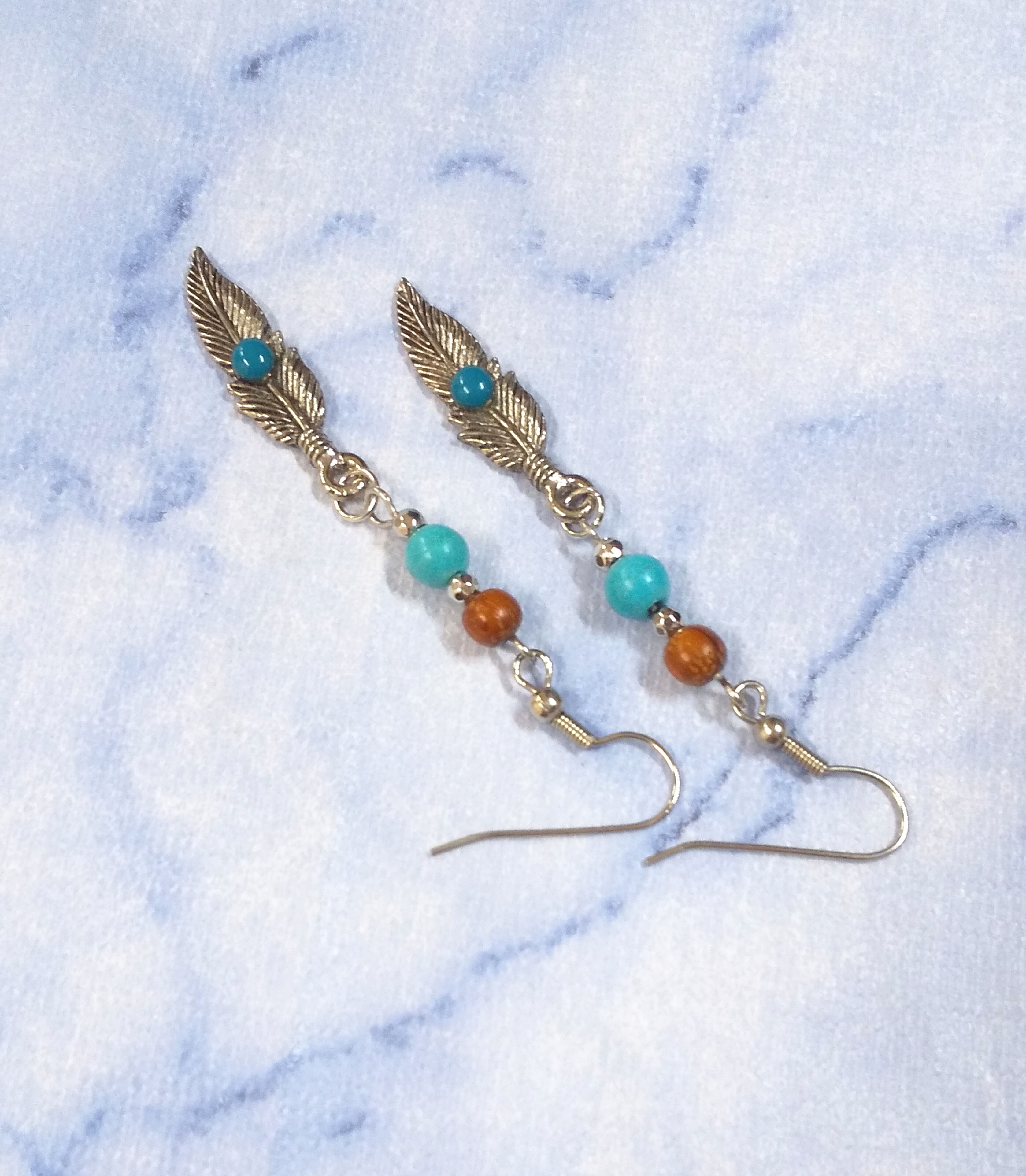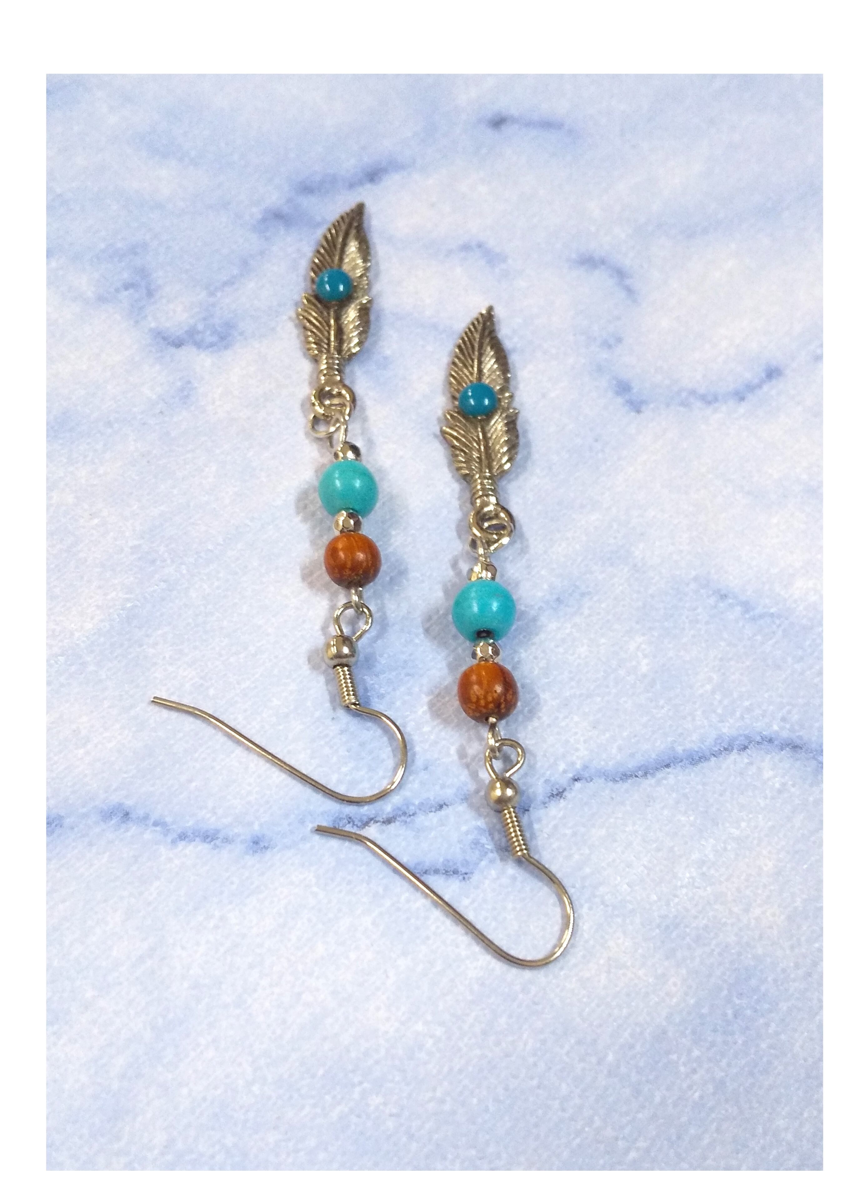 ハワイアンピアス シルバーカラーフェザー&ターコイズ コアウッド A-171