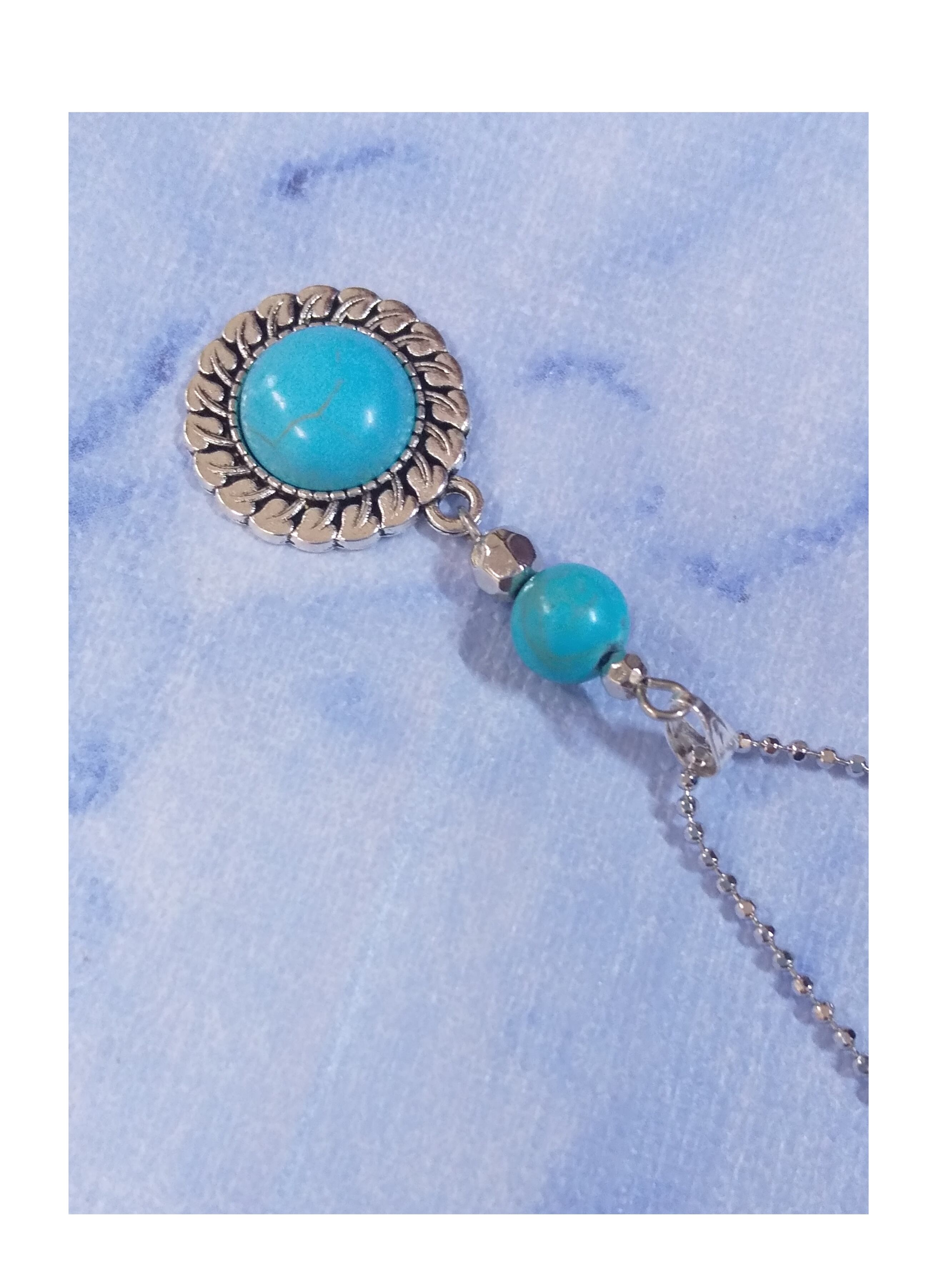 デザインネックレス ブルーカラーターコイズ ラウンド&ボール T-895