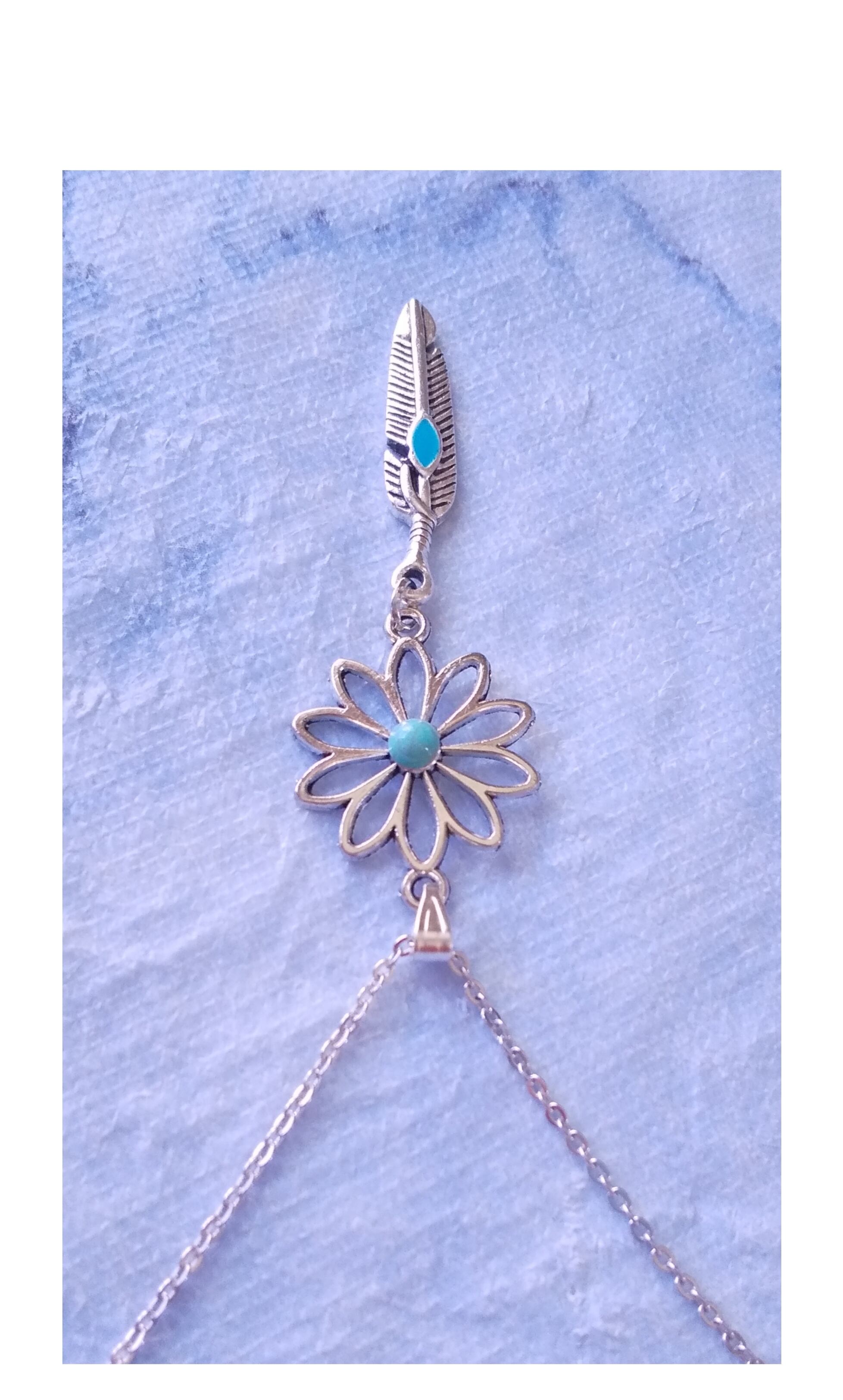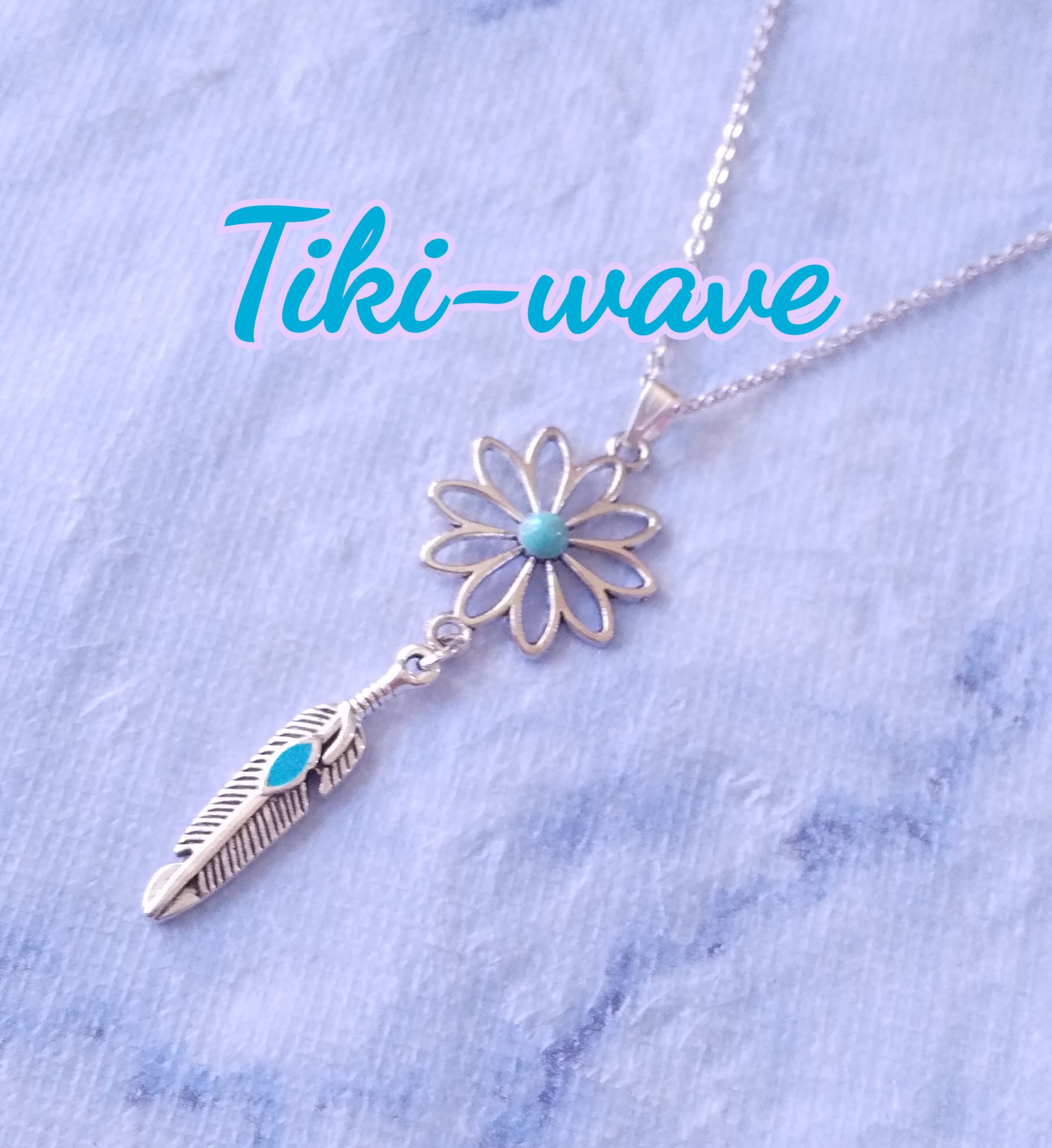 レディースネックレス 2連 ブルーターコイズ フェザー&デイジー T-898