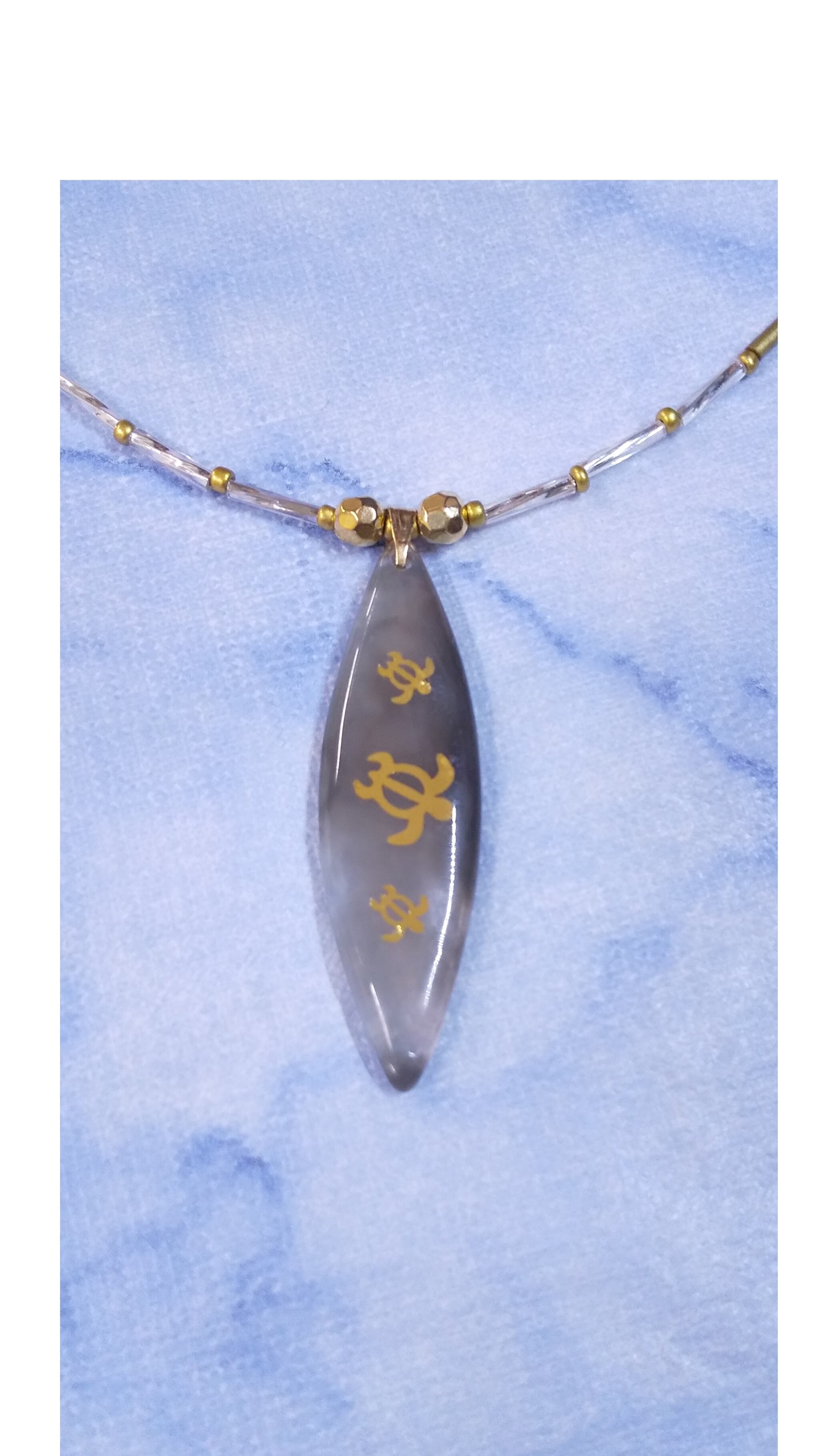 ハワイアンネックレス 3ゴールドカラーホヌ ライトグレーサーフボード B-328