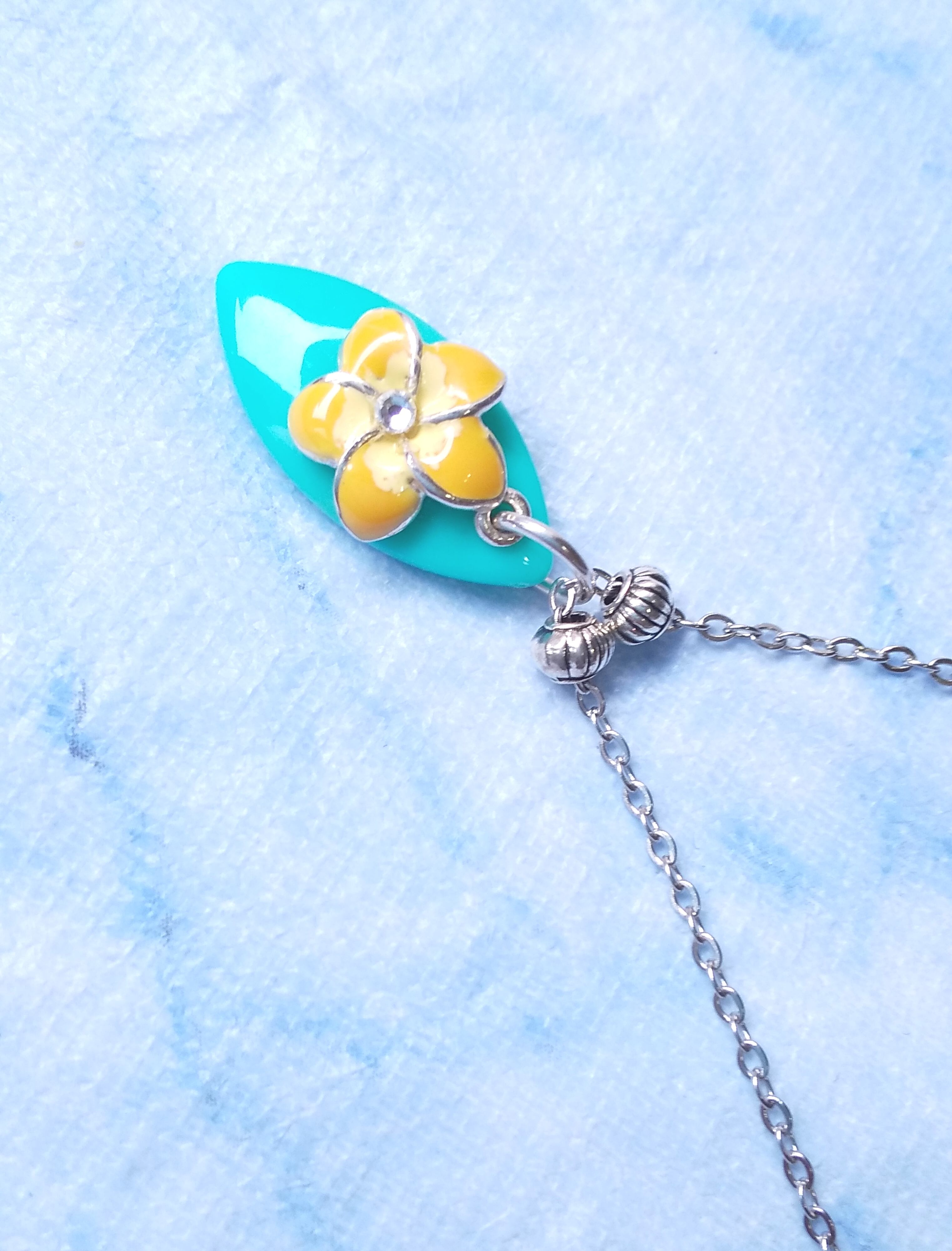 ハワイアンネックレス ピンクベージュプルメリア &ブルーボード P-690