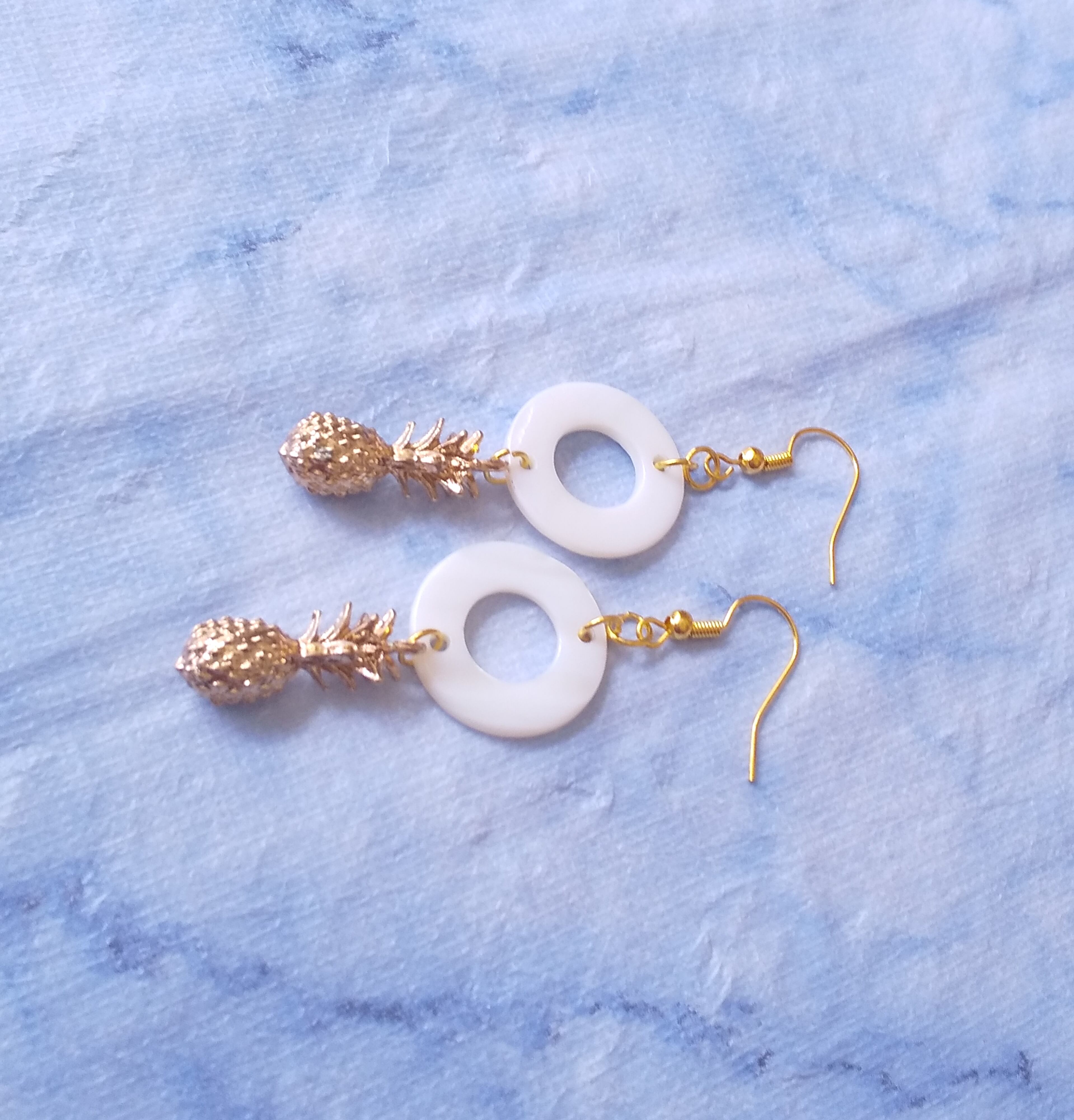 ハワイアンピアス ホワイトラウンドシェル& ゴールドパイン A-178