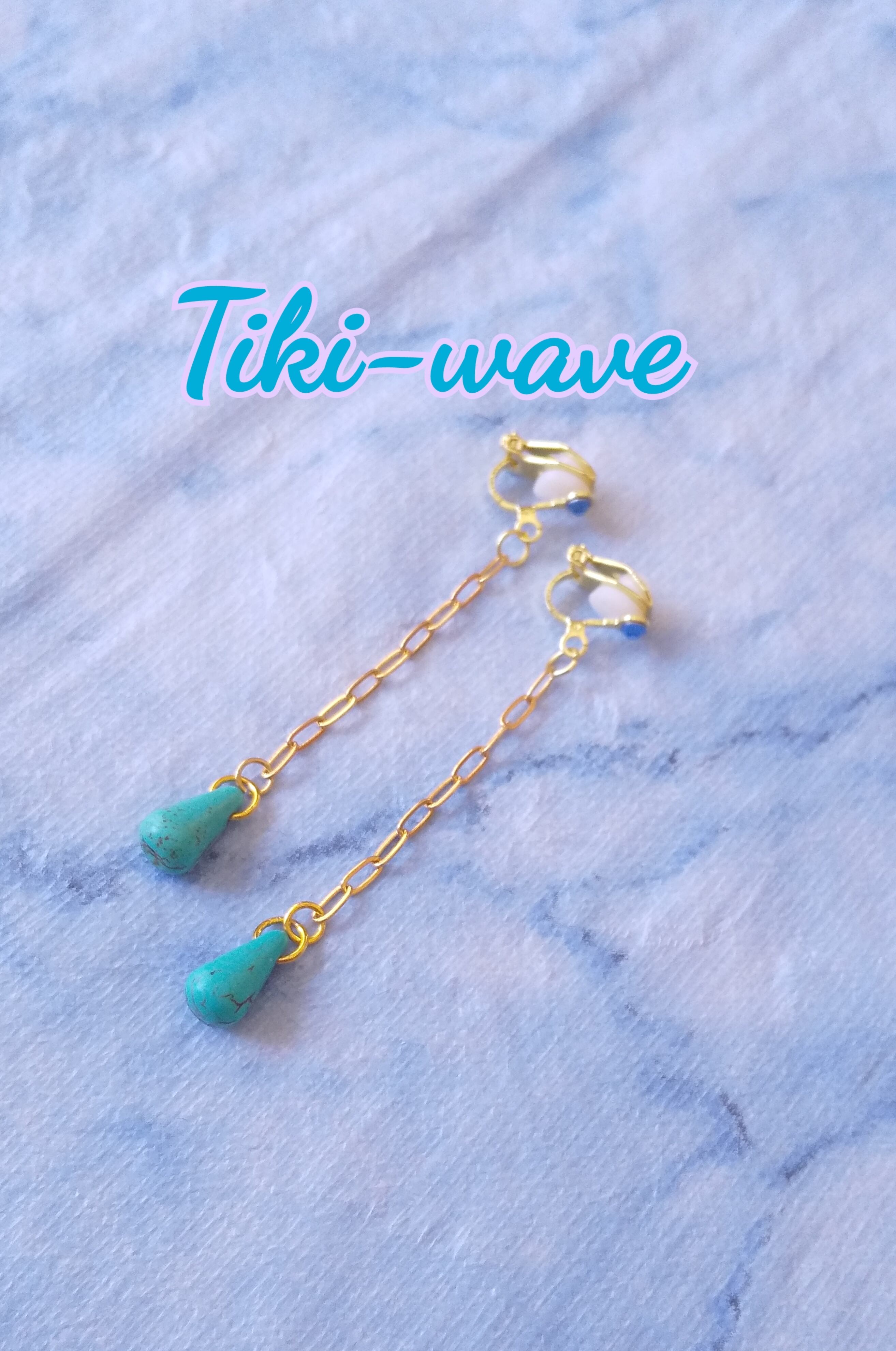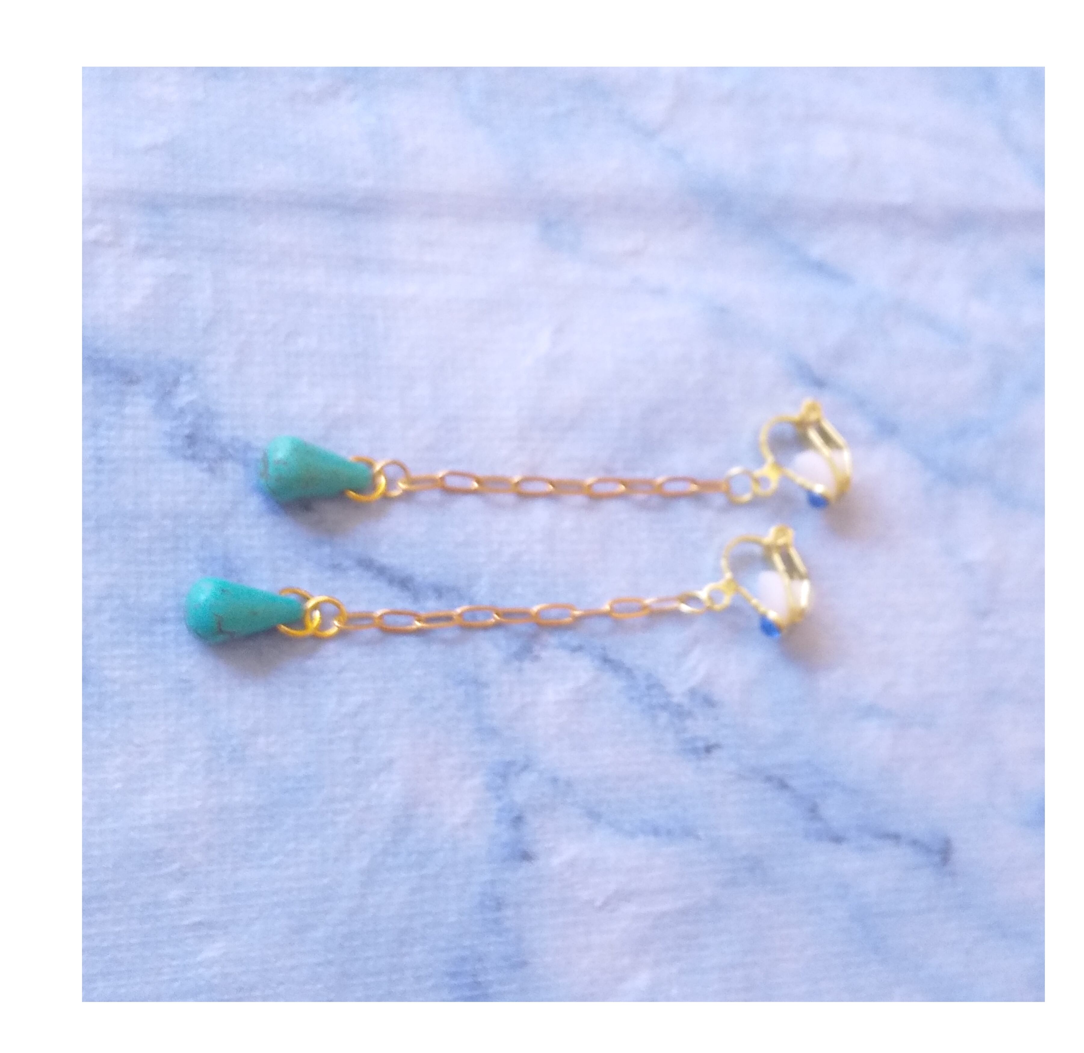 ストーンイヤリング ターコイズ ドロップ& ゴールドチェーン A-359