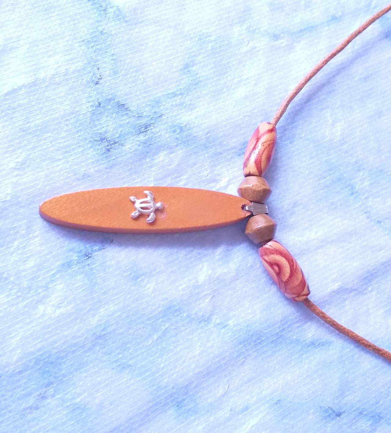 ハワイアンネックレス ブラウンウッドサーフボード&シルバーホヌ B-335